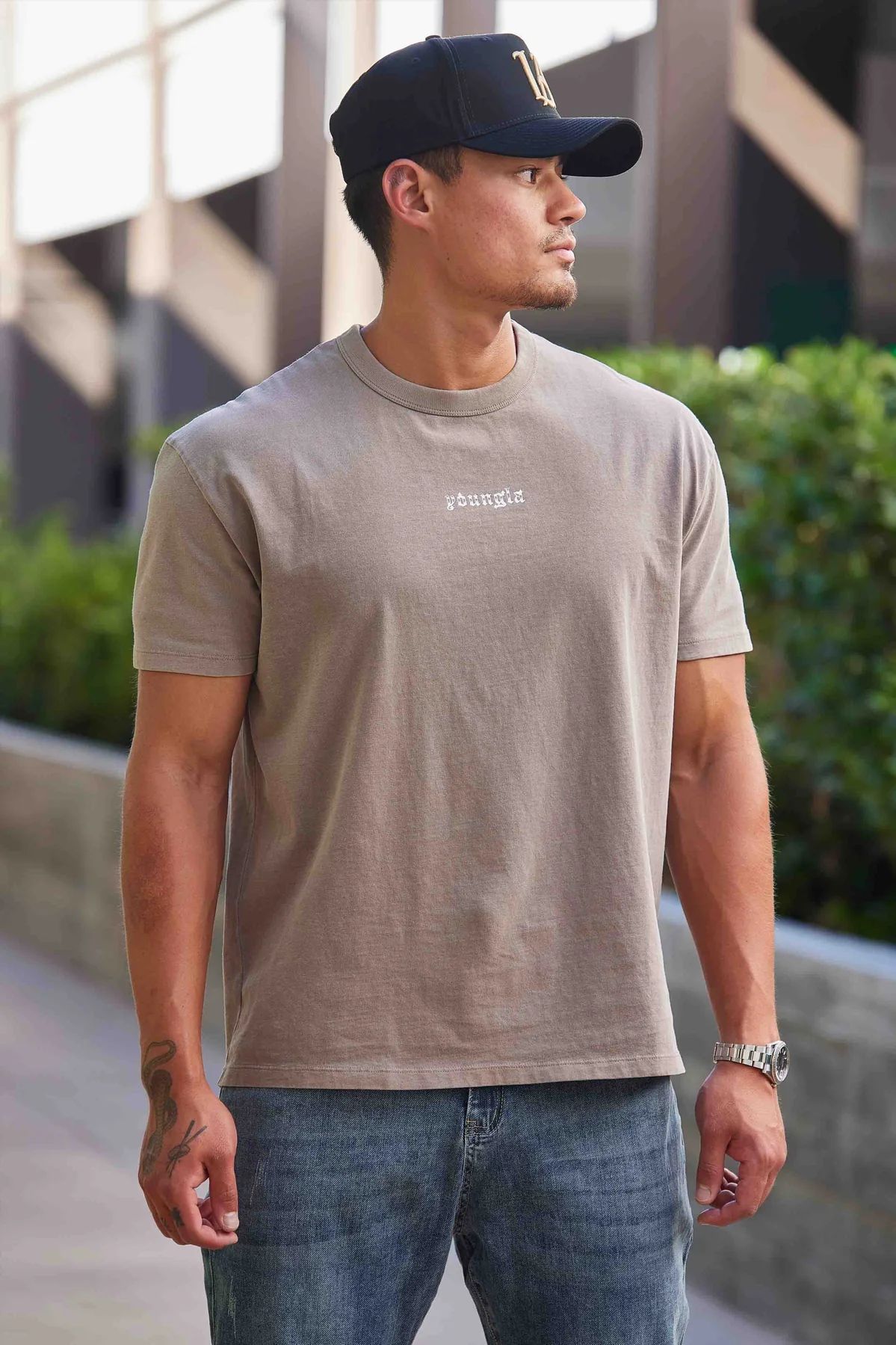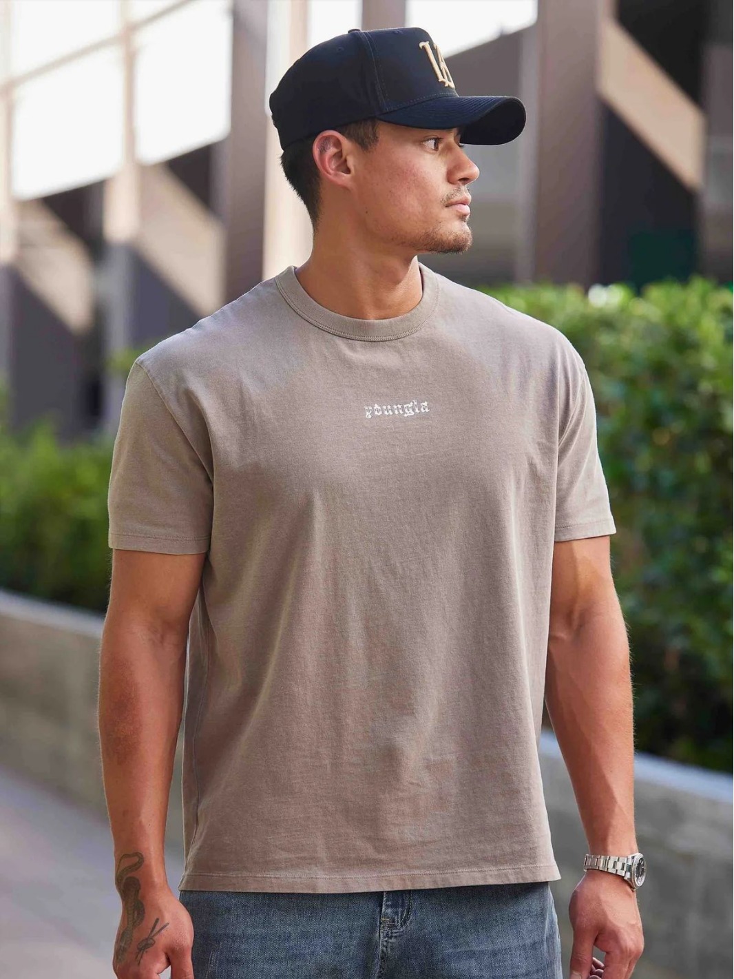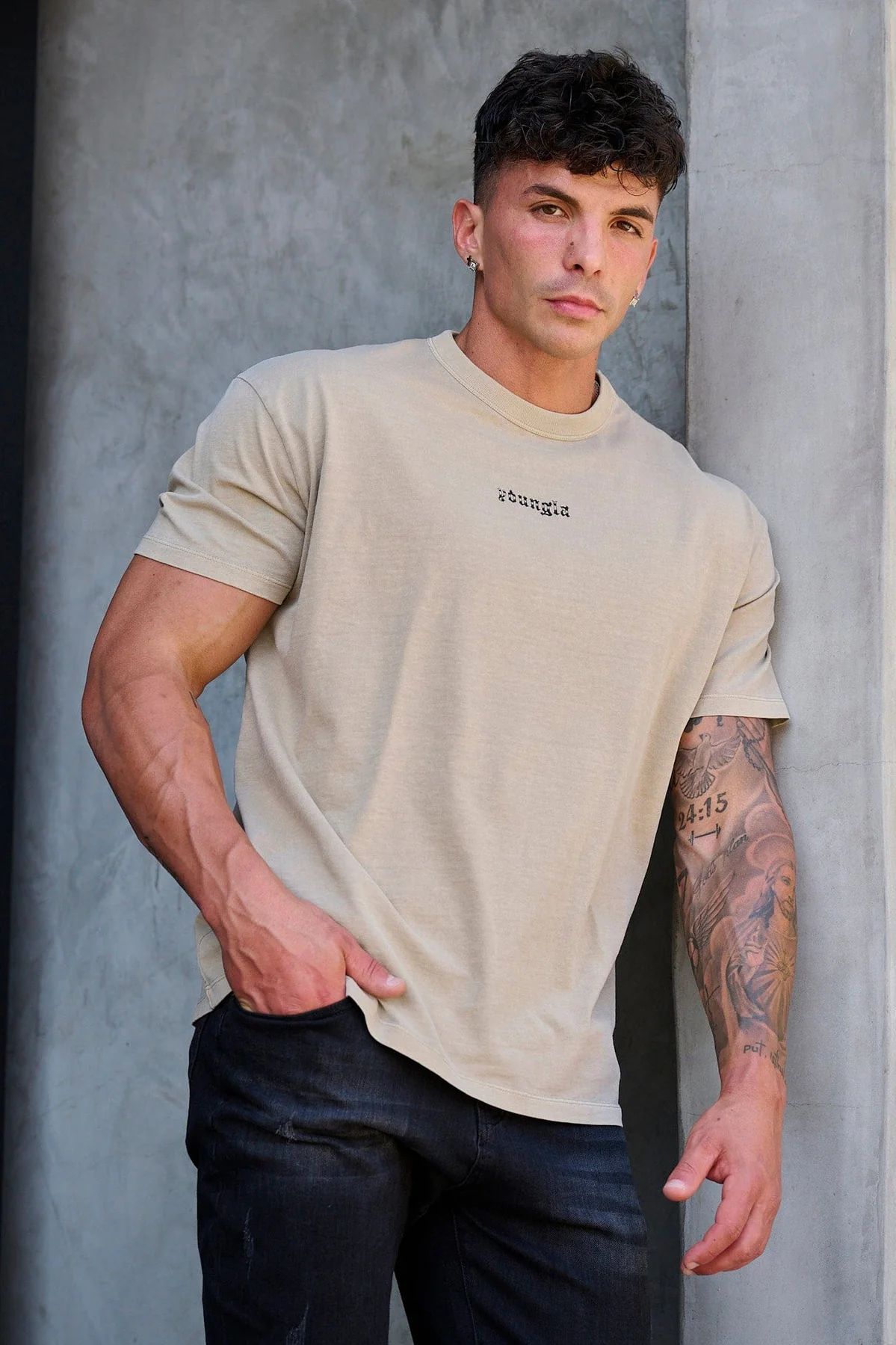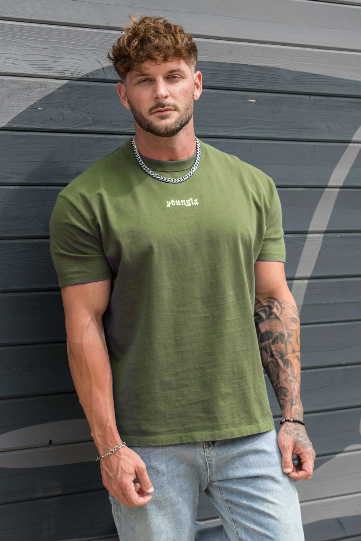 YOUNGLA 남자 대형 티셔츠 근육 스포츠 피트니스 코튼 라운드 넥 짧은 소매 체육관 달리기 농구 훈련