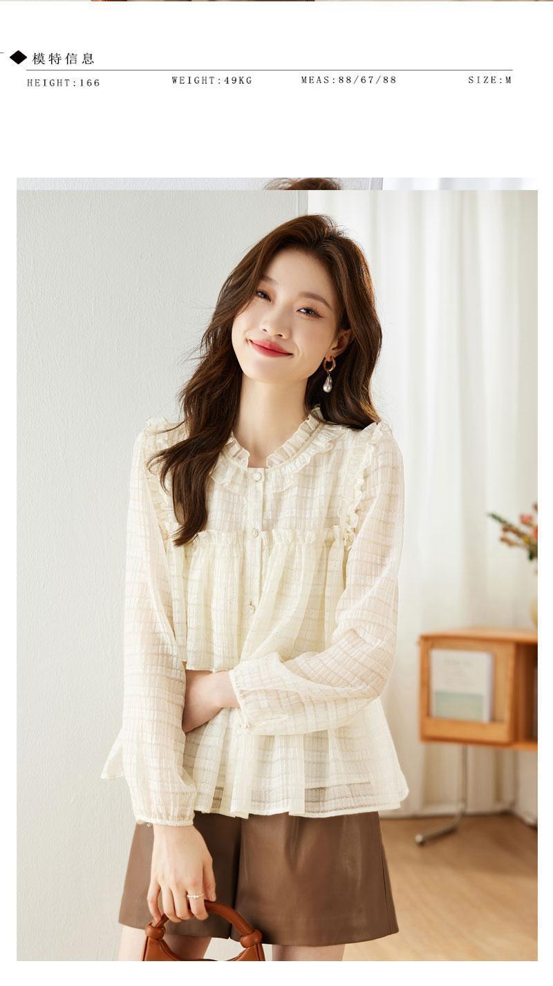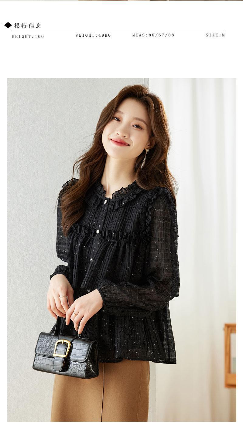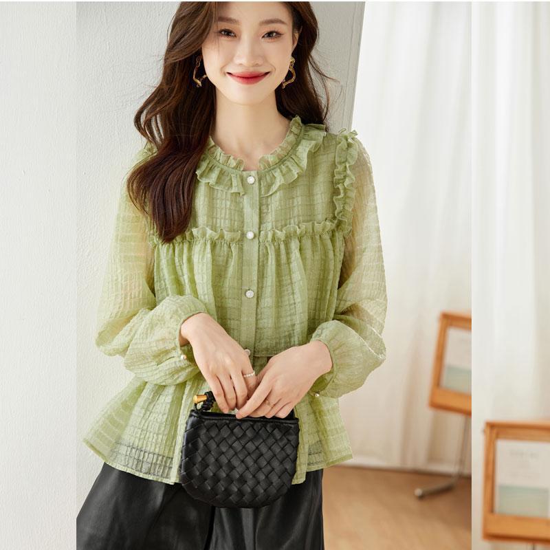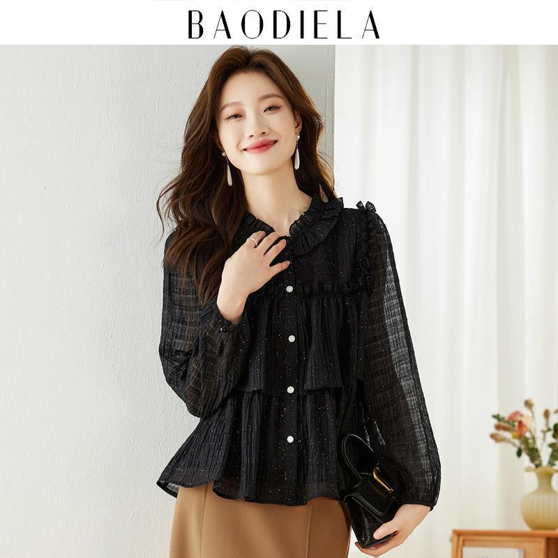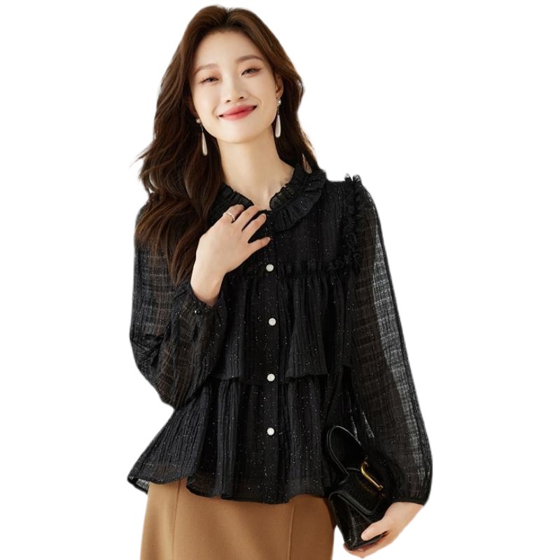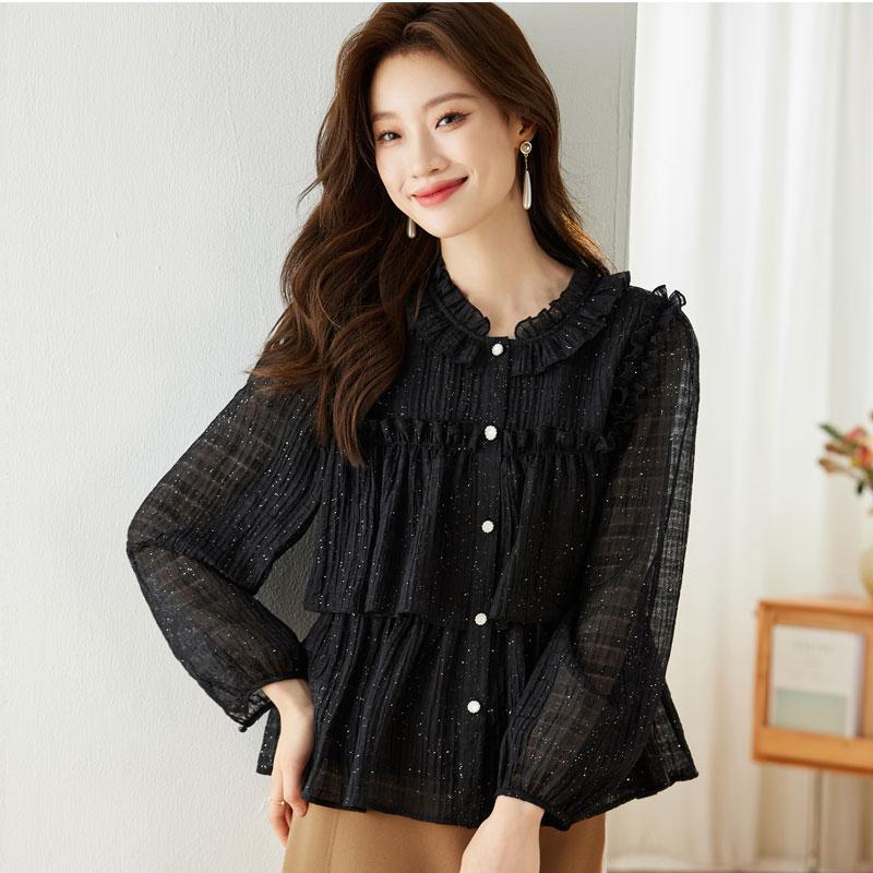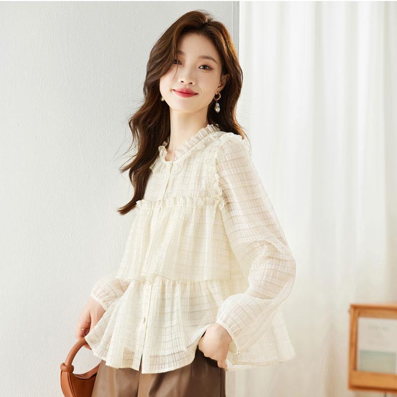 2024 봄과 가을 새로운 긴 소매 인형 셔츠 쉬폰 셔츠 여성 탑베이스 셔츠 스타일리시 슬림 핏 슬리밍 올 매치 칼라