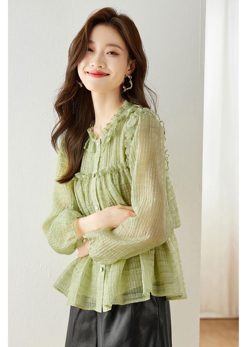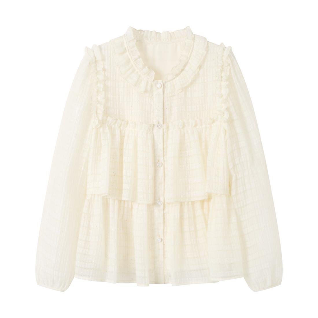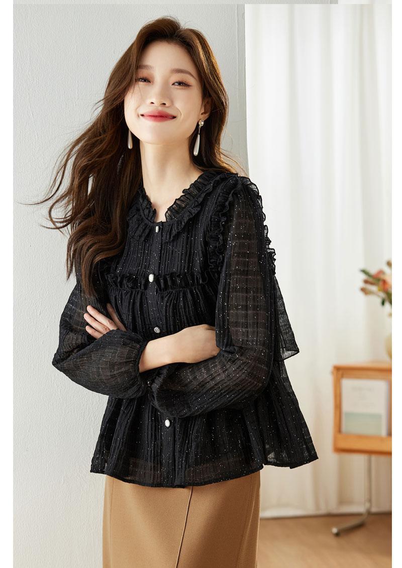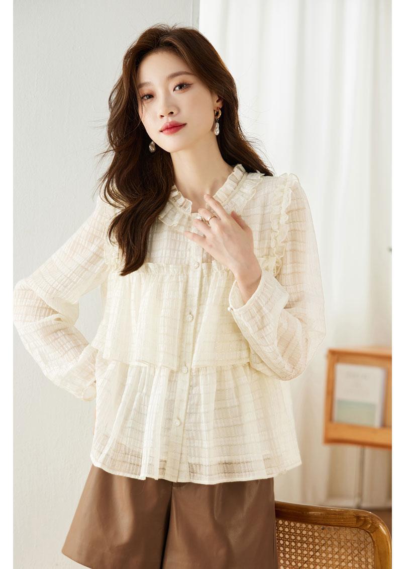 2024 봄과 가을 새로운 긴 소매 인형 셔츠 쉬폰 셔츠 여성 탑베이스 셔츠 스타일리시 슬림 핏 슬리밍 올 매치 칼라
