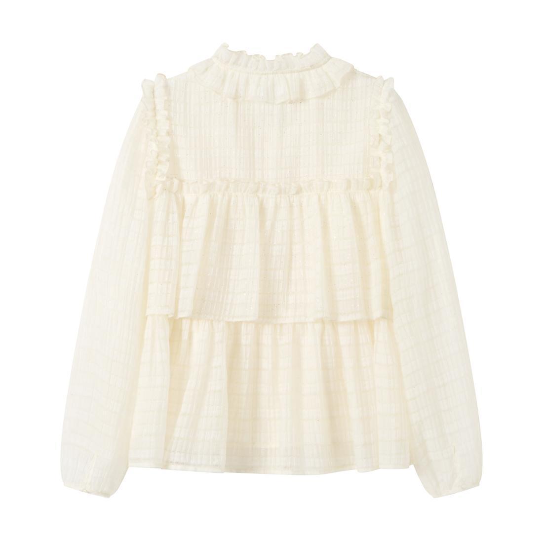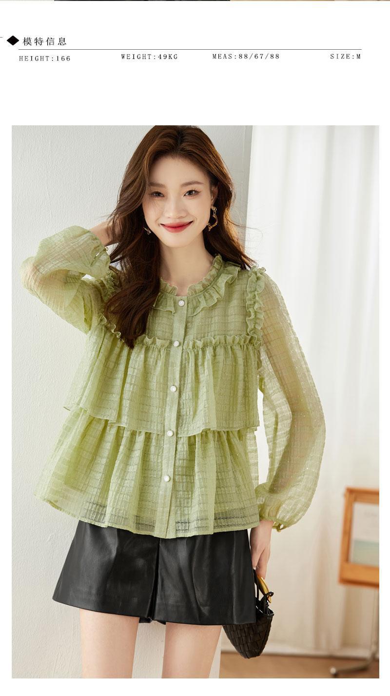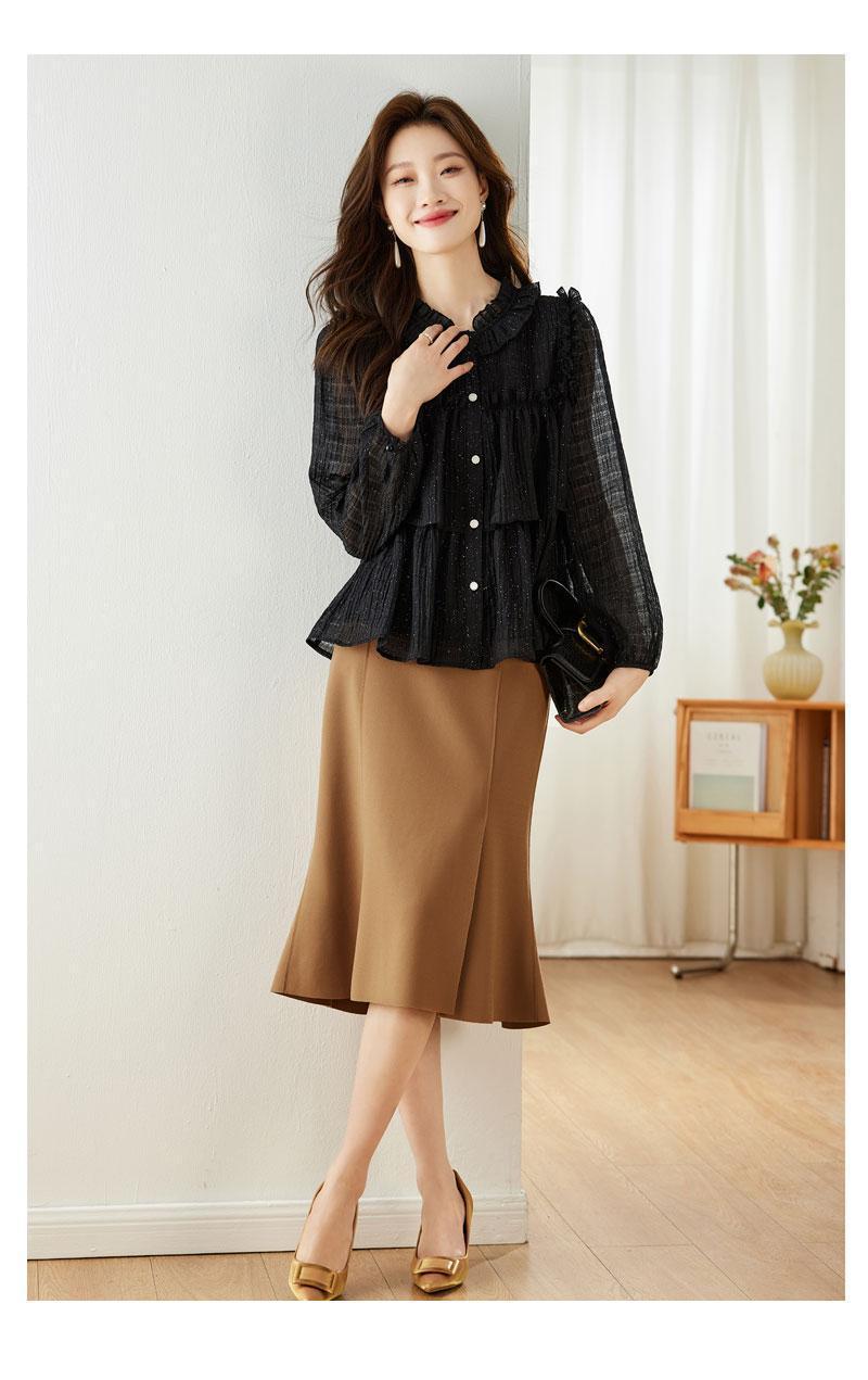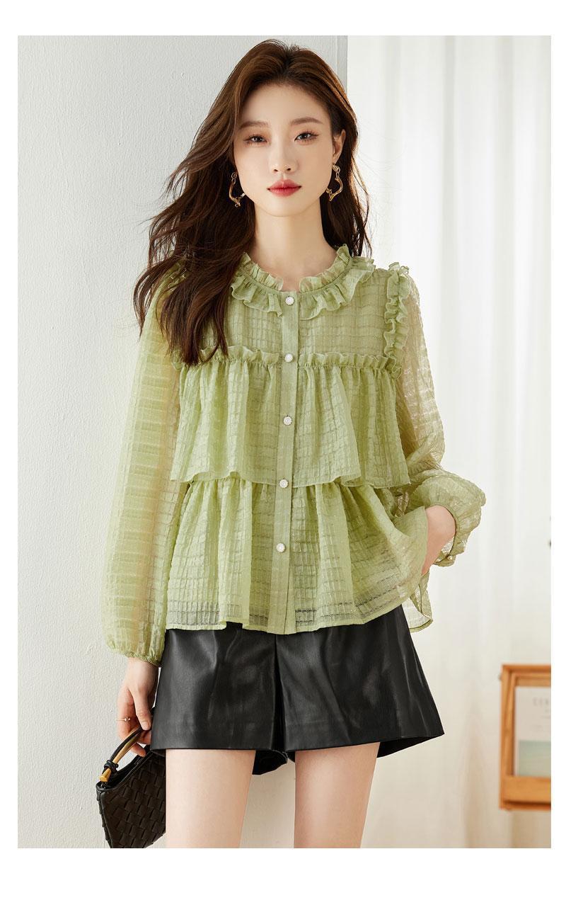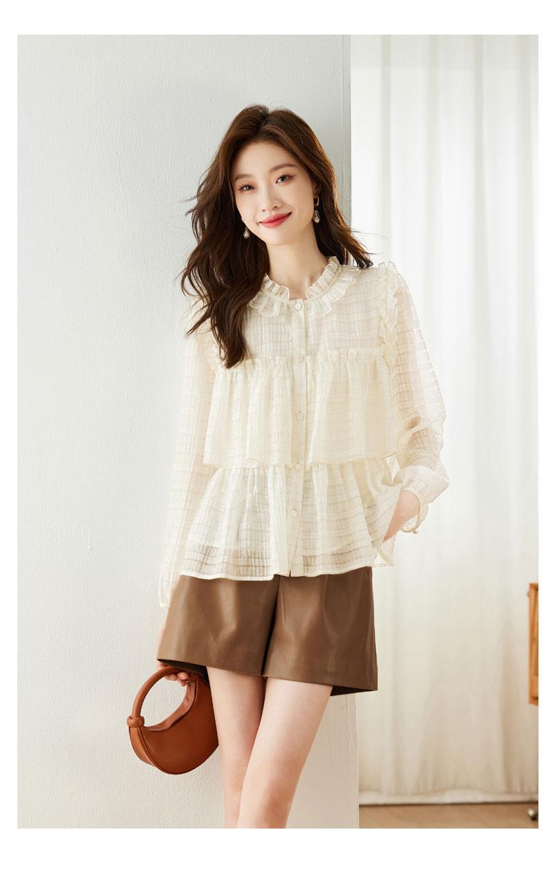 2024 봄과 가을 새로운 긴 소매 인형 셔츠 쉬폰 셔츠 여성 탑베이스 셔츠 스타일리시 슬림 핏 슬리밍 올 매치 칼라
