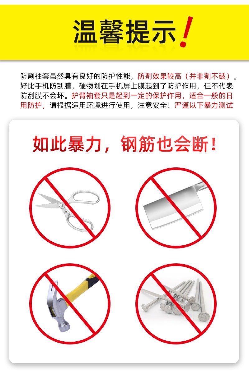 此款护臂为新型5级防切割护臂,对应现有市场上的款式进行了全面升级,此款护臂从安全性考虑从传统的宽松版型升级到紧身拥有包覆感强的护臂,贴合皮肤,从而有效的保护手臂,另外护臂可以定制lodo,尺寸长短,颜色等,厂家直销品质保证!