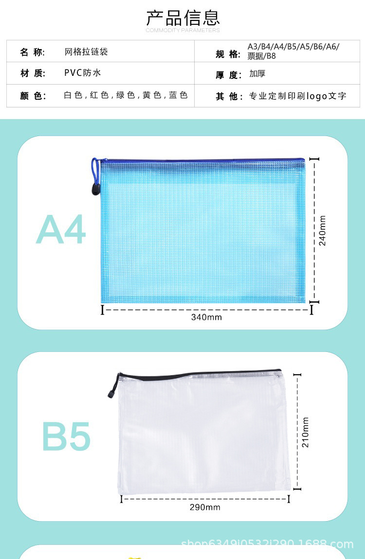 두꺼운 파일 가방 사용자 지정 투명 A4 지퍼 그리드 대용량 학생 문구 사무실 정보 키트 맞춤 로고