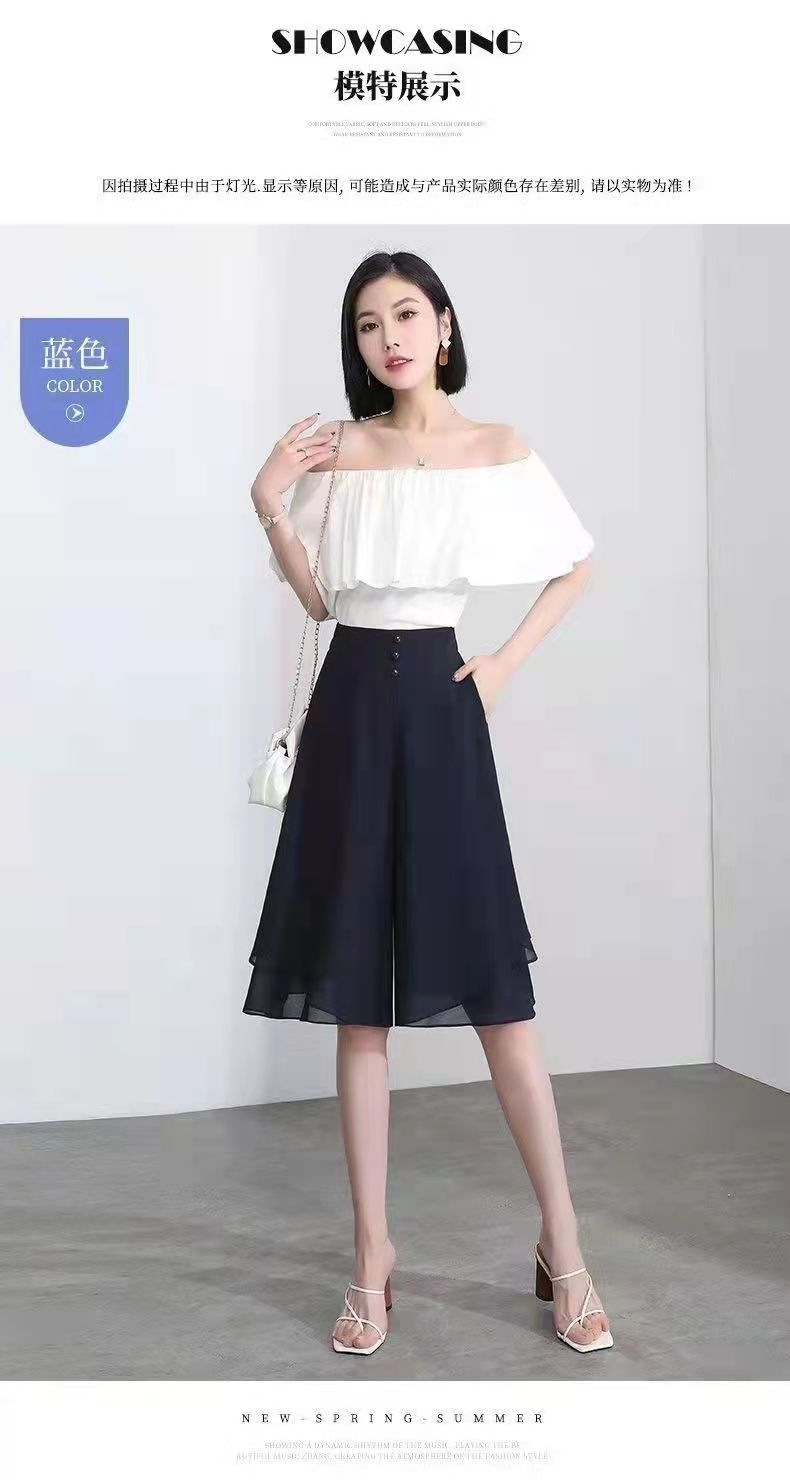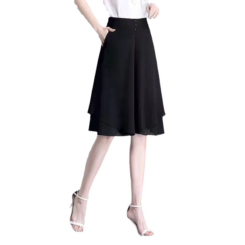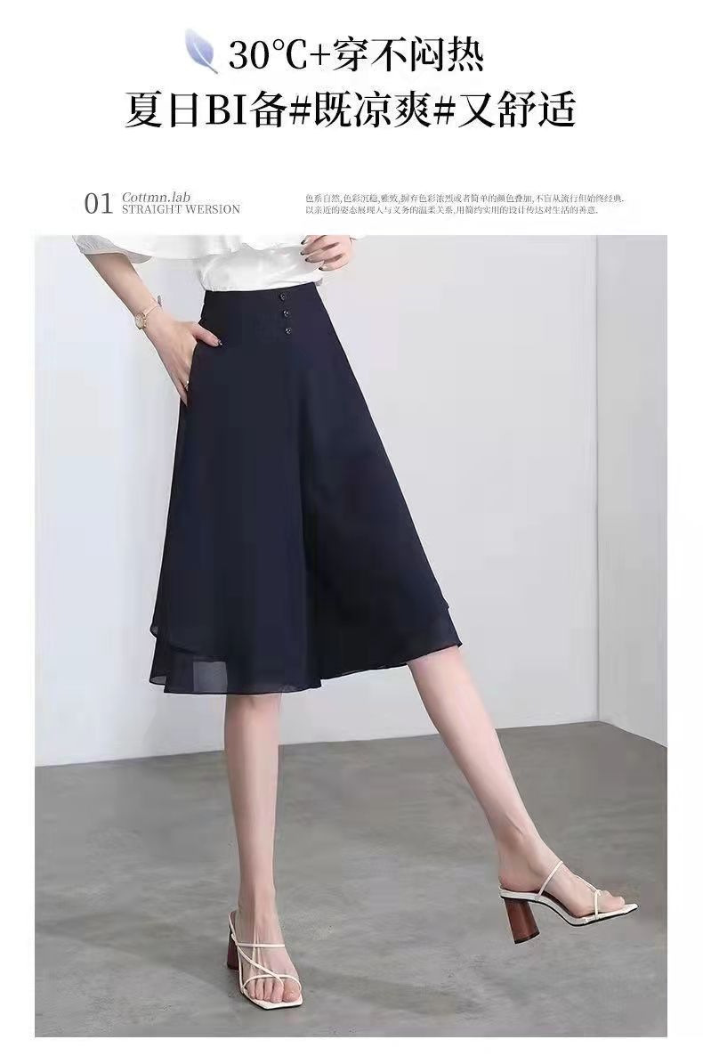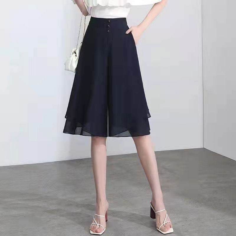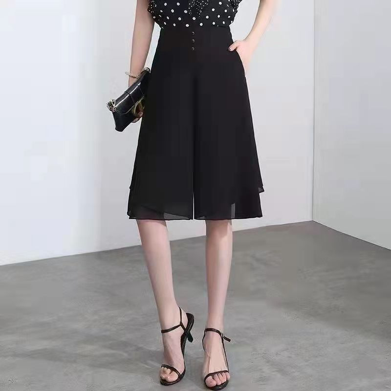 여름 쉬폰 반바지 여성 느슨한 높은 허리 처짐 우아한 패셔너블 올 매치 A 라인 더블 바지 원피스