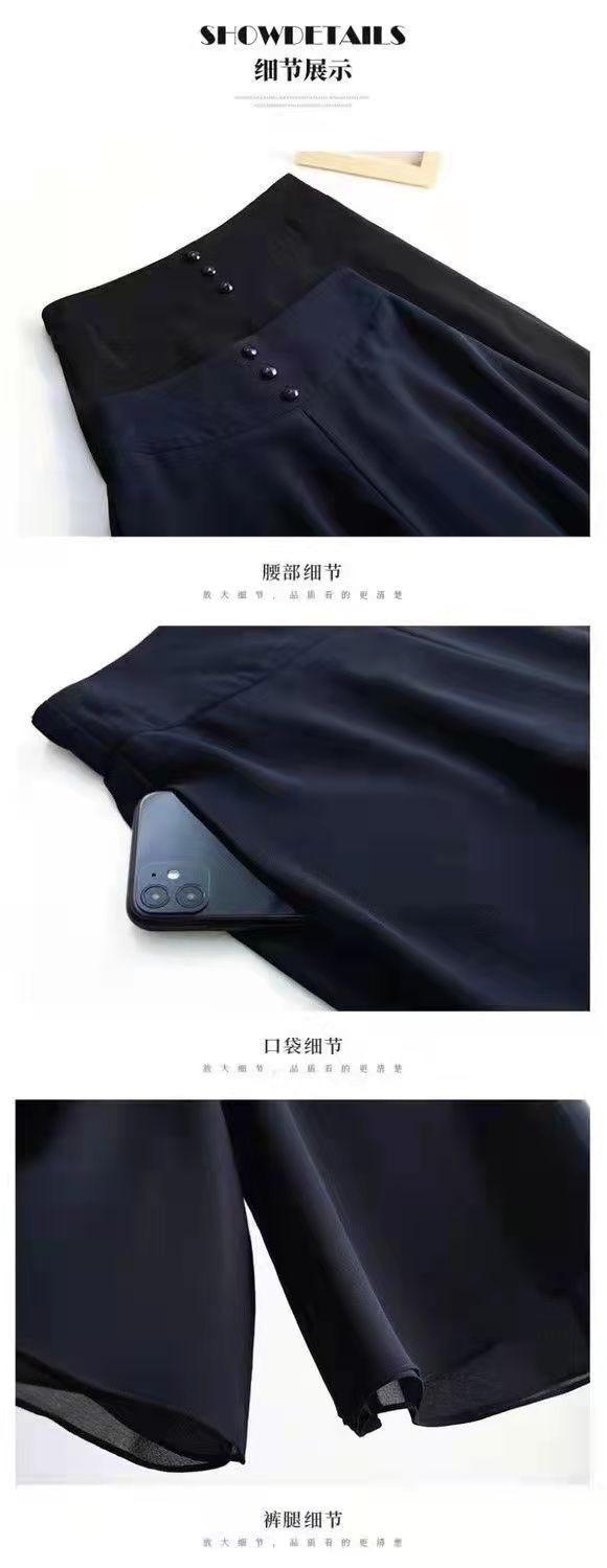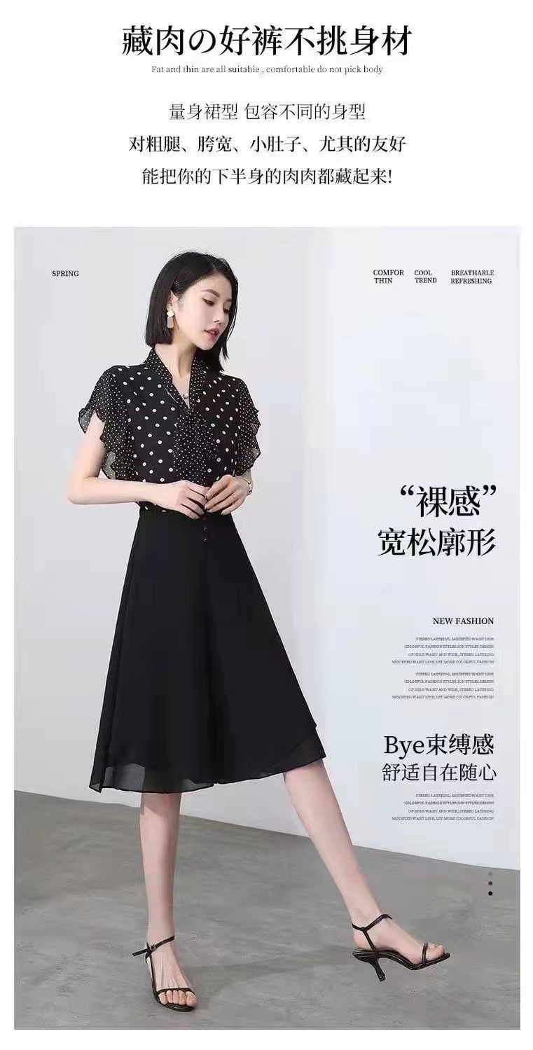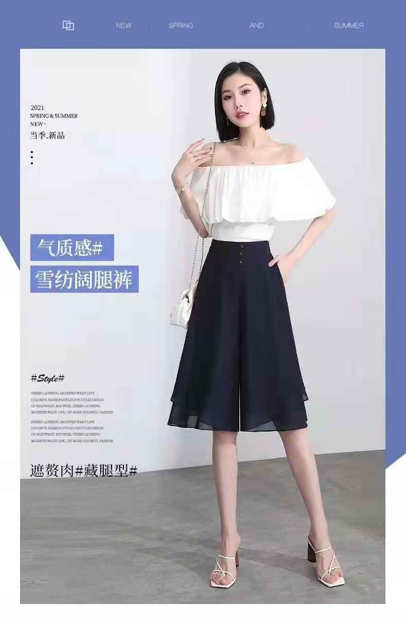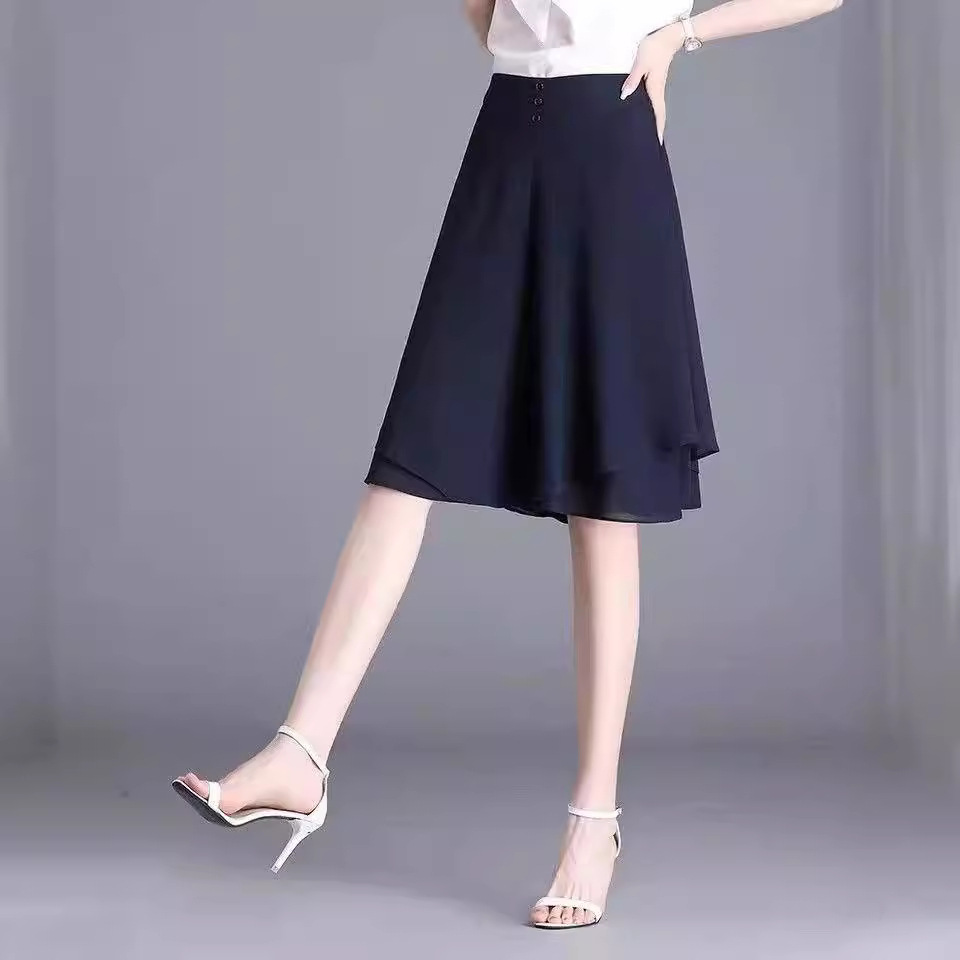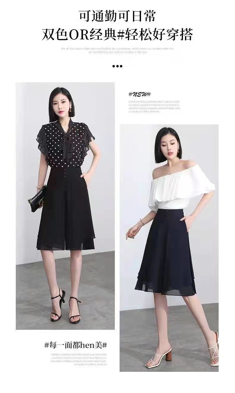 여름 쉬폰 반바지 여성 느슨한 높은 허리 처짐 우아한 패셔너블 올 매치 A 라인 더블 바지 원피스