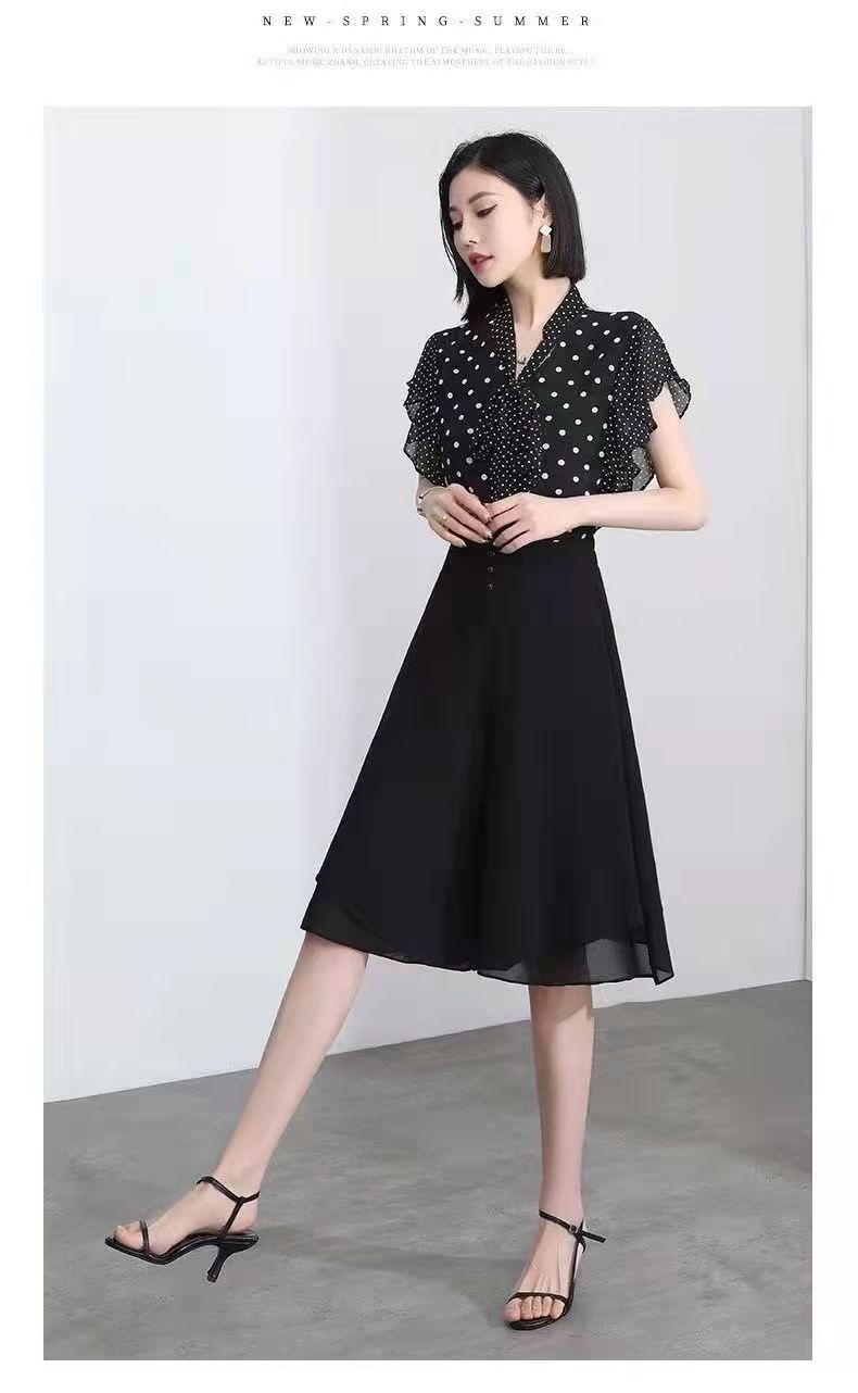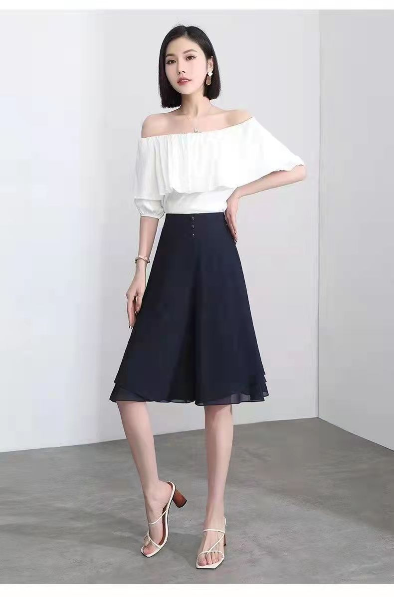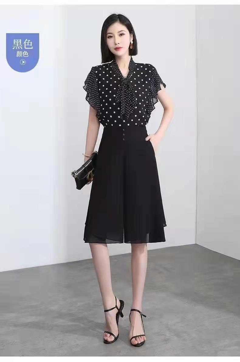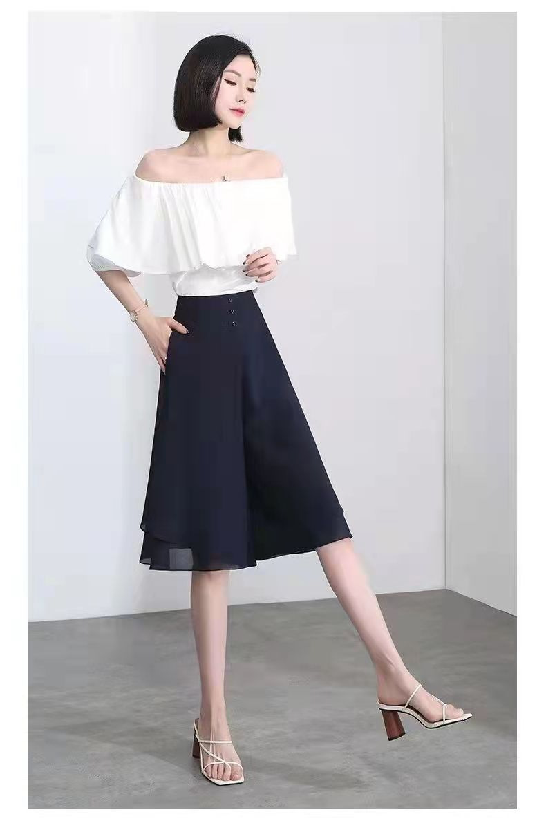 여름 쉬폰 반바지 여성 느슨한 높은 허리 처짐 우아한 패셔너블 올 매치 A 라인 더블 바지 원피스