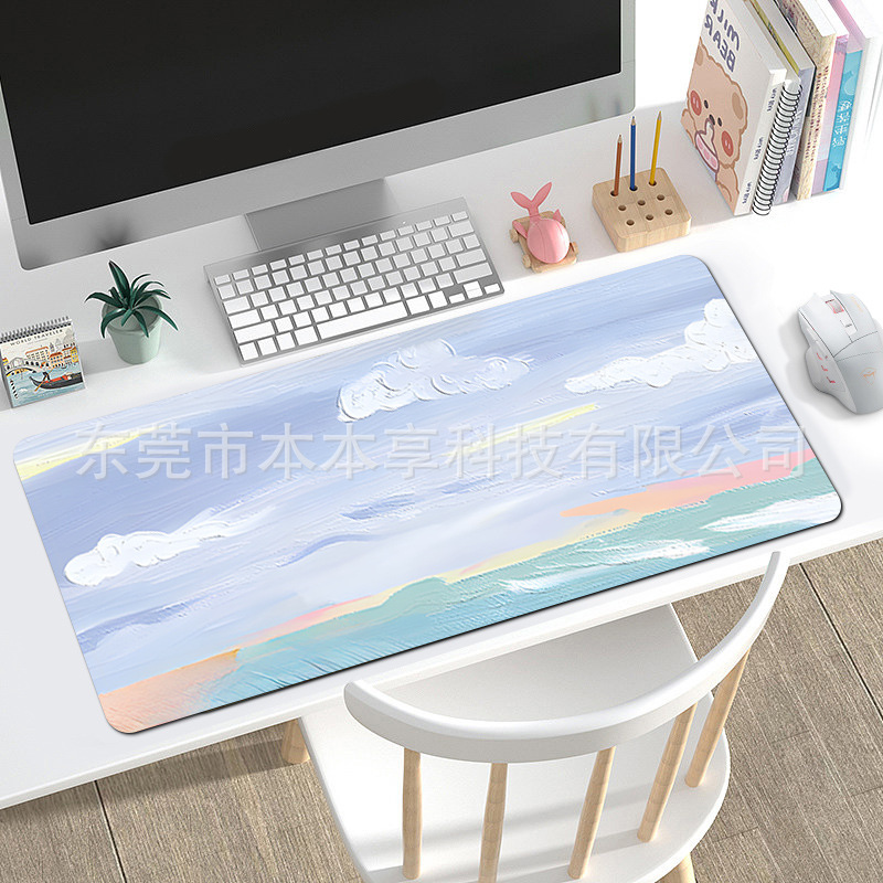풍경 마우스 패드 대형 맞춤형 간단한 Ins 스타일 귀여운 여성 사무실 책상 패드 미끄럼 방지 키보드 패드