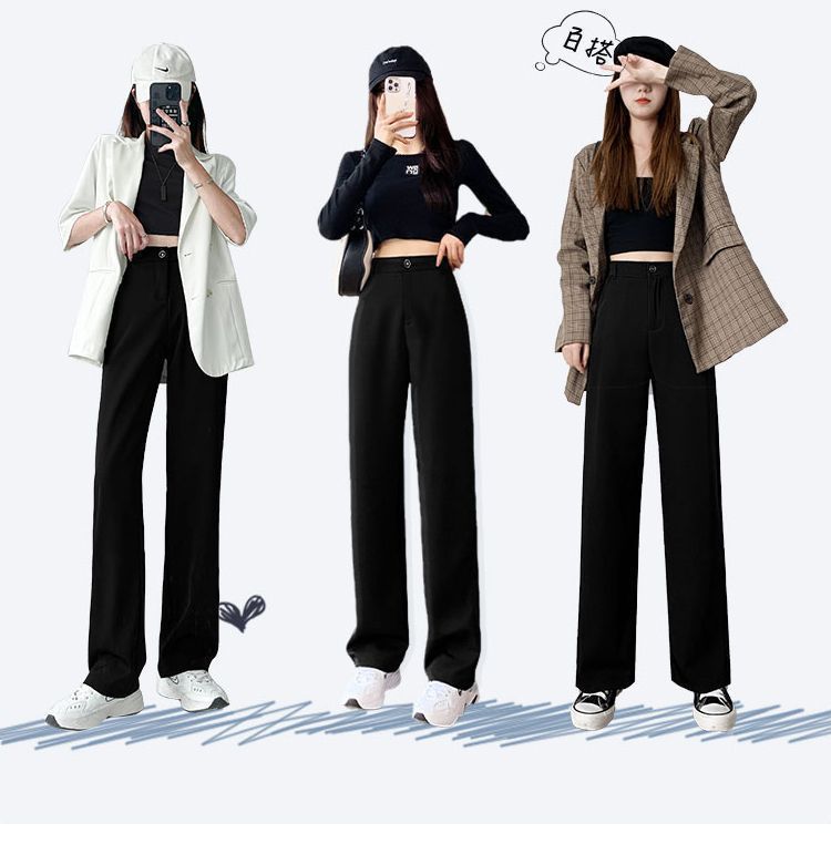 패션 넓은 다리 바지 여성 바지 여름 얇은 Draping 스트레이트 바지 작은 여름 바지 검은 세트 바지