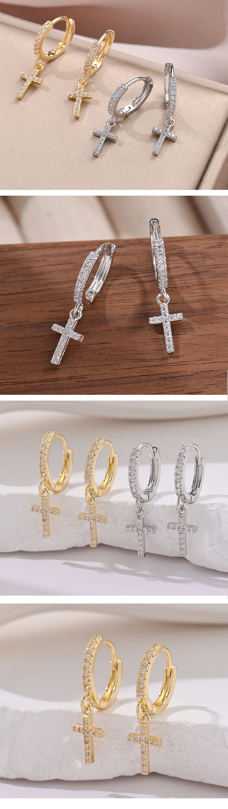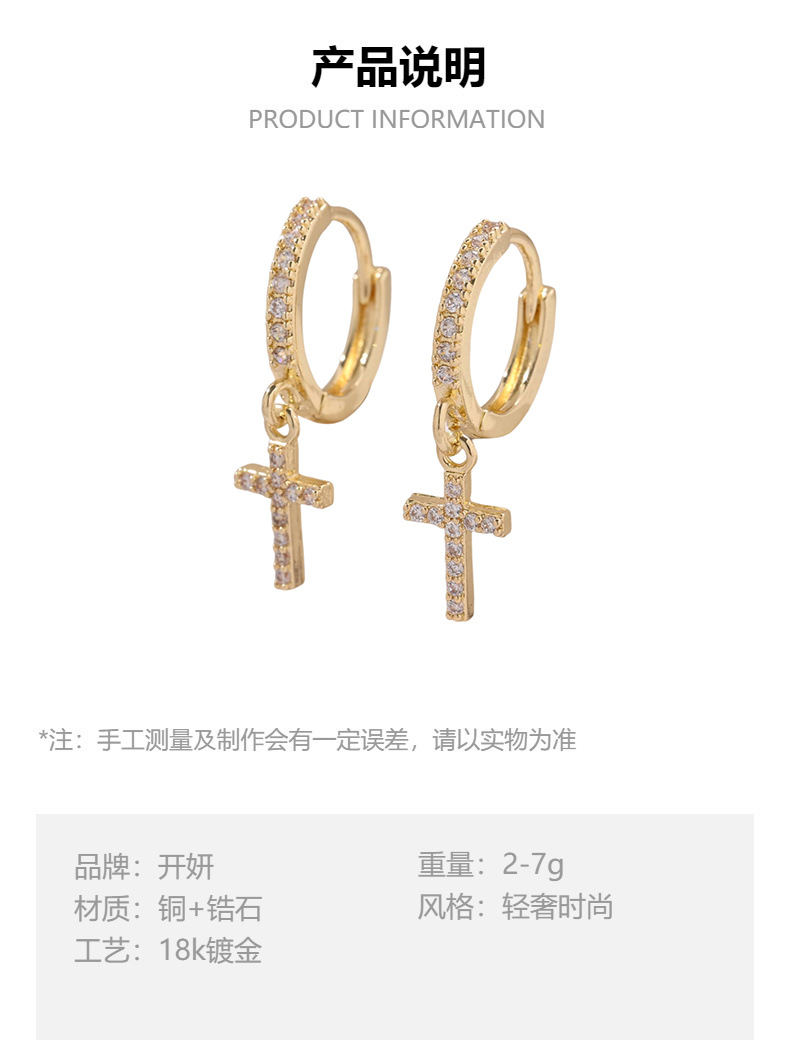 국경 간 여성 18K 작은 펜던트 절묘한 펜던트 걸이 크로스 링 지르콘 링 귀걸이 패션 싱글 행 귀걸이