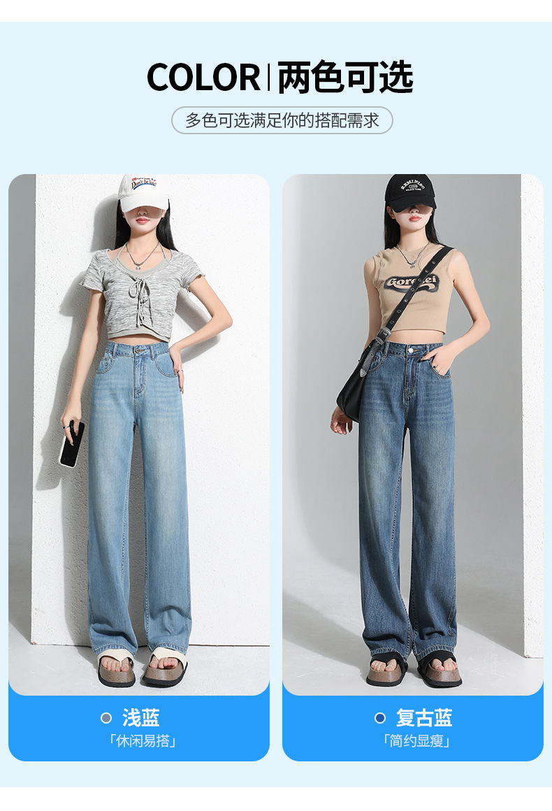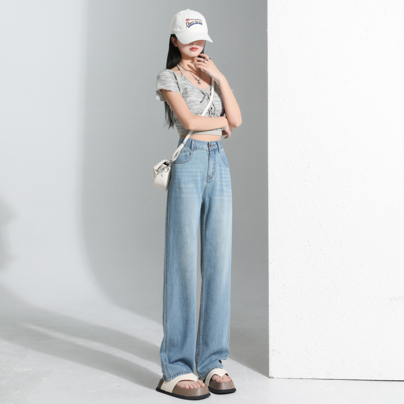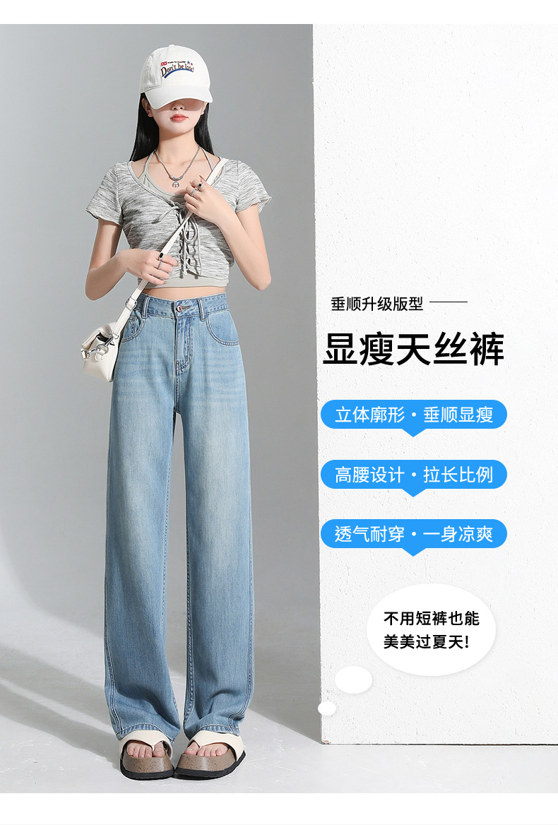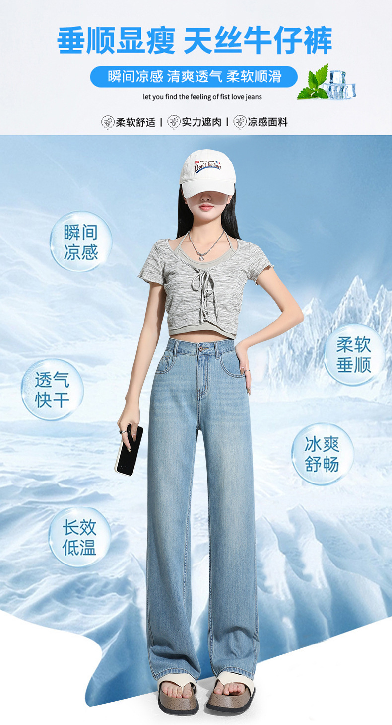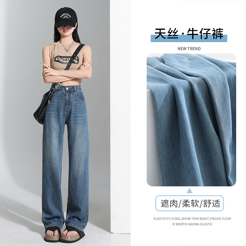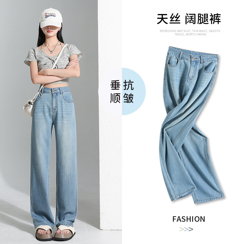 연한 파란색 드레이프 텐셀 와이드 레그 데님 팬츠 여성용 2026 여름 신상 얇은 하이웨이스트 루즈핏 스트레이트 롱 팬츠