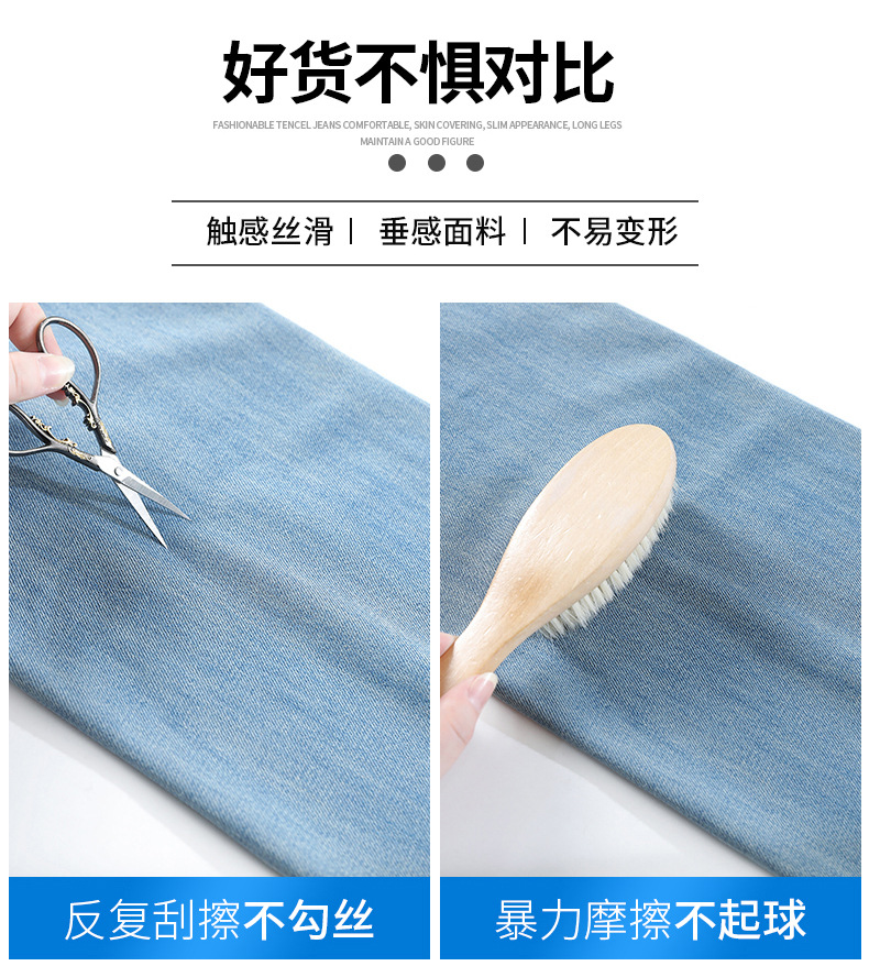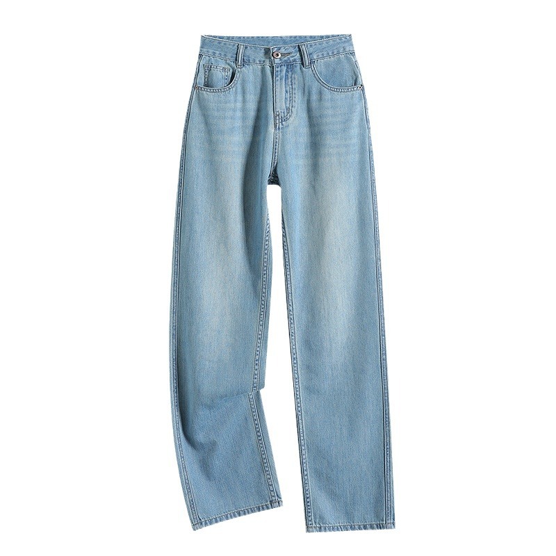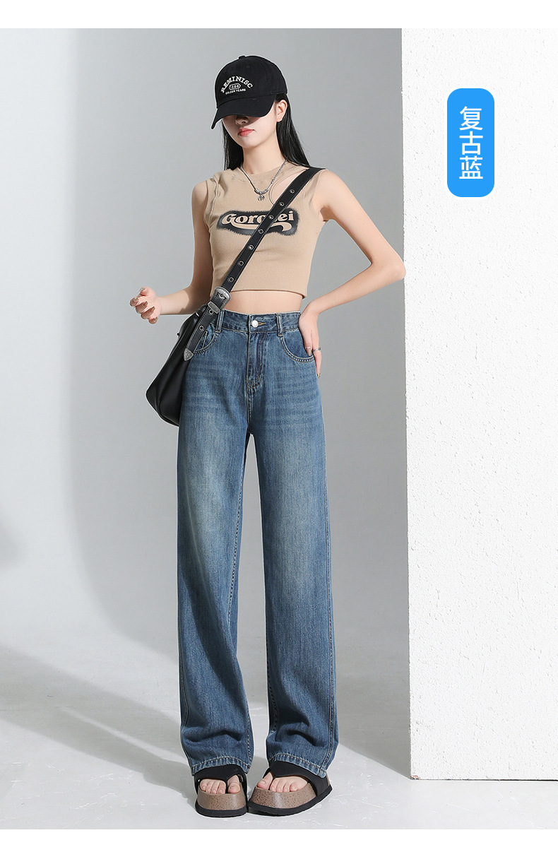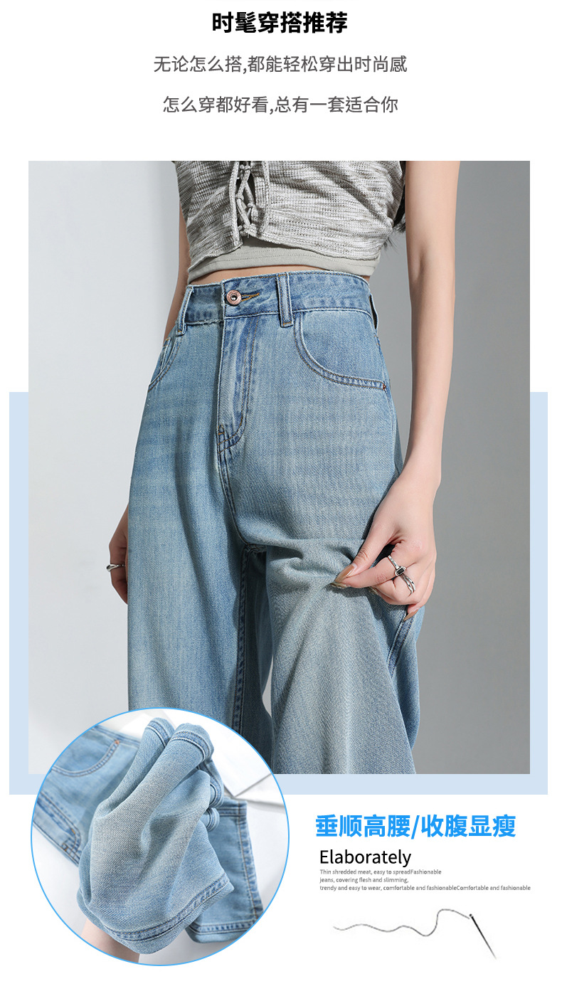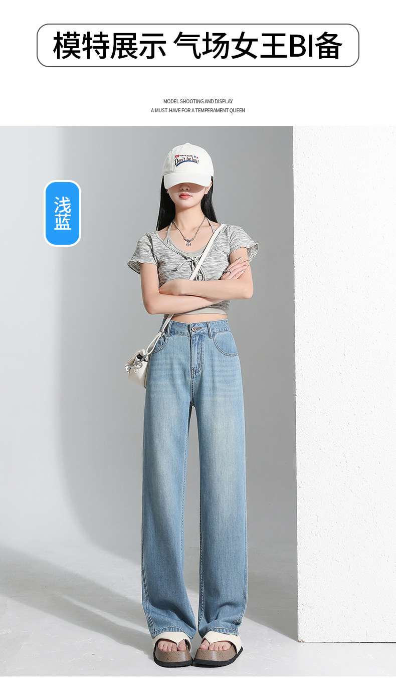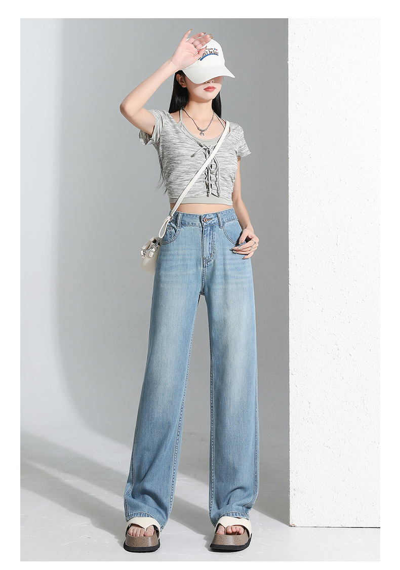 연한 파란색 드레이프 텐셀 와이드 레그 데님 팬츠 여성용 2026 여름 신상 얇은 하이웨이스트 루즈핏 스트레이트 롱 팬츠