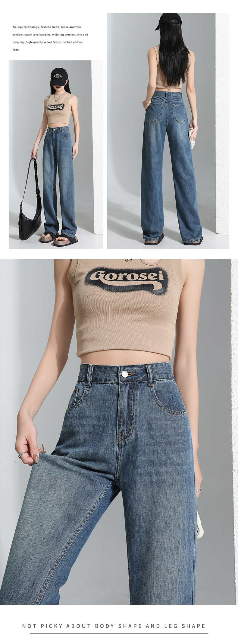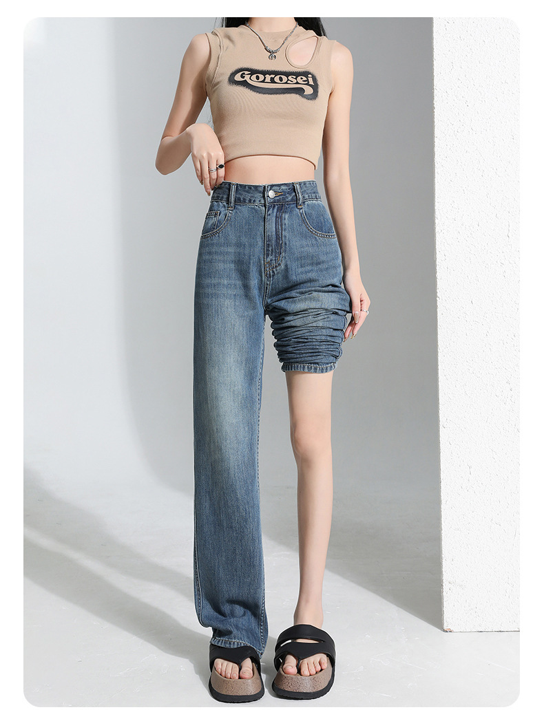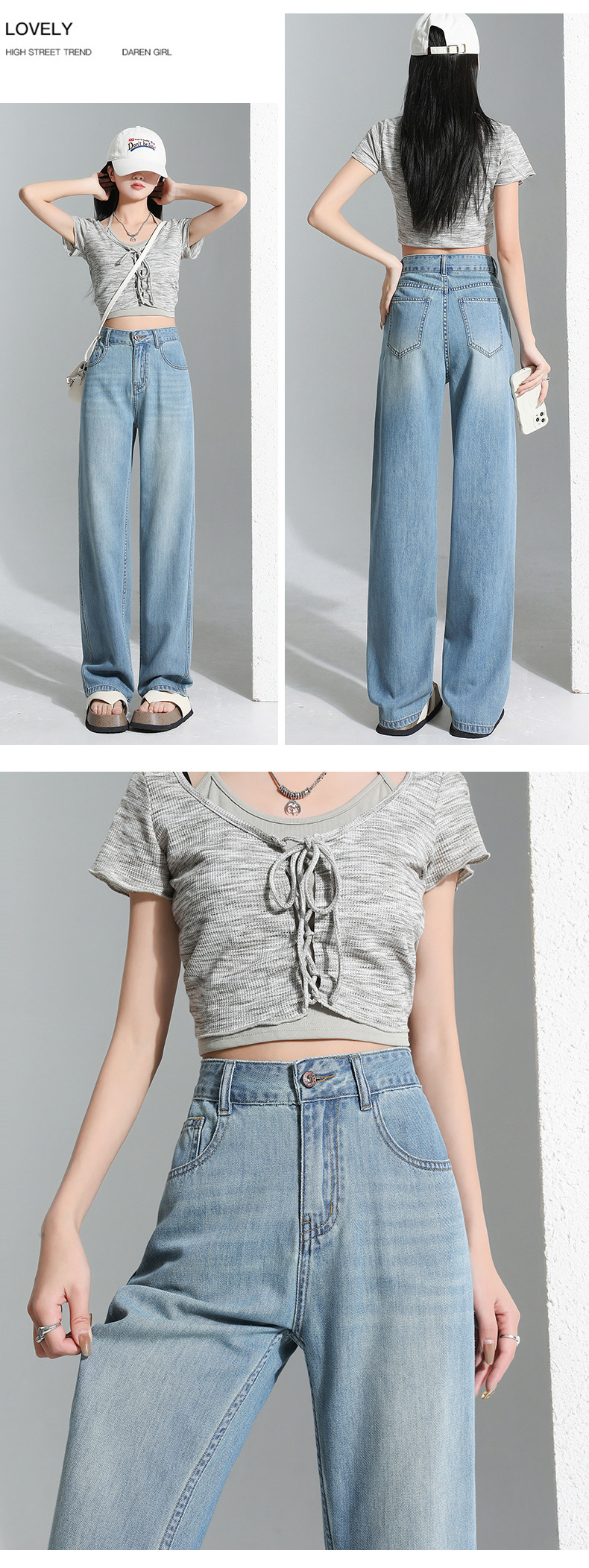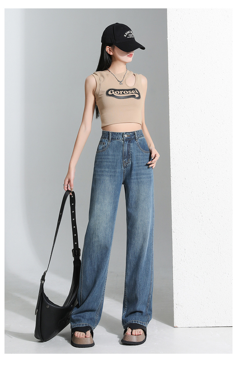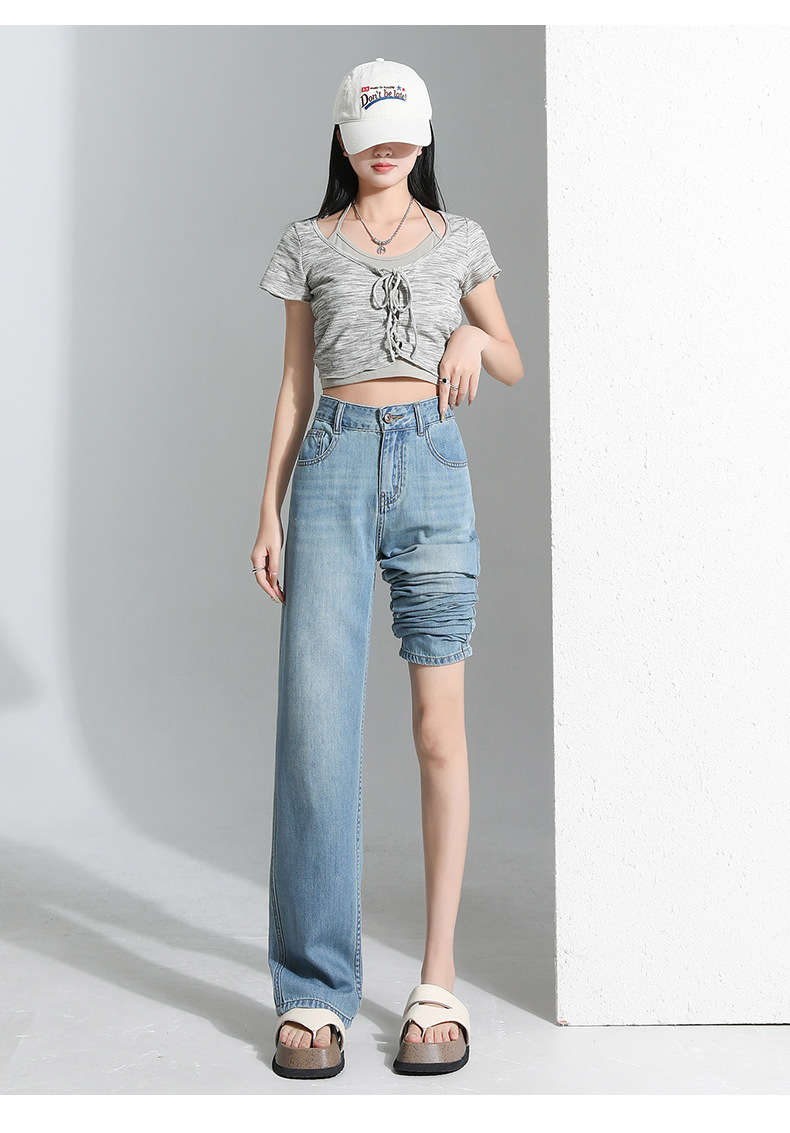 연한 파란색 드레이프 텐셀 와이드 레그 데님 팬츠 여성용 2026 여름 신상 얇은 하이웨이스트 루즈핏 스트레이트 롱 팬츠