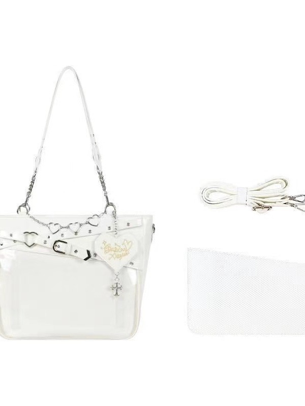 2024 새로운 원래 하위 문화 스파이스 소녀 통증 가방 대용량 투명 통증 층 크로스 바디 백 사랑 체인 어깨 가방