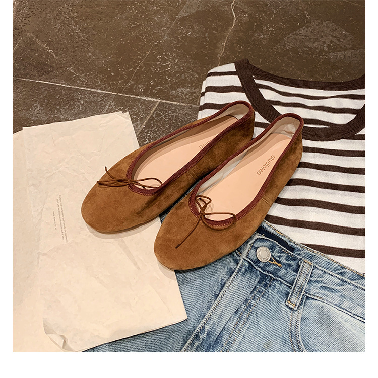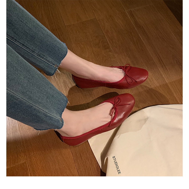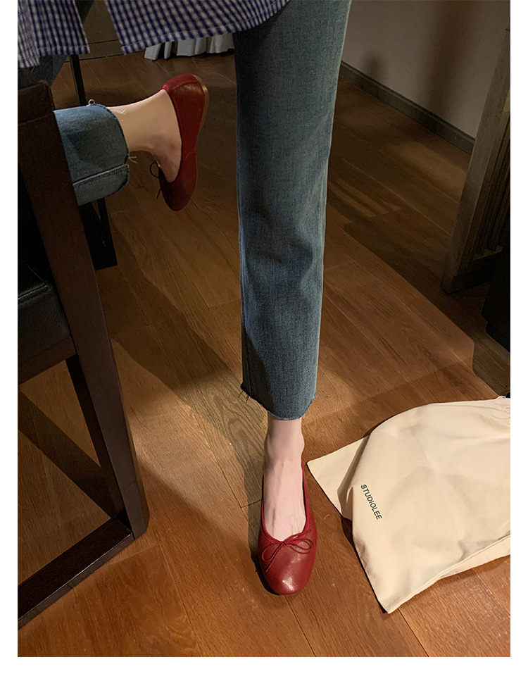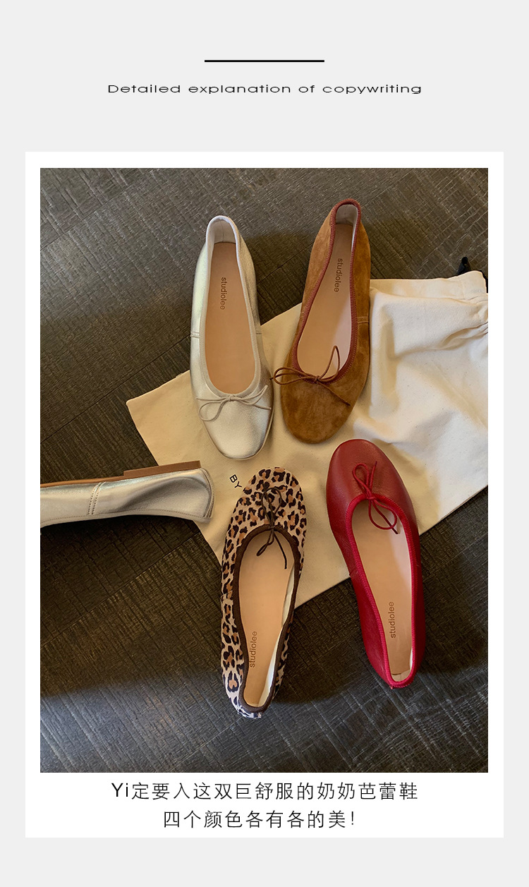 양가죽 버전 ~ 클래식 프랑스 조커 둥근 입 머리 얕은 입 기질 활 플랫 슈즈와 포도 엄마 여성
