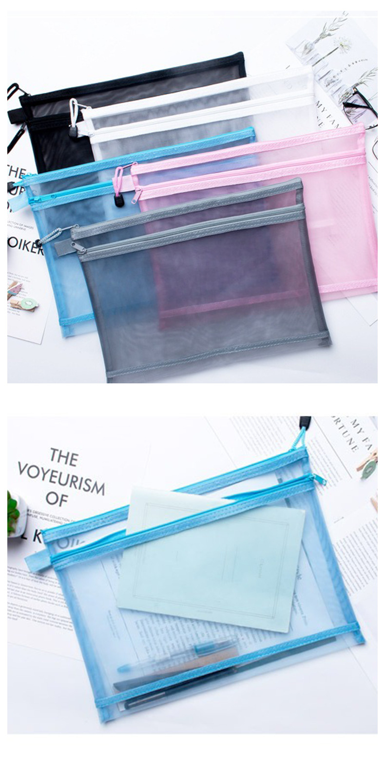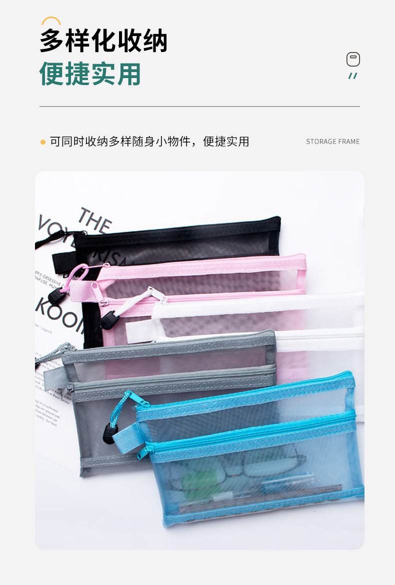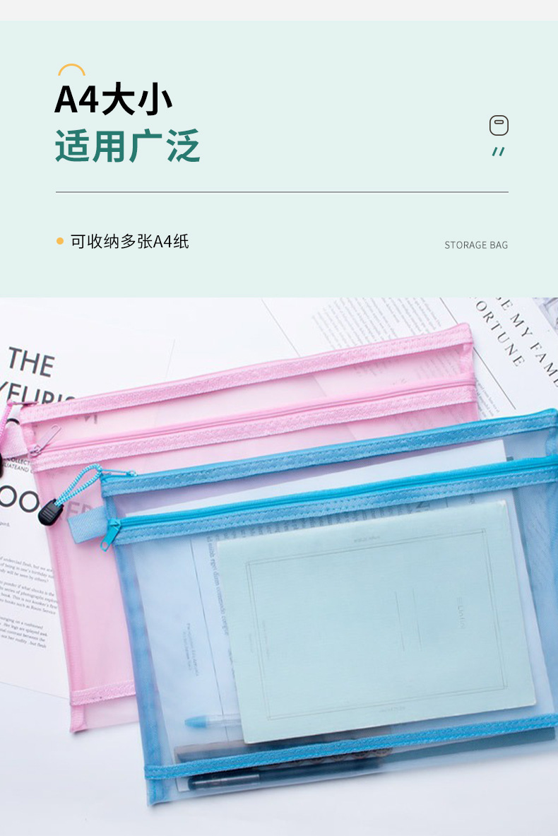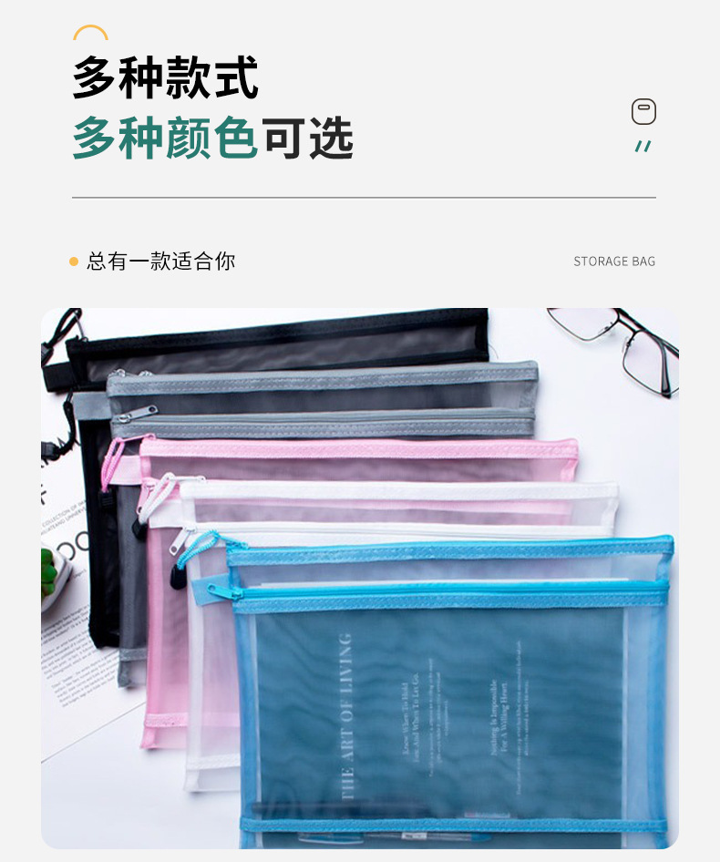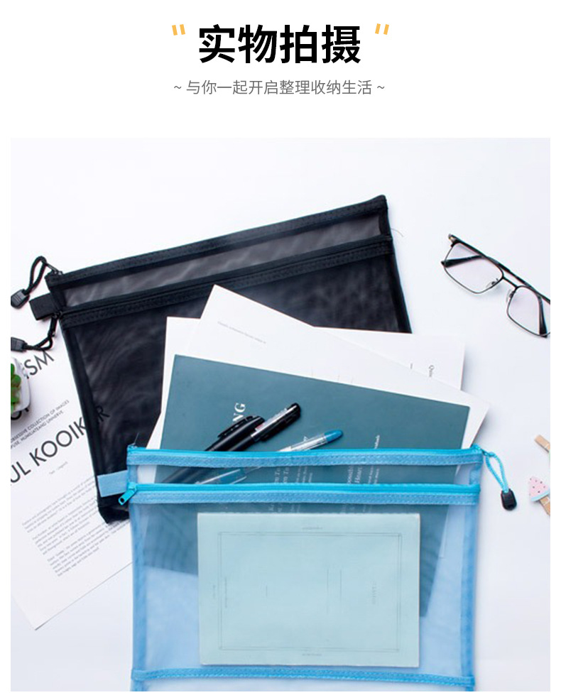 이중망사 A4 파일백 시험지 보관백 망사 필통 투명 사무실 분류 영수증 가방 휴대용