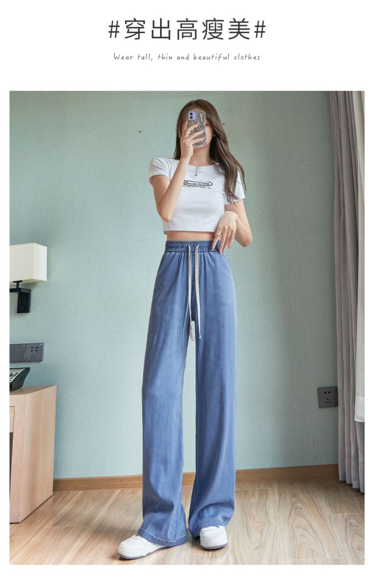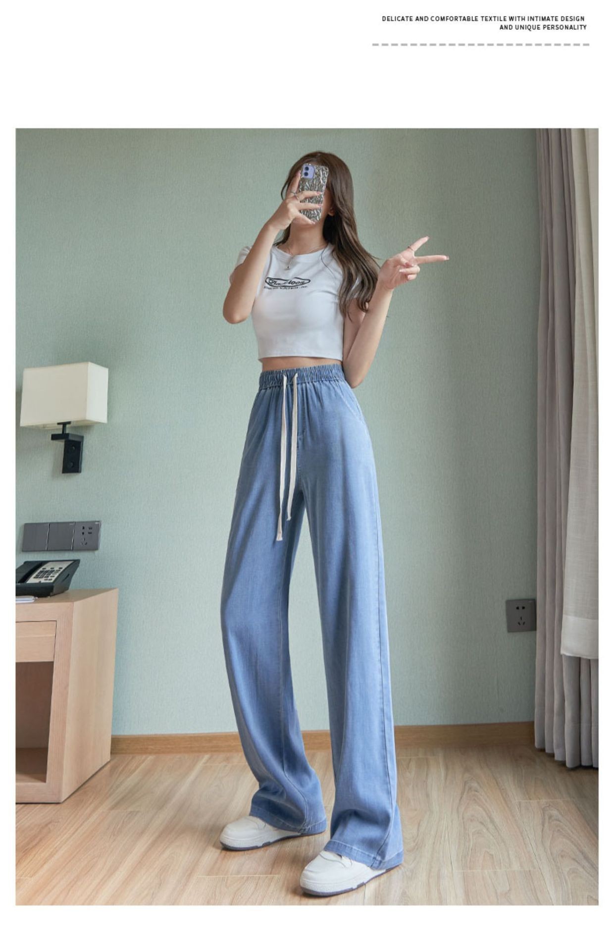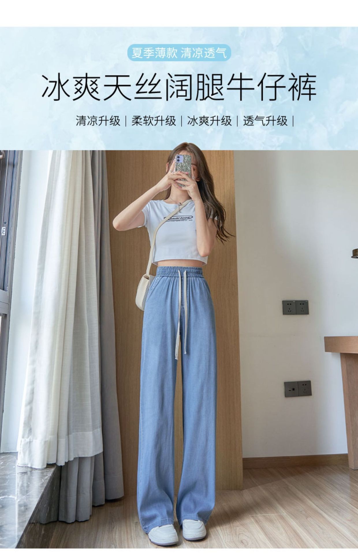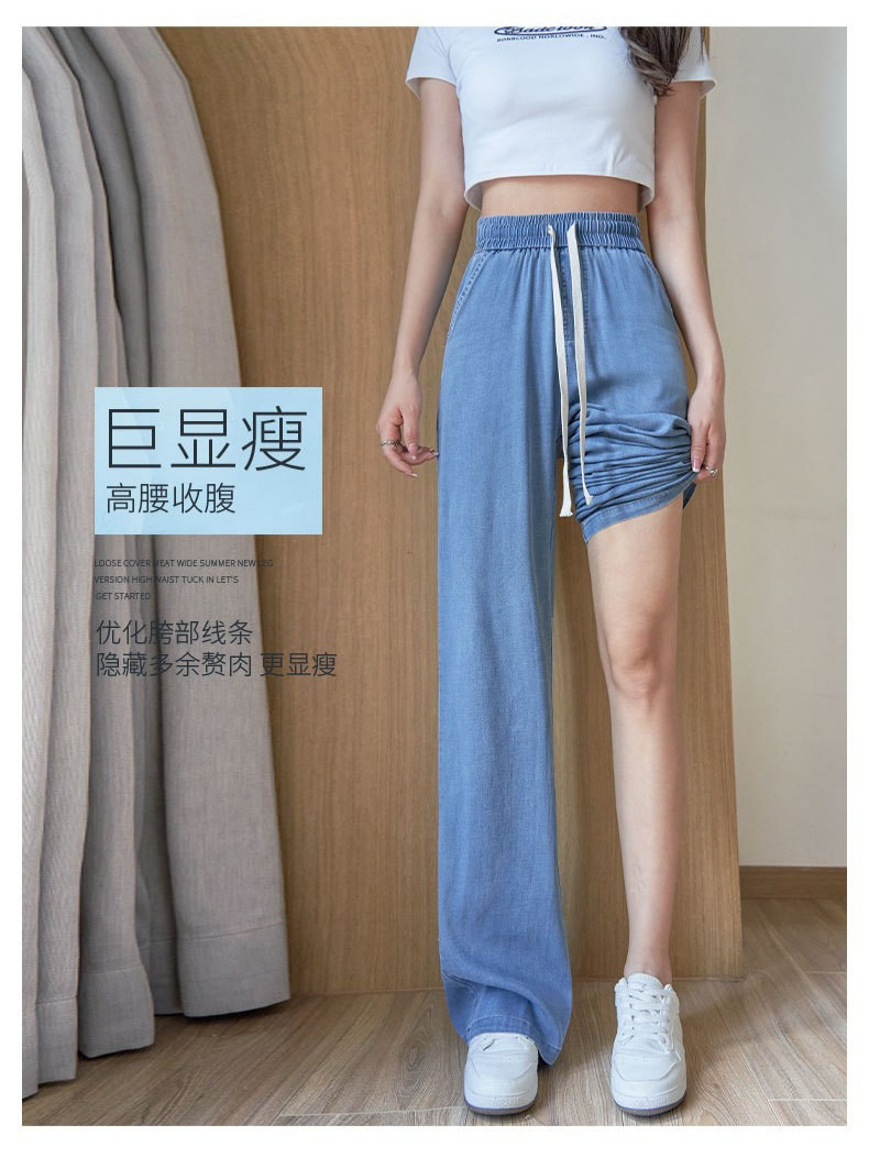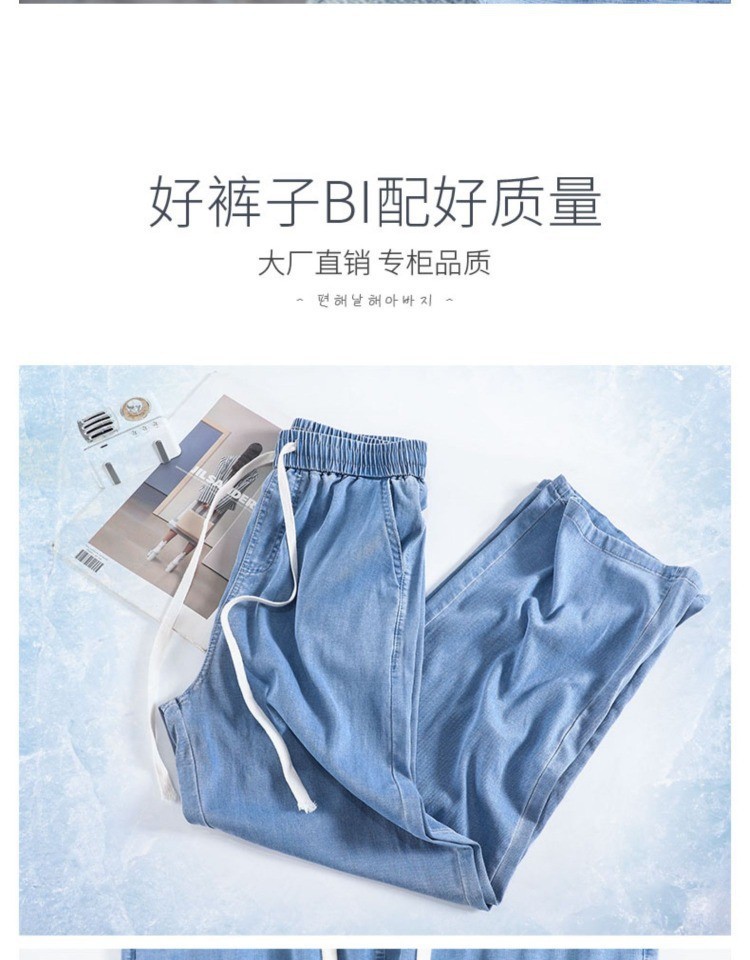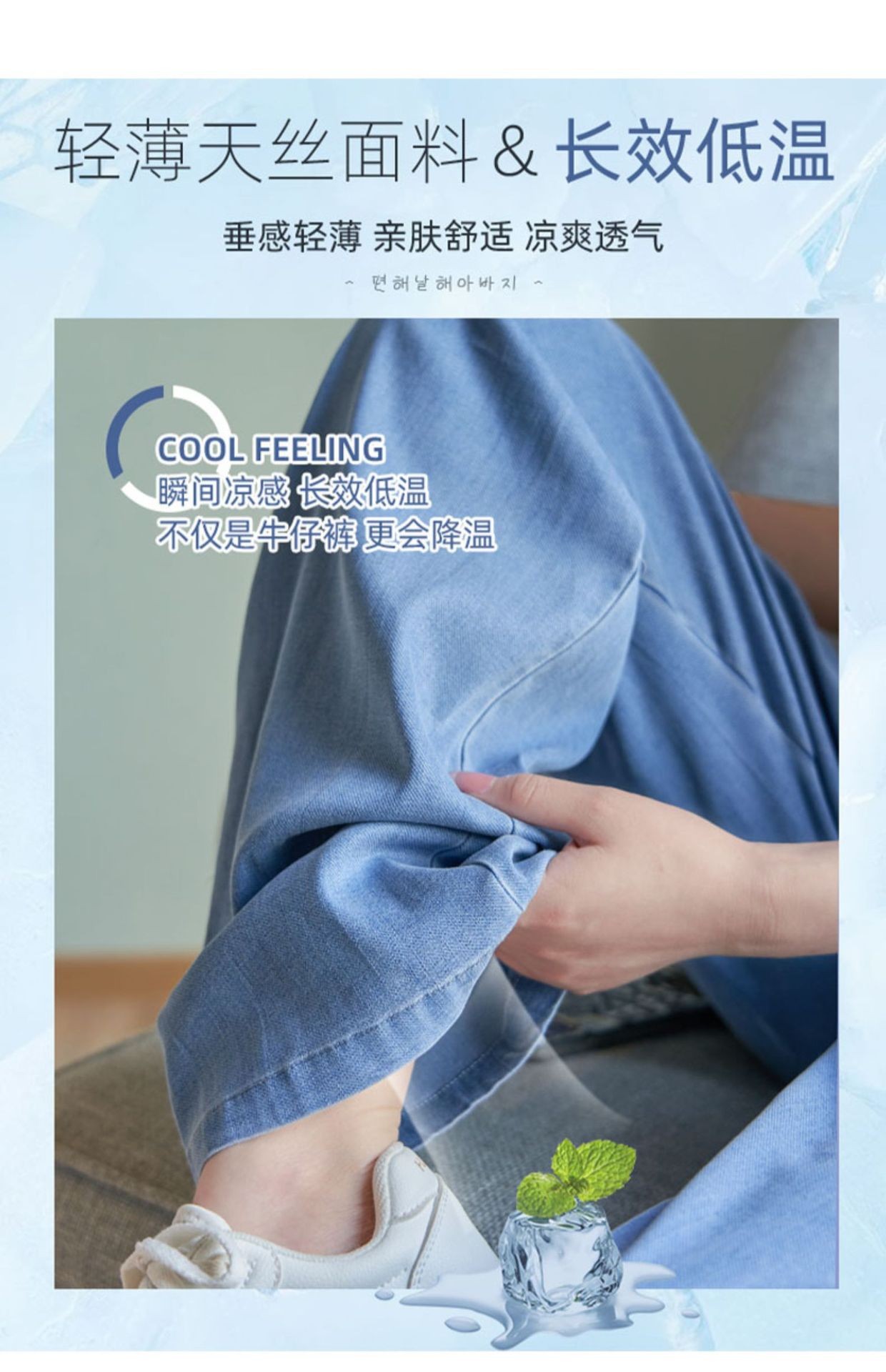 신축성있는 허리 텐셀 부드러운 청바지 여성 여름 얇은 2024 새로운 편안한 착용감 슬림 핏 짧은 아이스 실크 스트레이트 팬츠