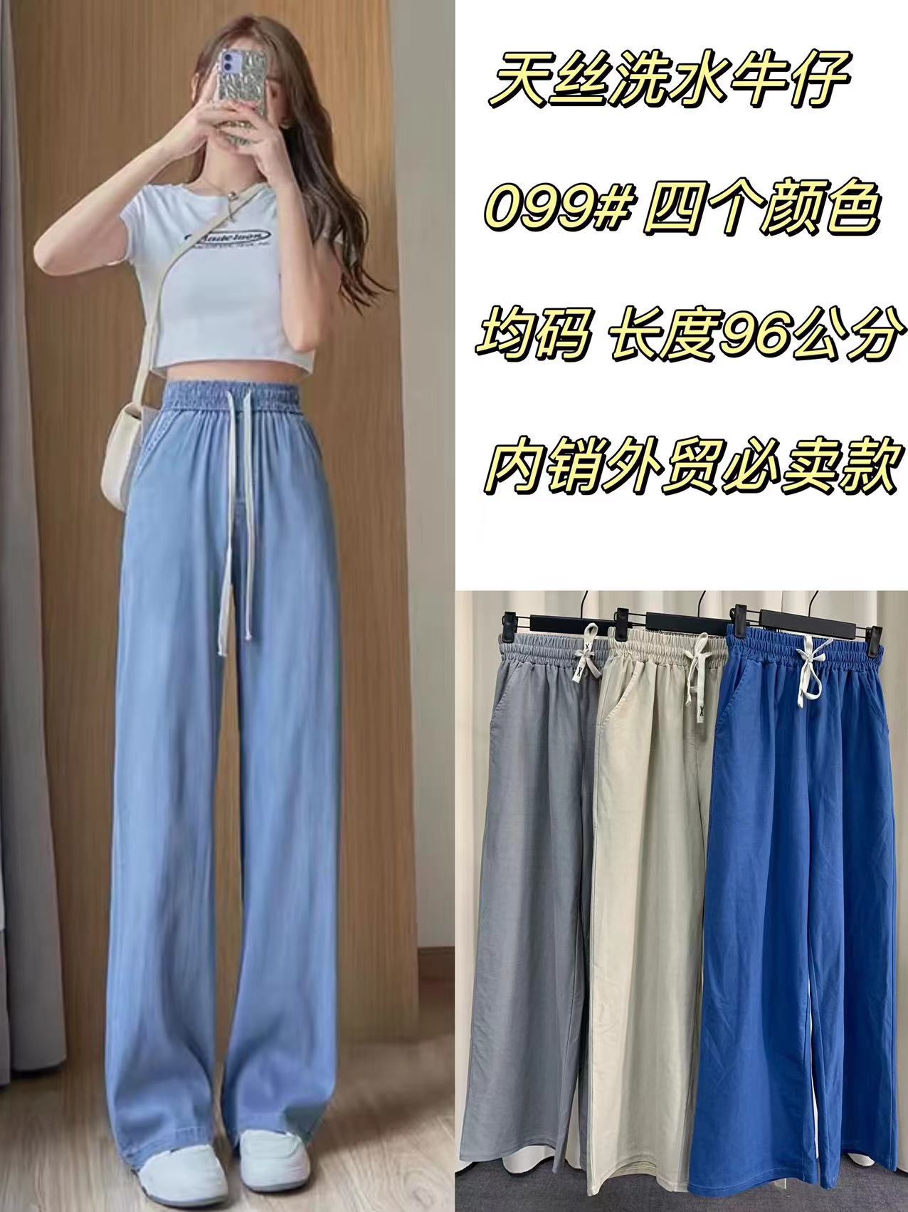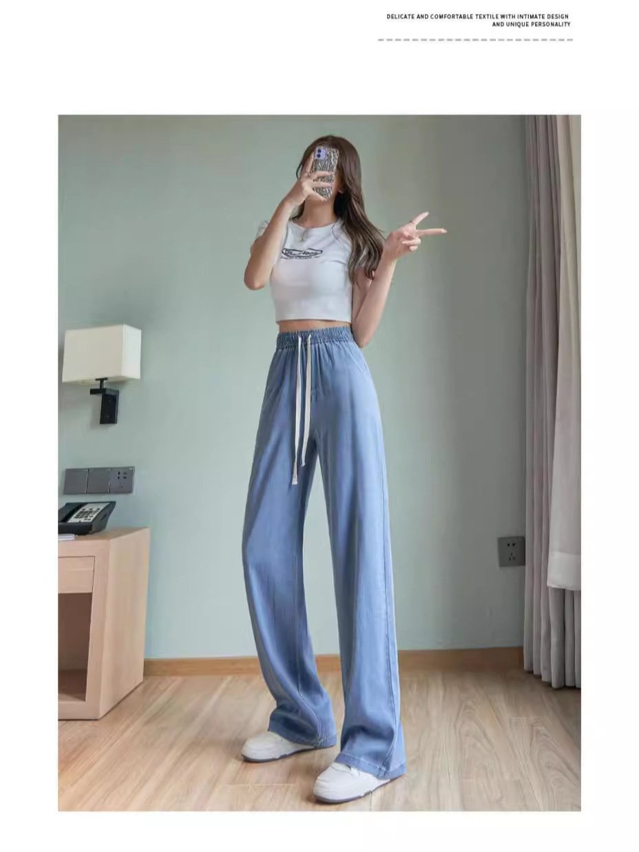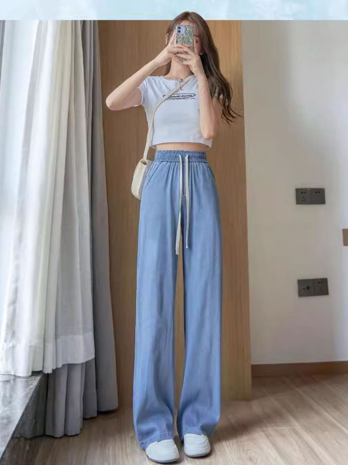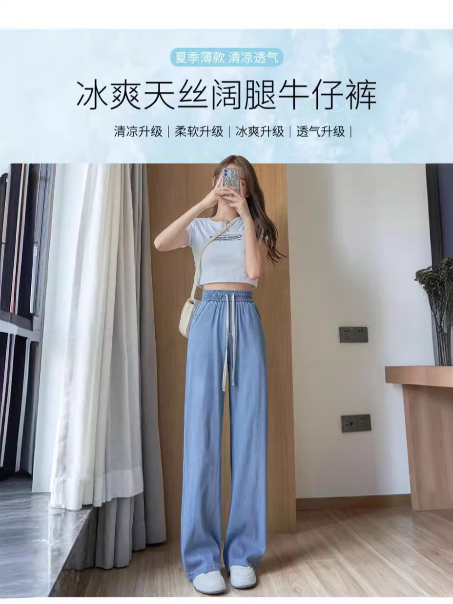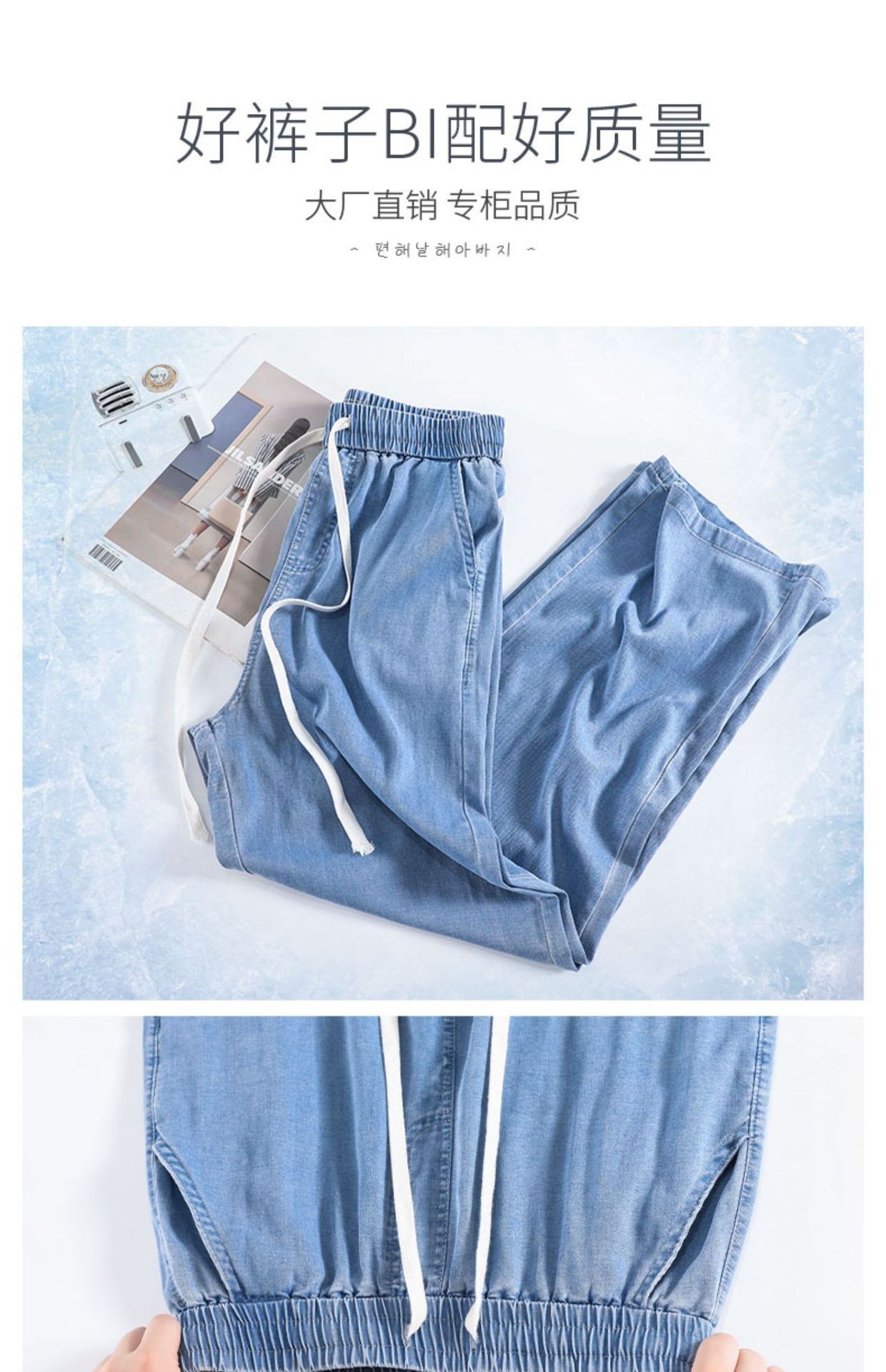 신축성있는 허리 텐셀 부드러운 청바지 여성 여름 얇은 2024 새로운 편안한 착용감 슬림 핏 짧은 아이스 실크 스트레이트 팬츠