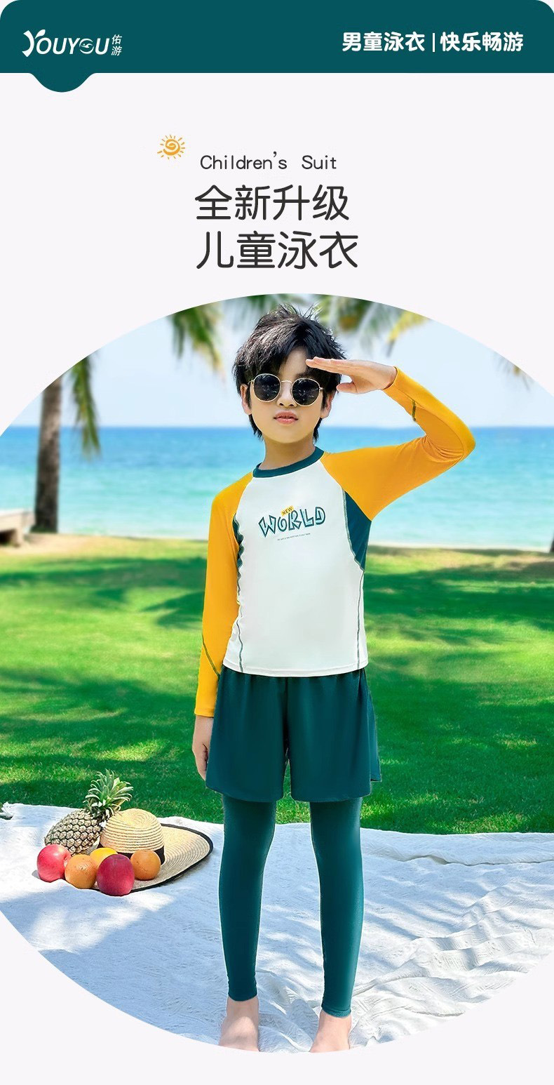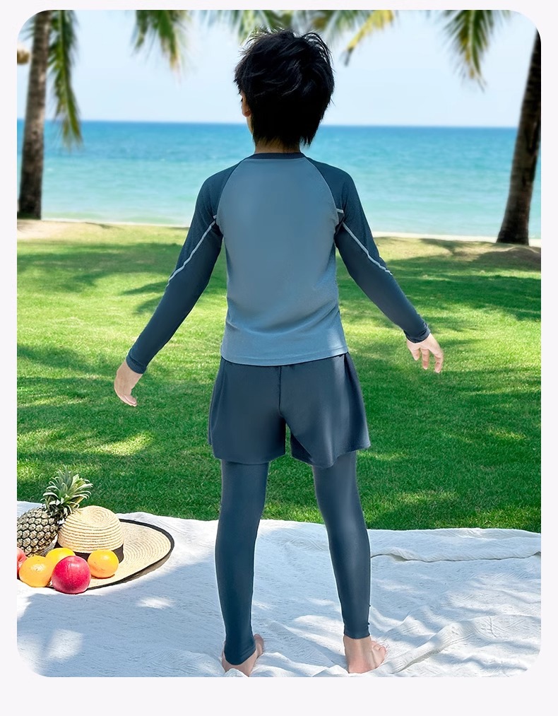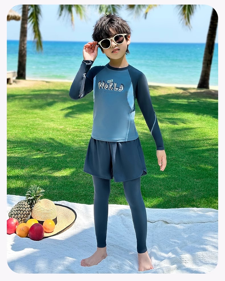 어린이 수영복 소년 분할 긴 소매 바지 패션 수영복 2024 새로운 스타일 빅 키즈 소년 수영 트렁크 장비