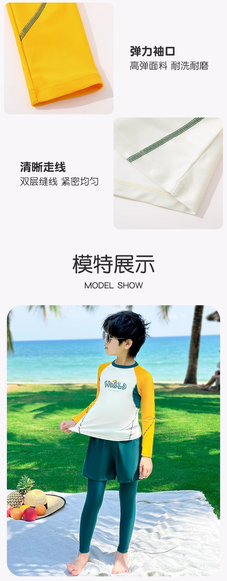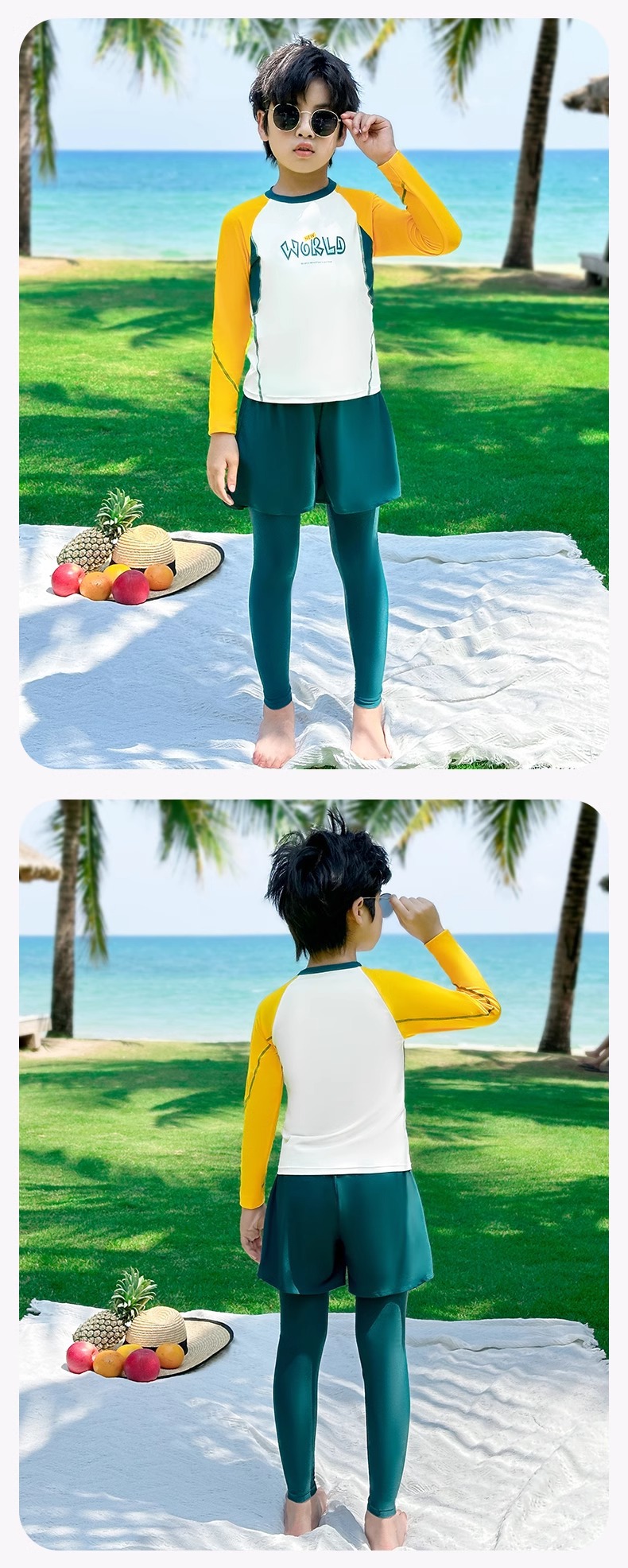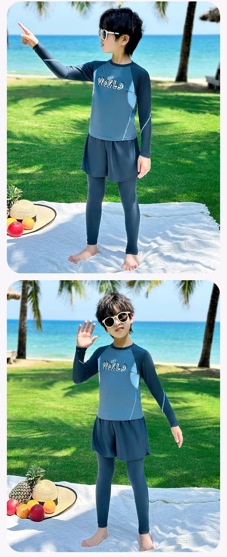 어린이 수영복 소년 분할 긴 소매 바지 패션 수영복 2024 새로운 스타일 빅 키즈 소년 수영 트렁크 장비