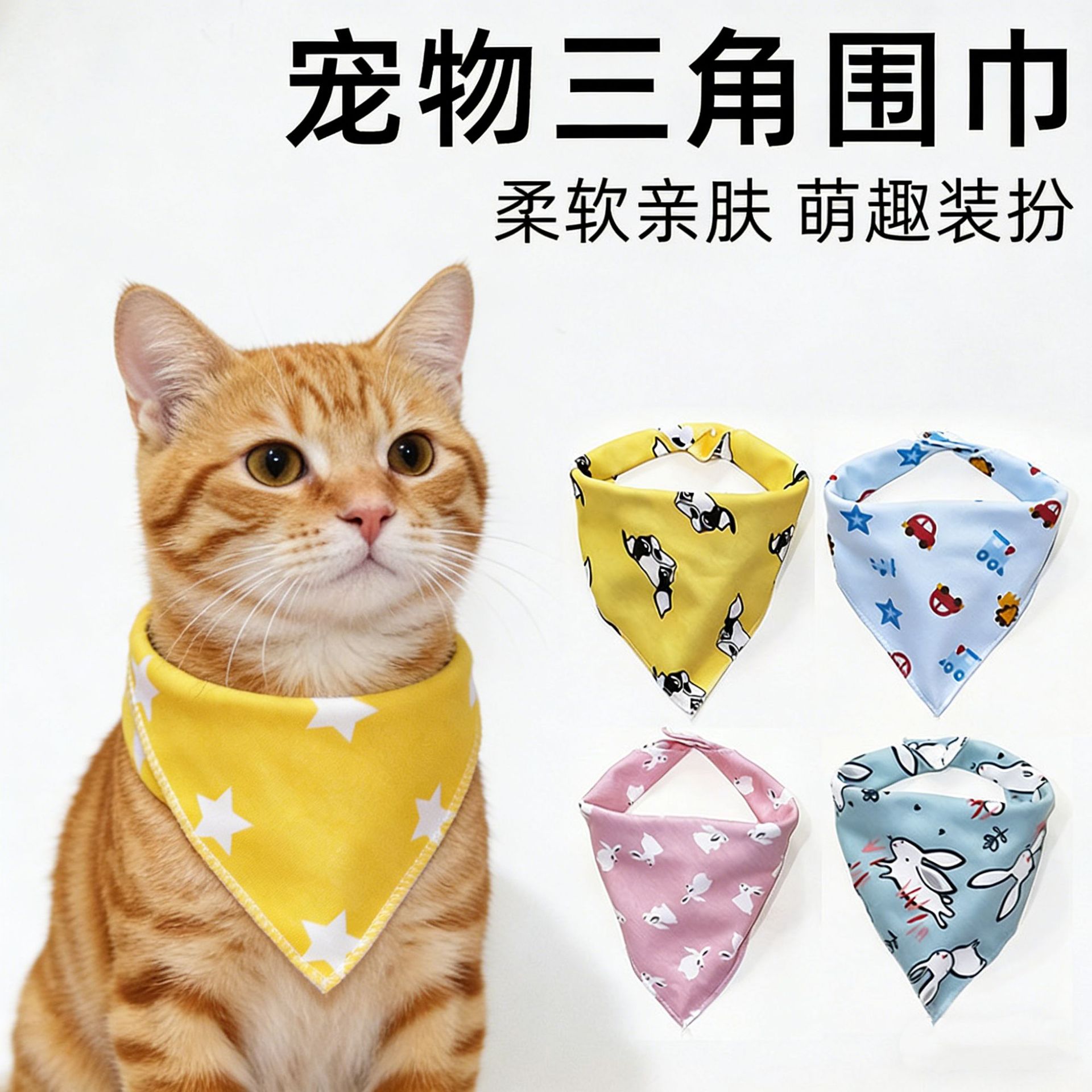 애완동물 침받이, 순면 강아지 턱받이, 고양이 먹는 때 더러움 방지 입 닦는 타월, 조절 가능한 소형견 목걸이, 도매
