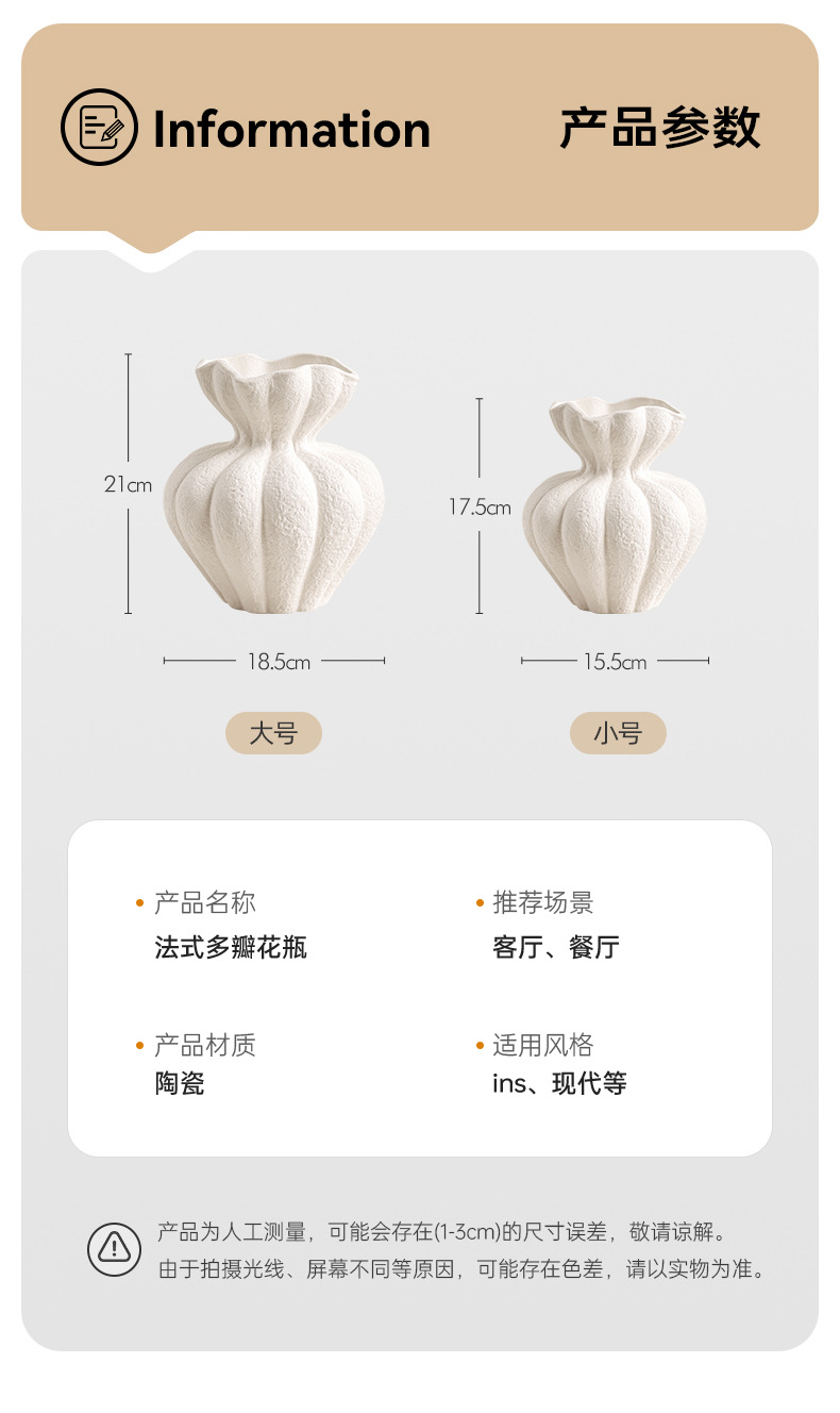 대형 프렌치 스타일의 다중 꽃잎 꽃병