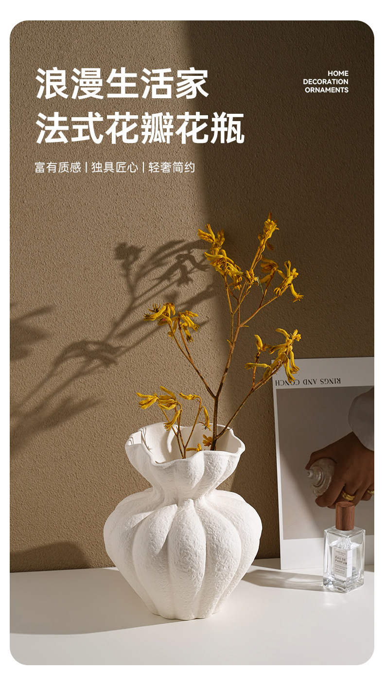베한 메이 프랑스 스타일 조용한 꽃병 화이트 하이 엔드 장식 거실 데스크탑 홈 레트로 아트 장식 꽃 용기