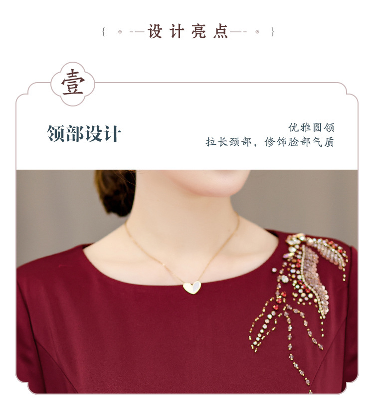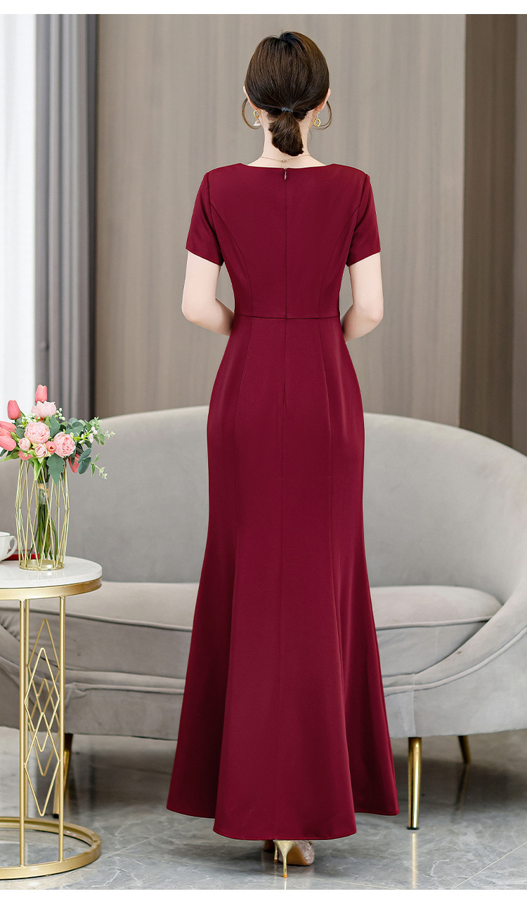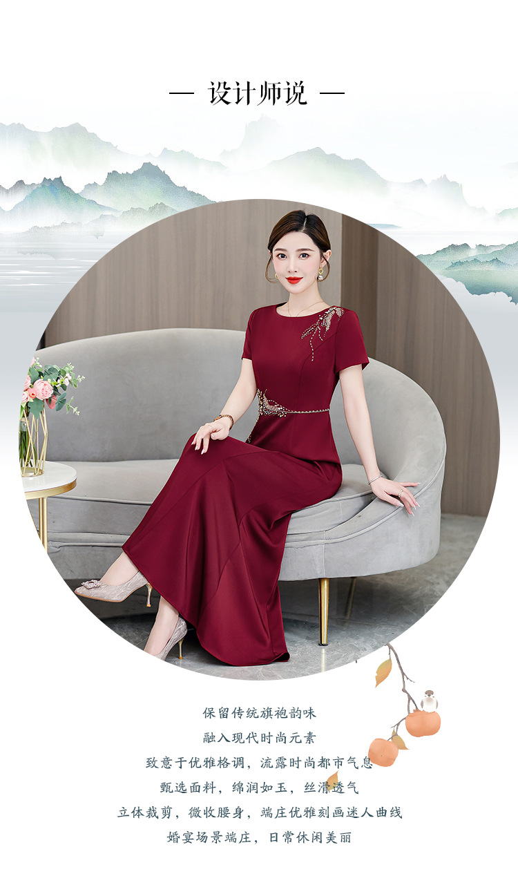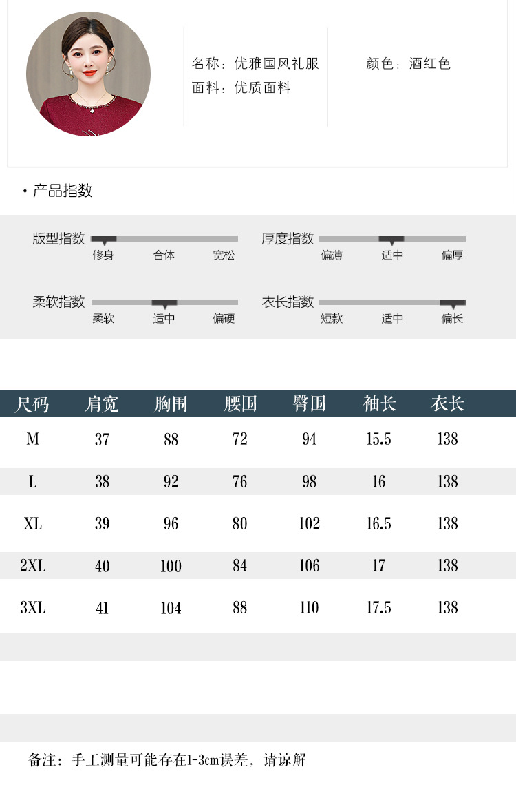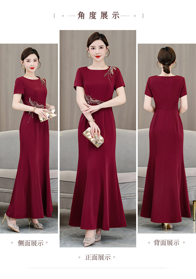 중국 스타일 우아한 웨딩 원피스 원피스 2024 여름 새로운 어머니 원피스 중공업 구슬 버건디 원피스