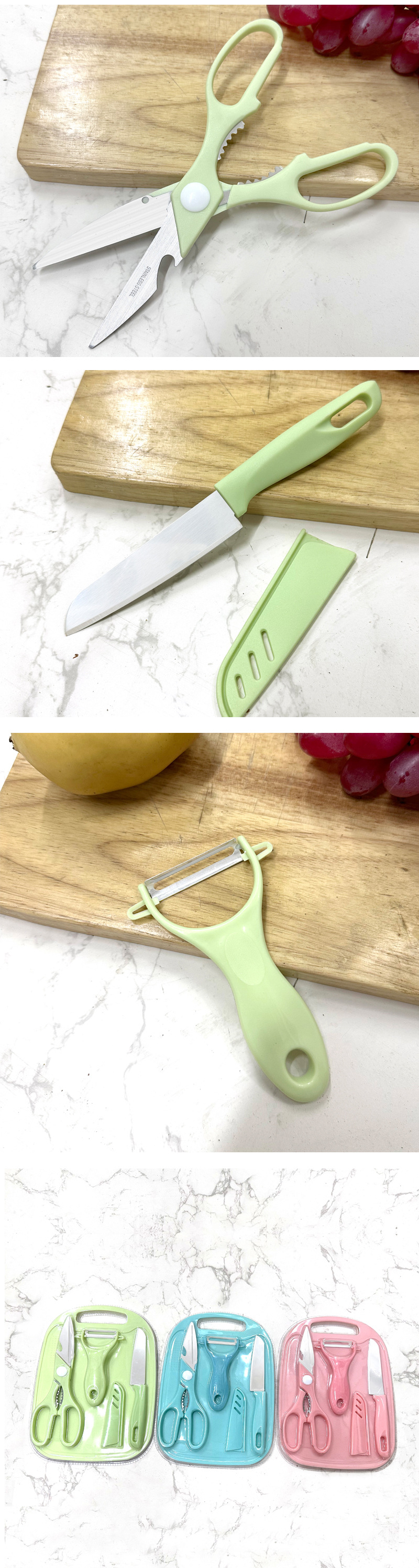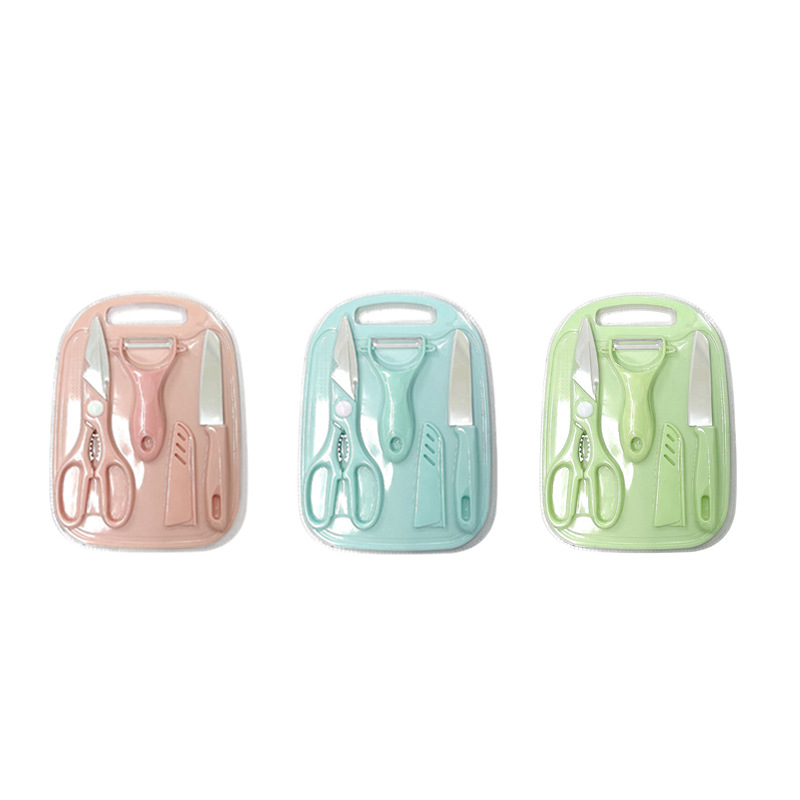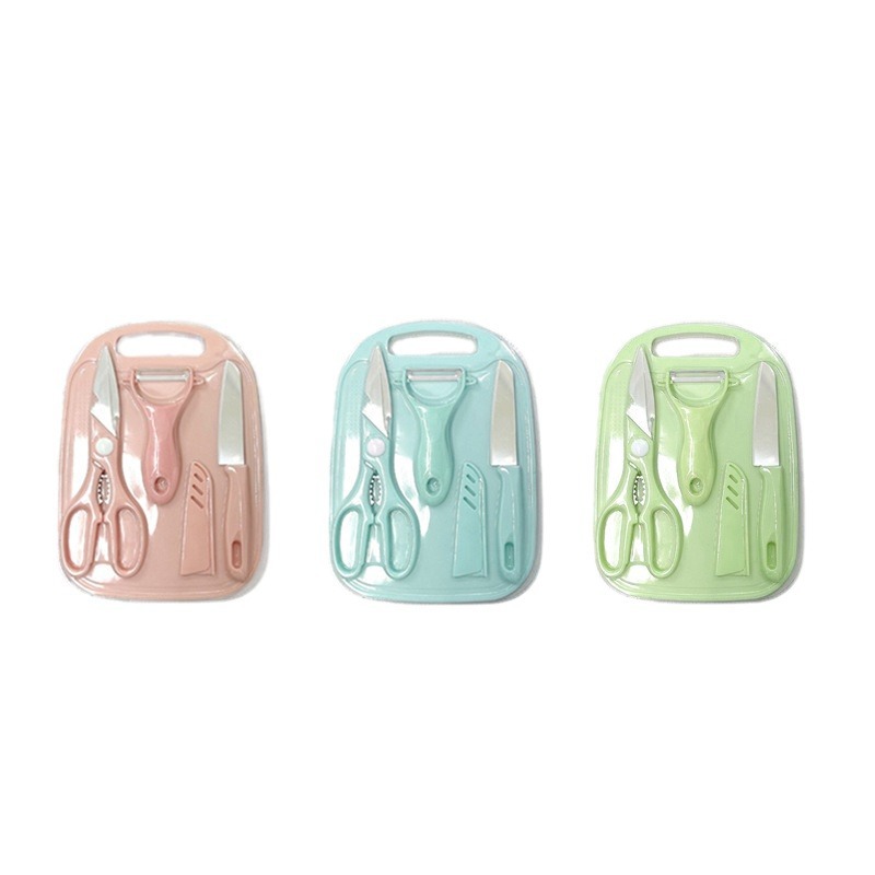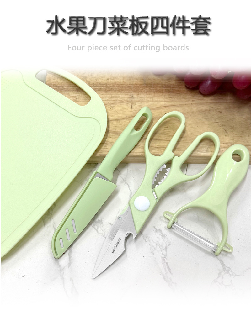 스테인레스 스틸 주방 칼 어린이 도마 커터 과일 칼 도마 보드 보충 식품 가위 멜론 플래너 4 피스 세트
