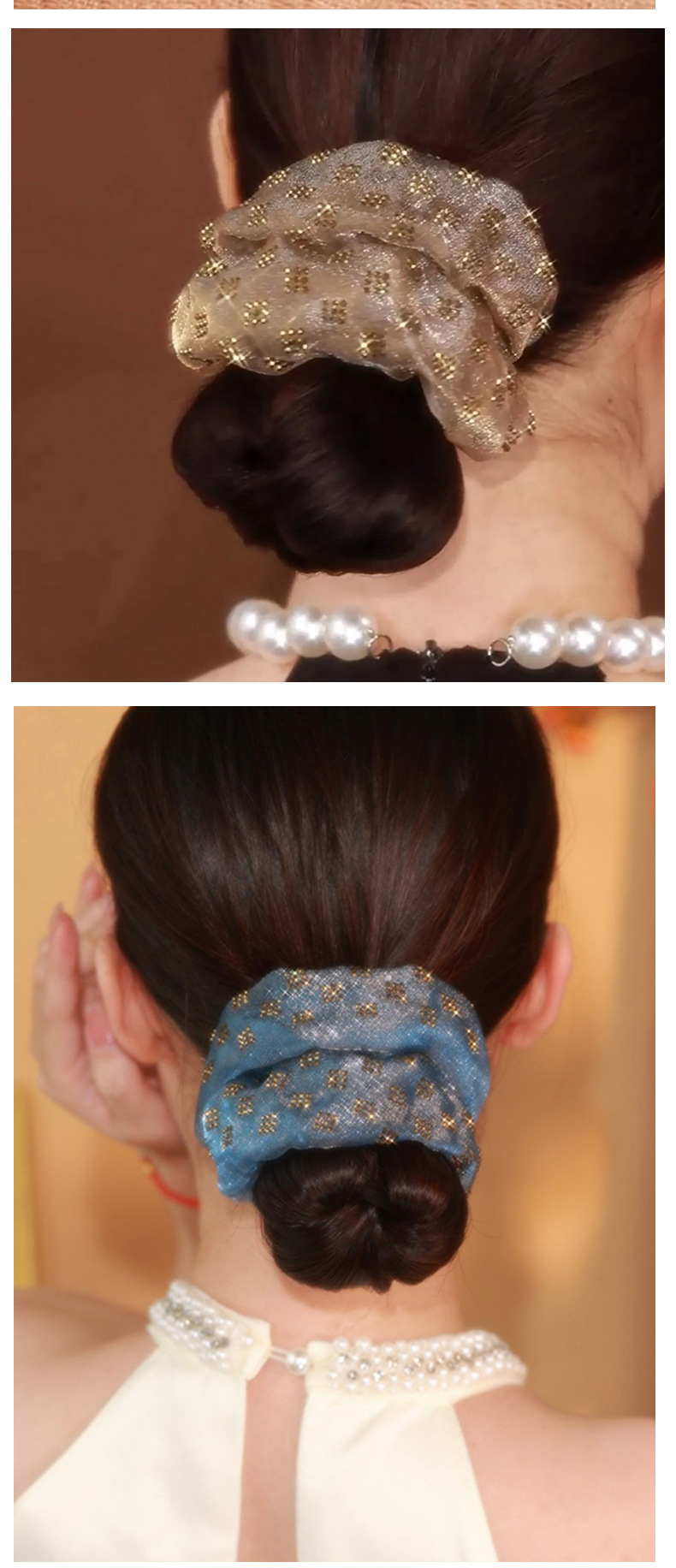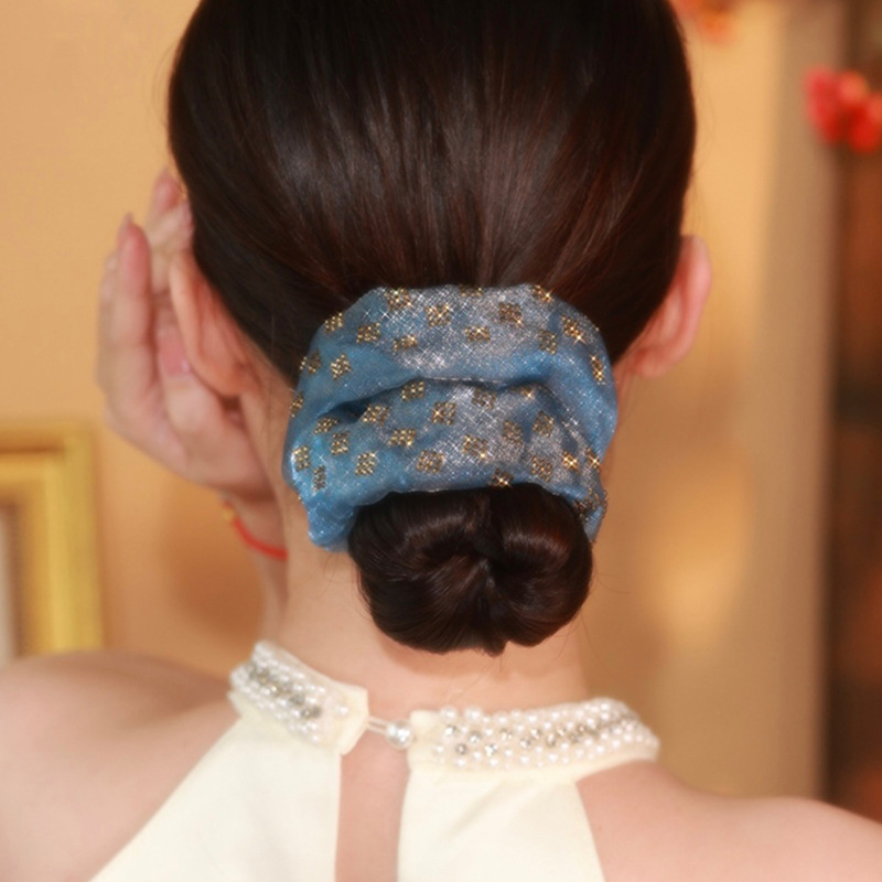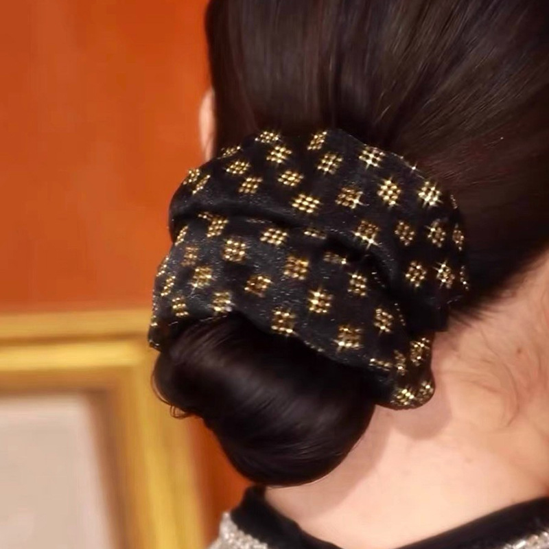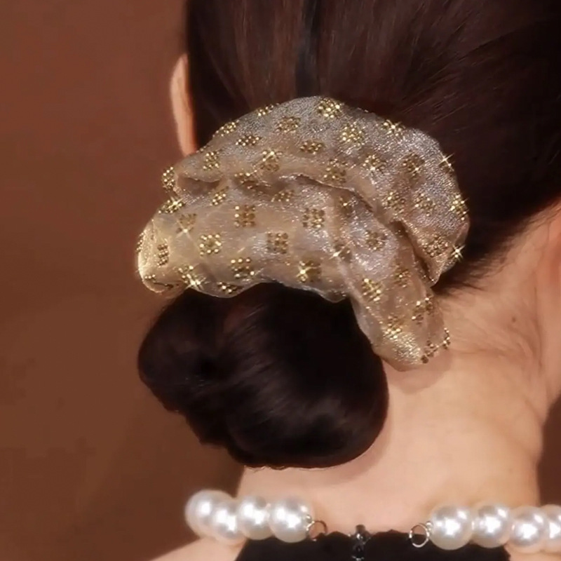 쉐이크 톤 동일 스타일 핫 드릴링 더블 레이어 대형 내장 헤어 링 고급 느낌 헤어 코폰 테일 헤드 로프 헤드 플라워 볼 헤어 로프 고무 텐든