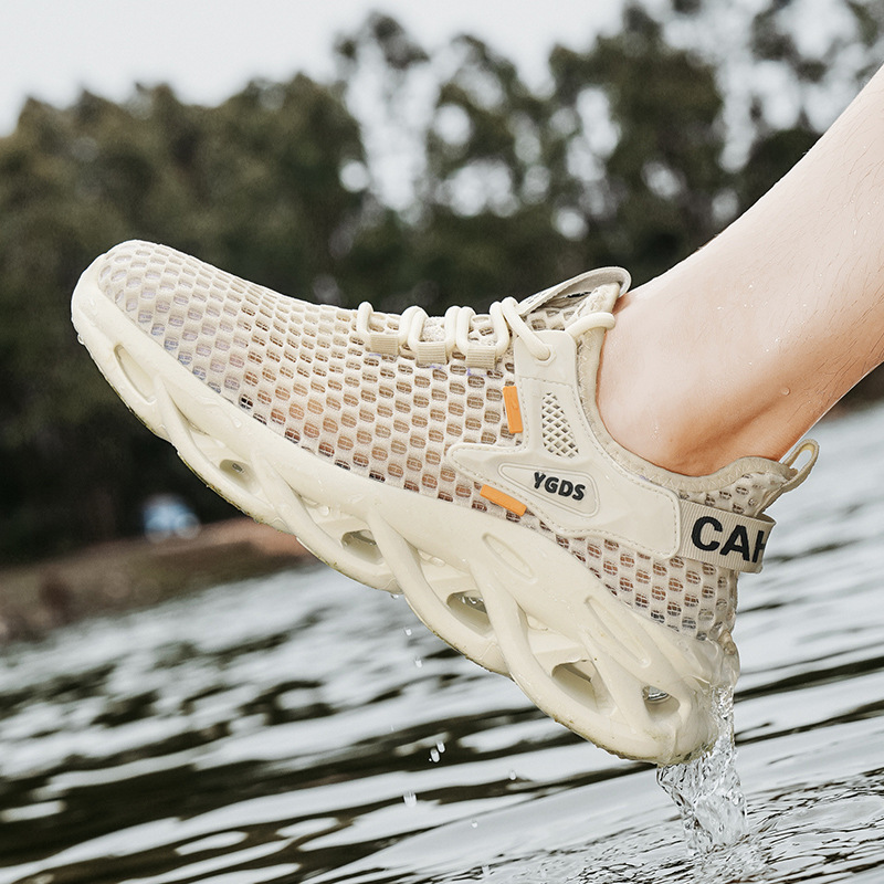 2024 년 여름 새로운 매일 달리기 스포츠 레이스 업 유행 남성 신발 대형 메쉬 메쉬 통기성 로우 컷 운동화