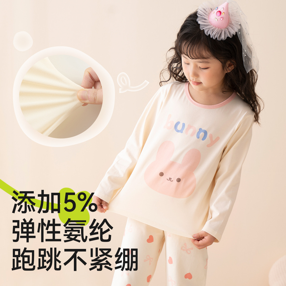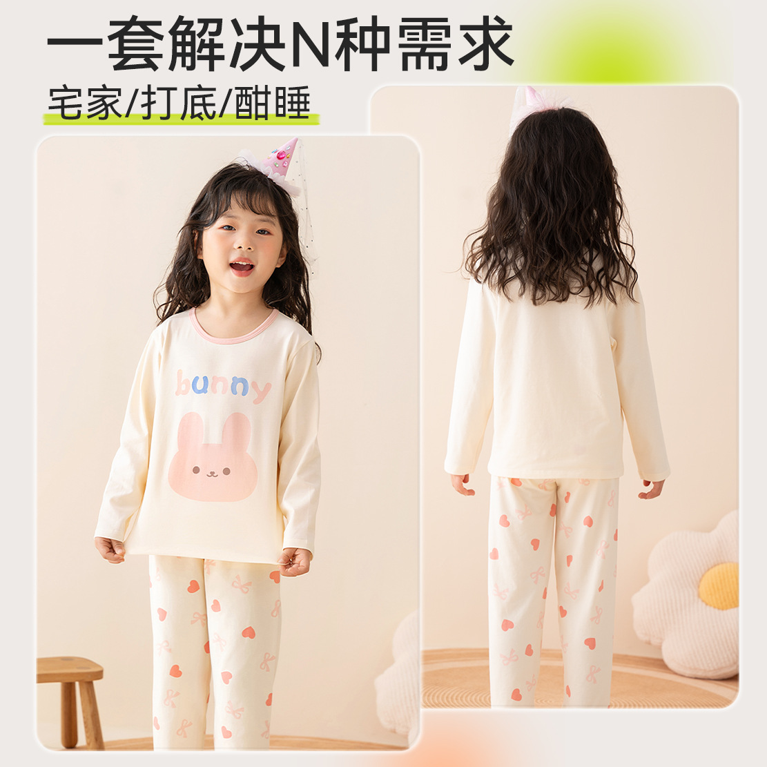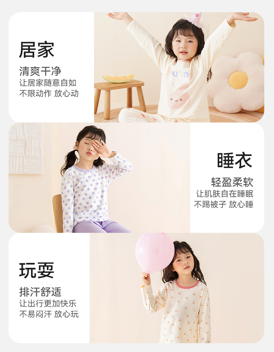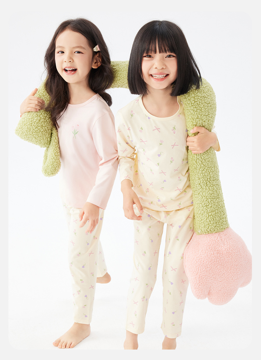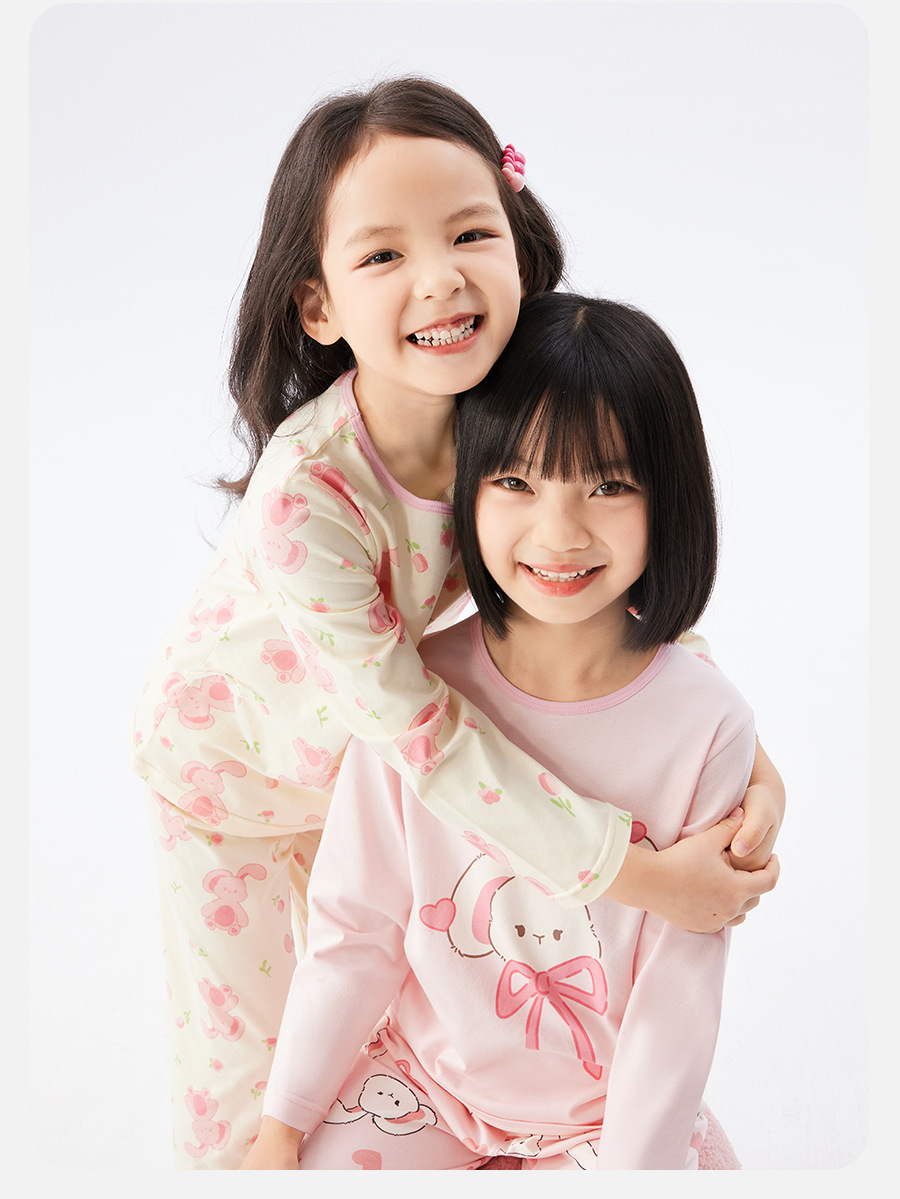 여자 잠옷 봄과 가을 면화 속옷 세트 어린이 2025 새로운 긴팔 가정 의류 중대형 어린이 얇은 가을 옷