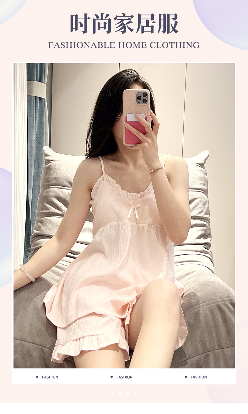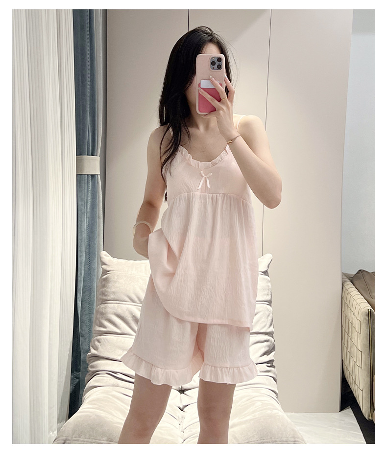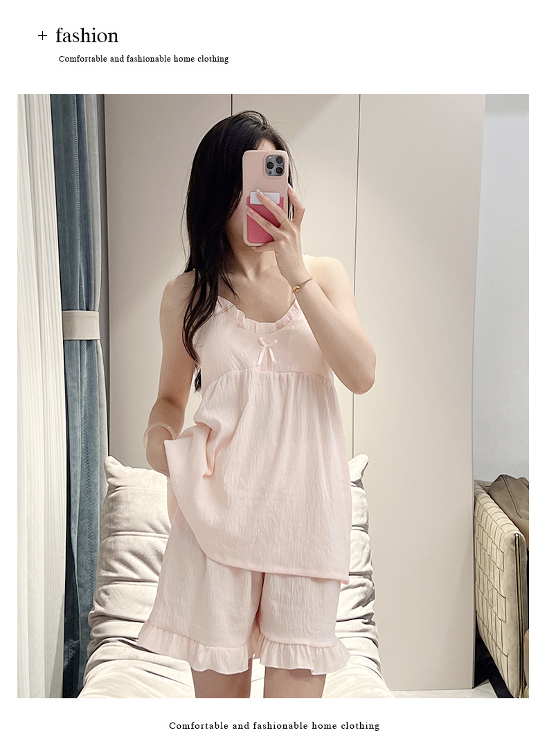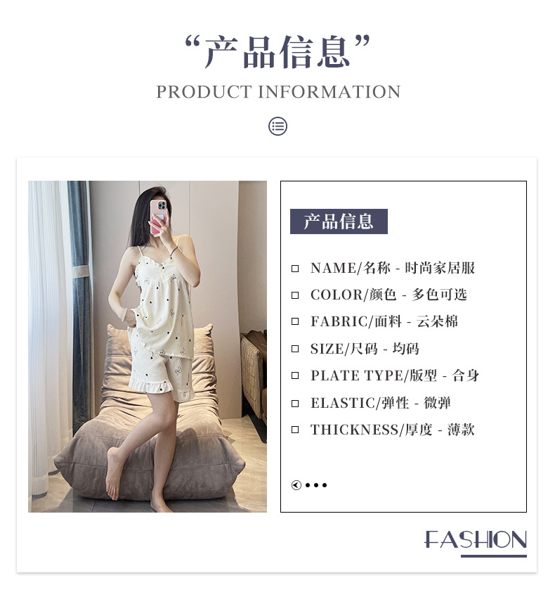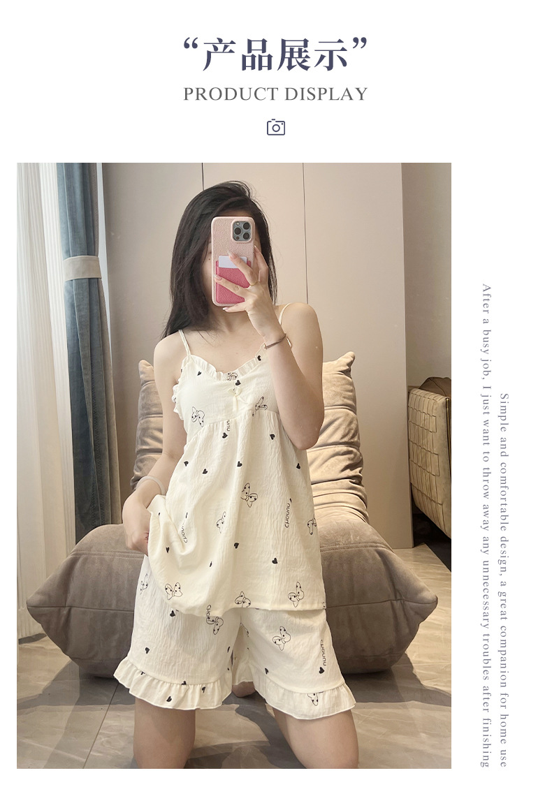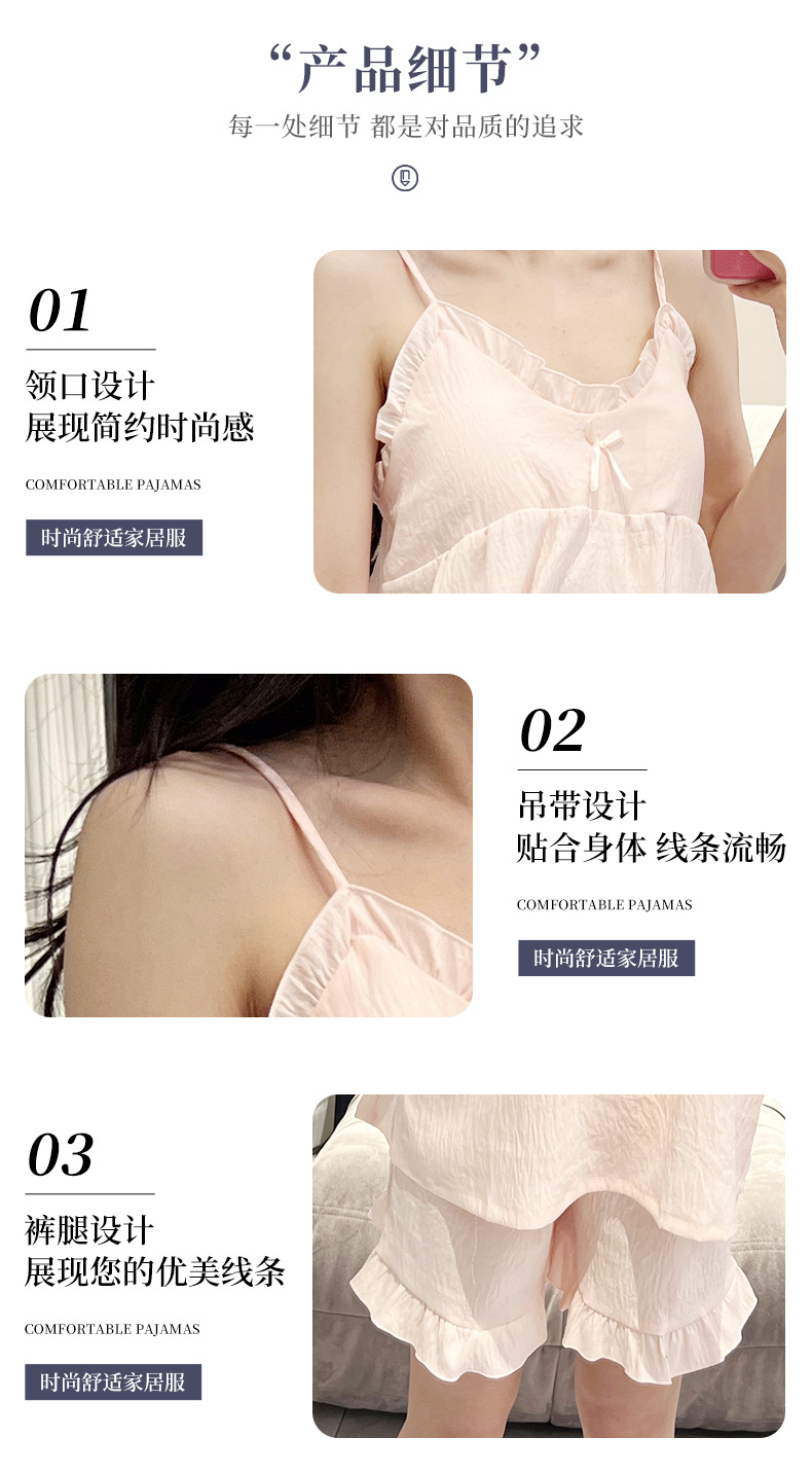 여름 새로운 구름 면 파자마 여성용 슬링 반바지 풀 오버 투피스 세트 가슴 패드 달콤한 캐주얼 홈 의류