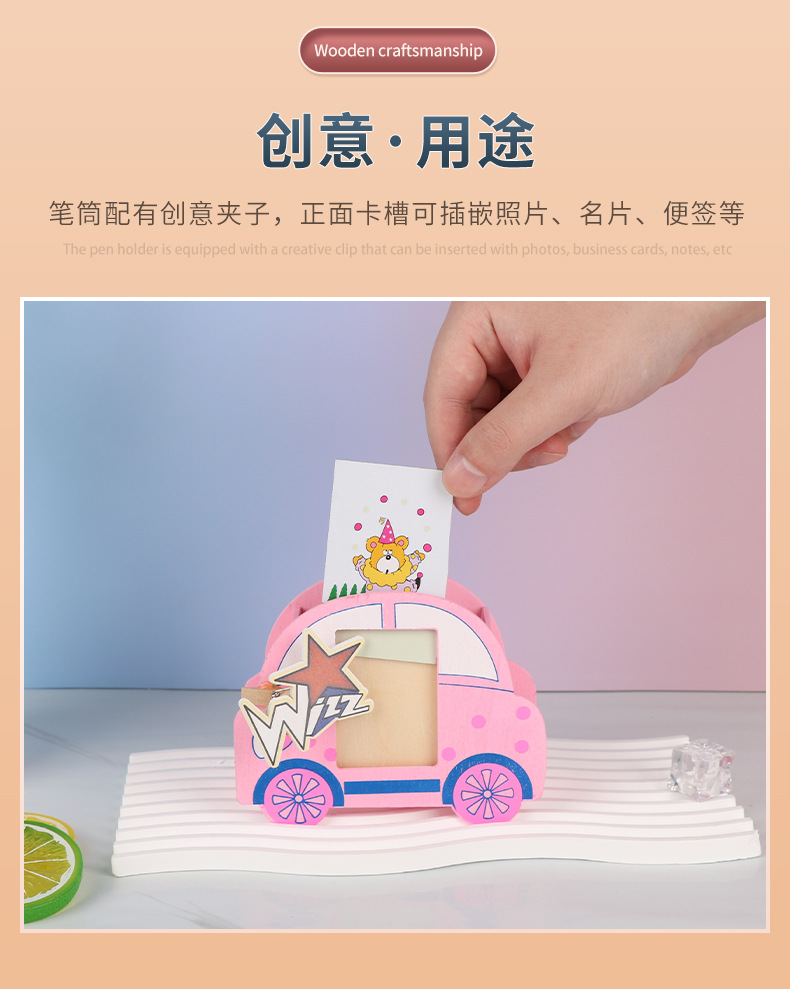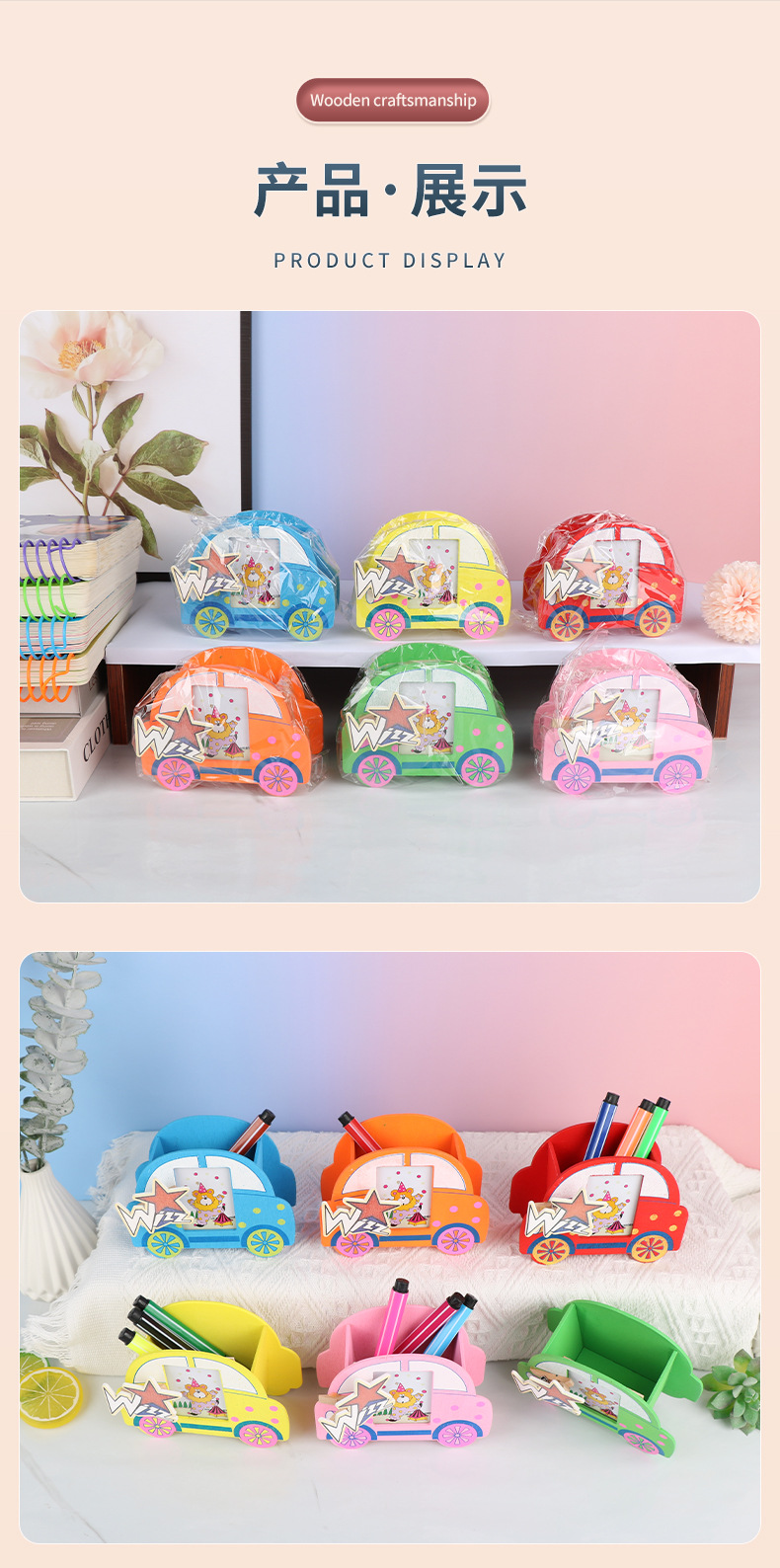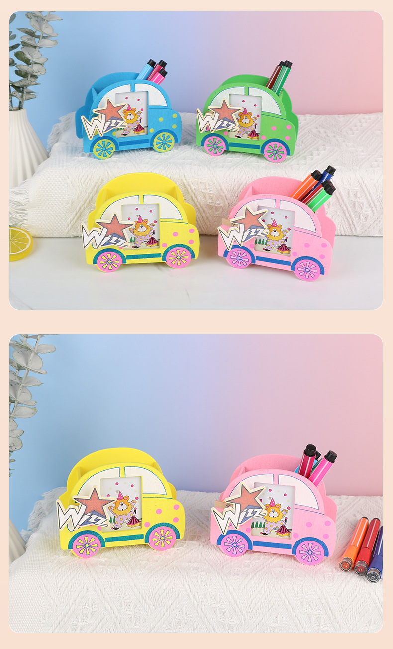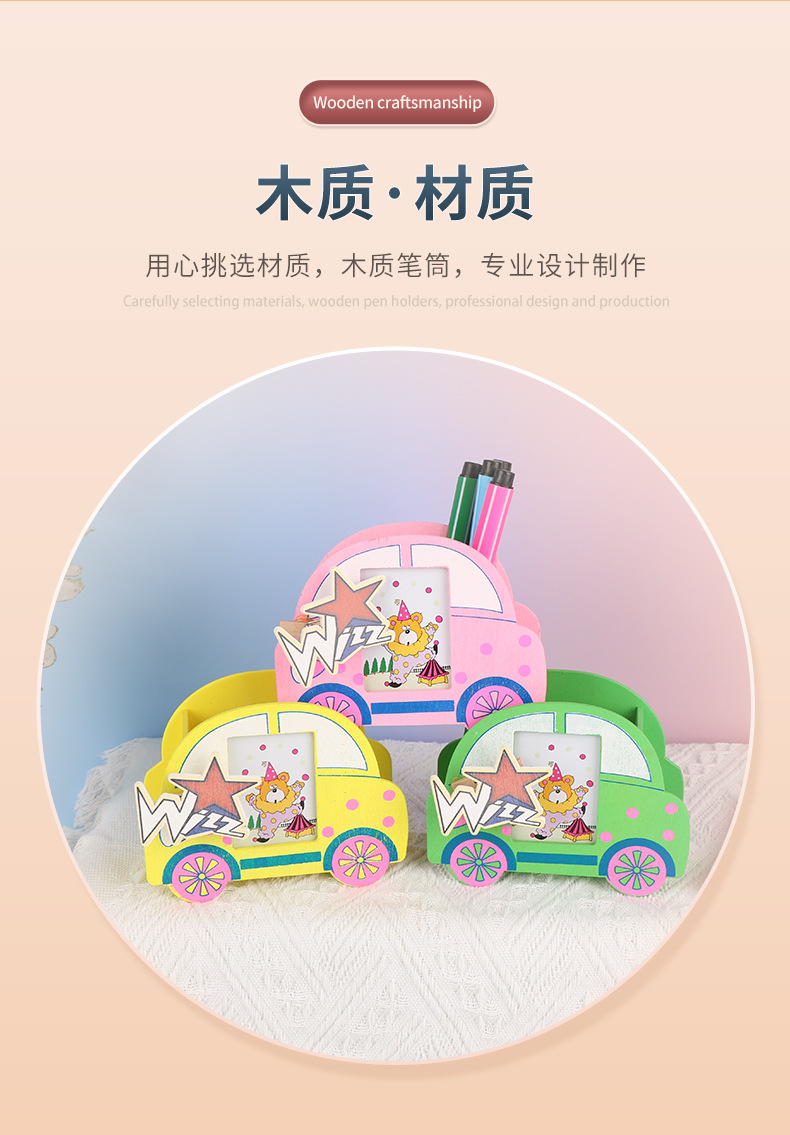 창조적 인 나무 펜 홀더 사무실 문구 어린이 재미 학습 펜 홀더 wizz 나무 자동차 펜 홀더 공장 도매