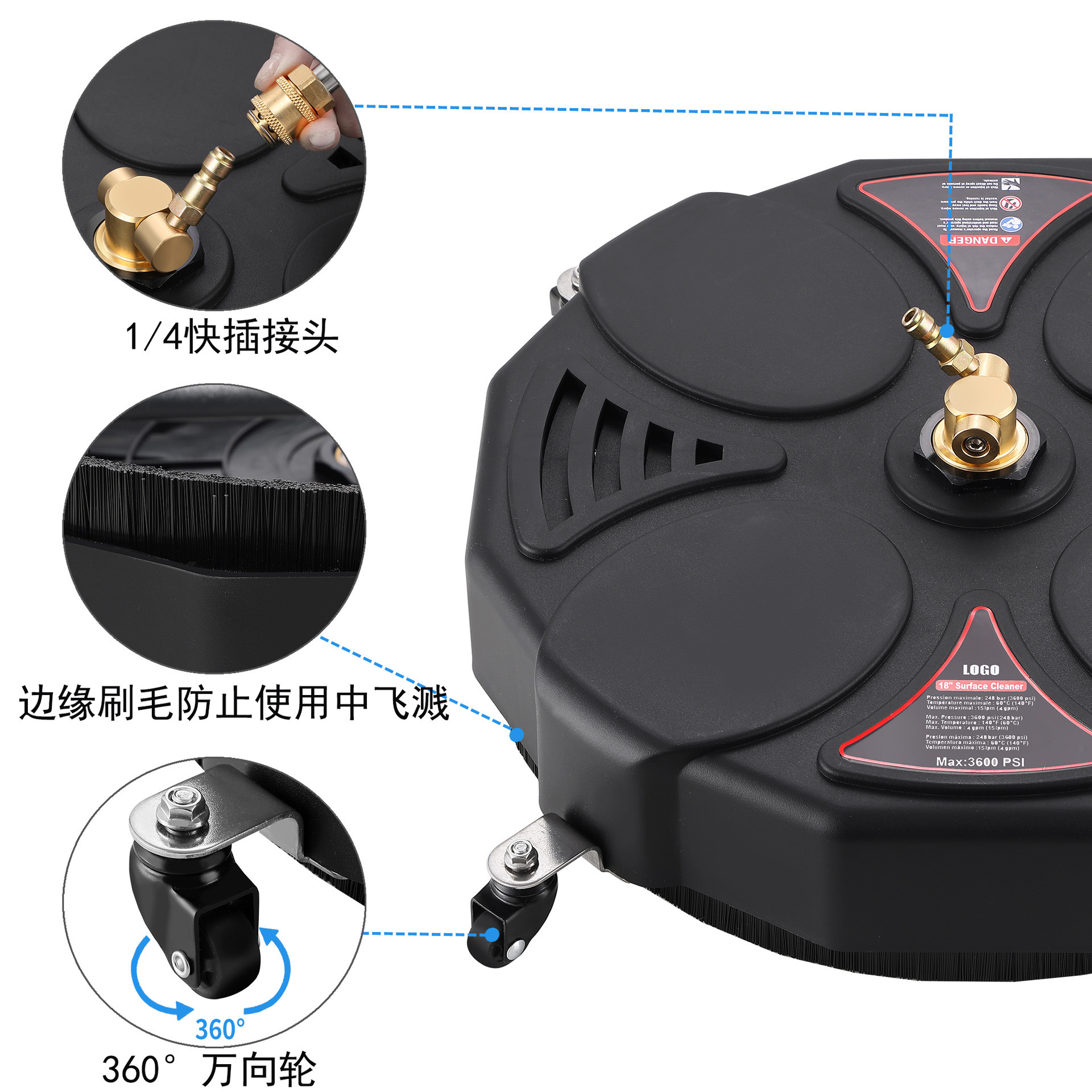도로 청소 바닥 팬 13 인치 안뜰 도로 청소 기계 16 인치 이중 노즐 18 인치 1/4 빠른 플러그