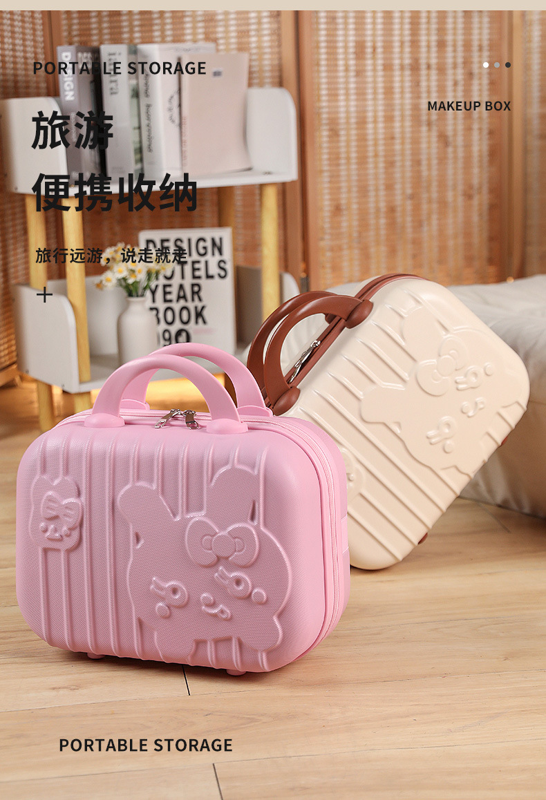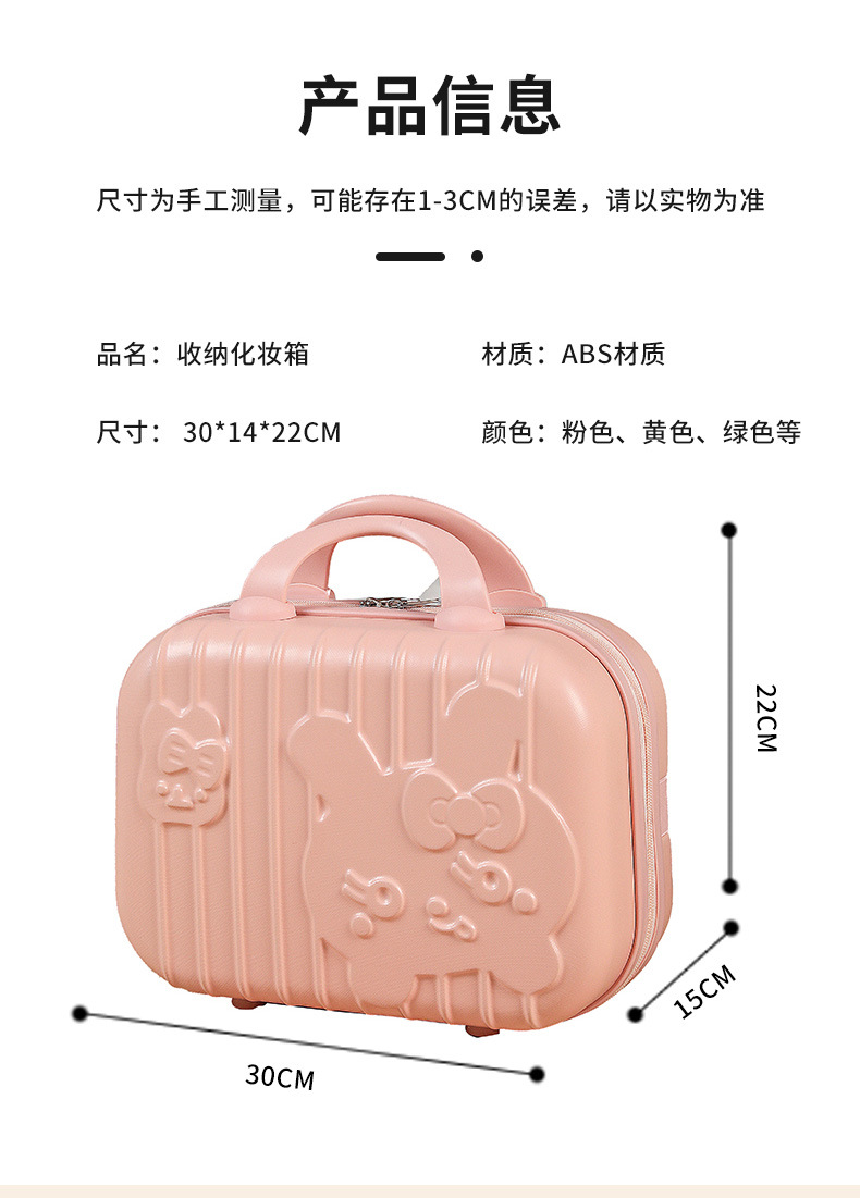 3D 만화 귀여운 토끼 14 인치 가방 사탕 컬러 화장품 가방 휴대용 수하물 빨간 손 선물