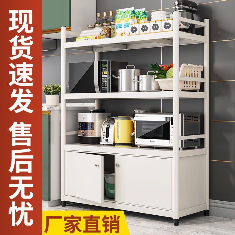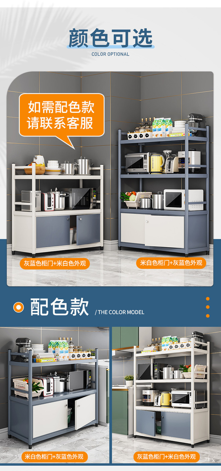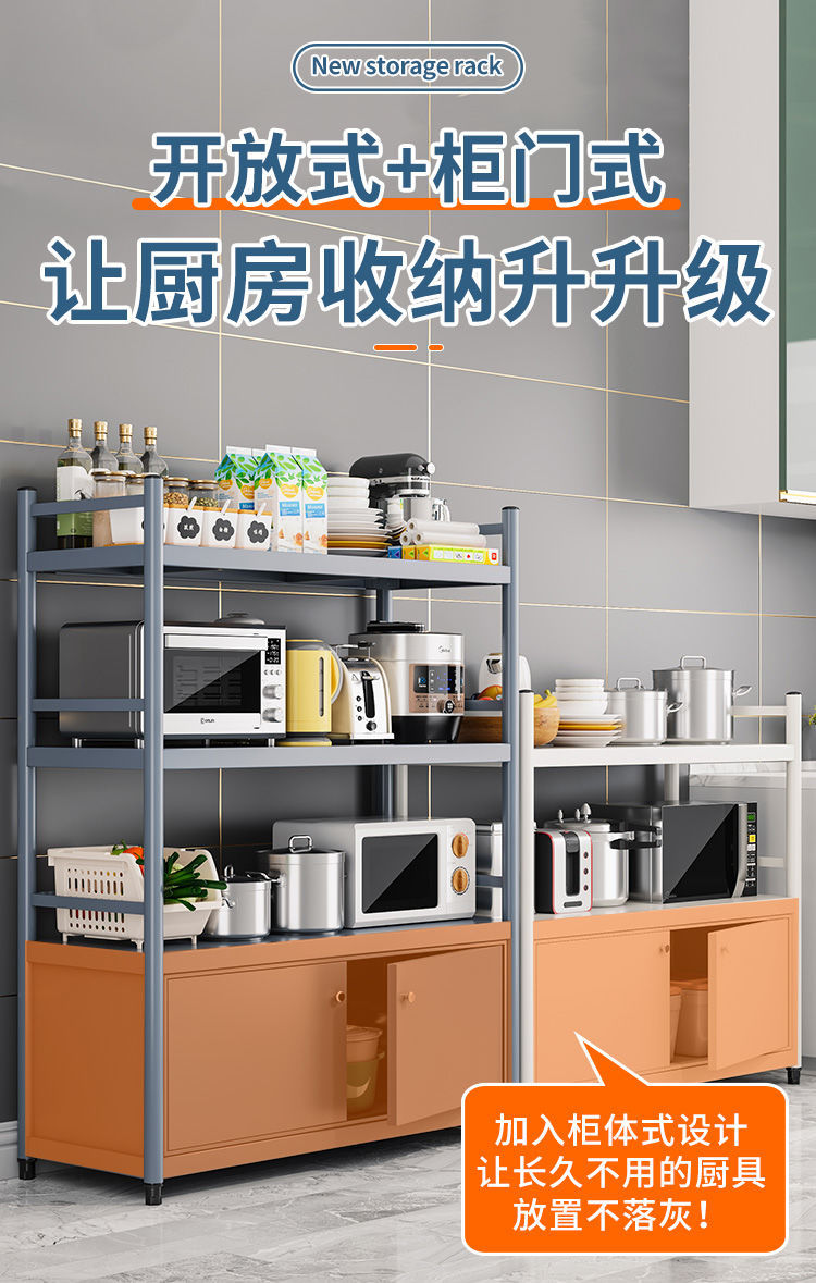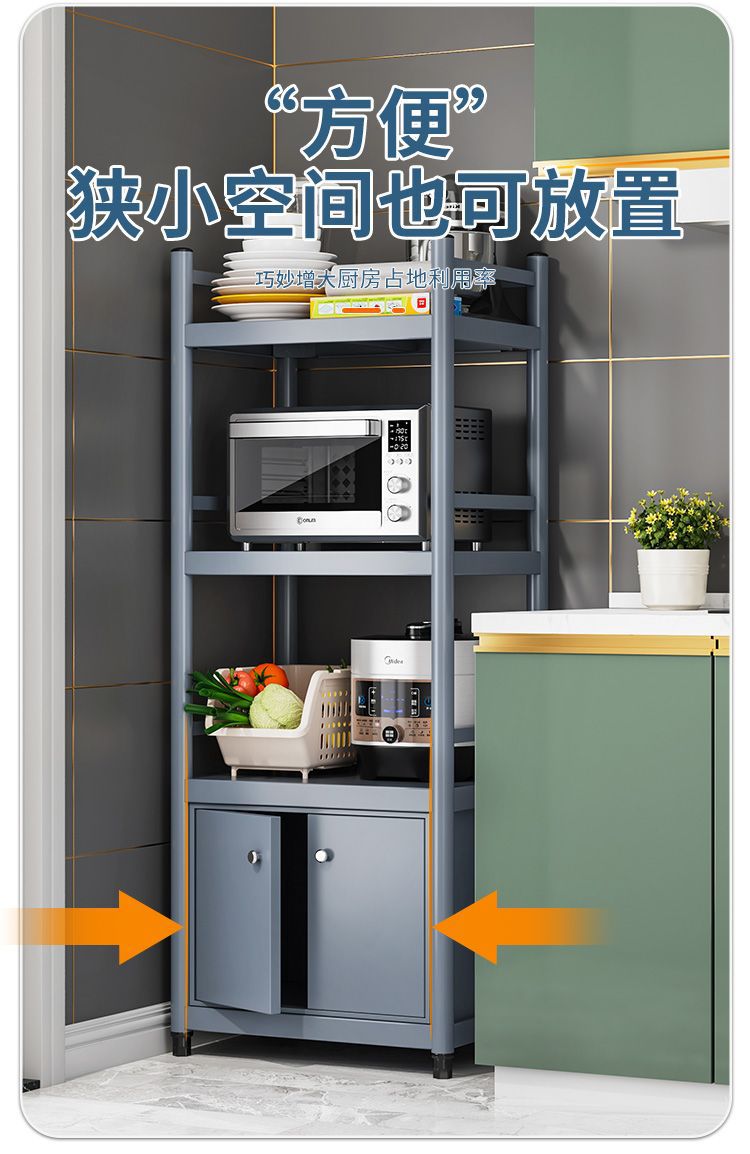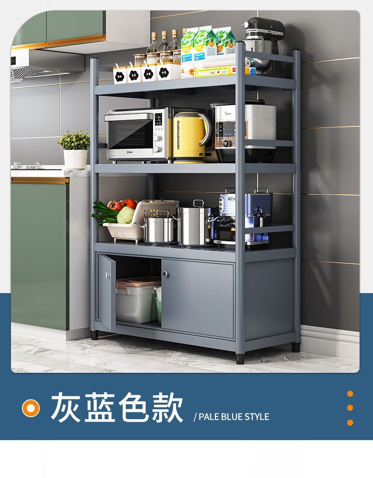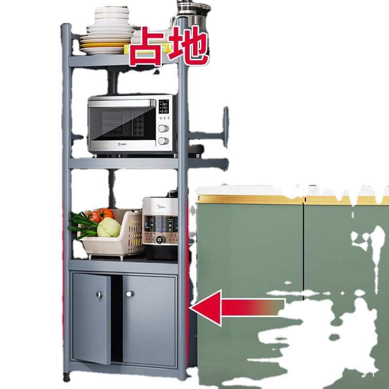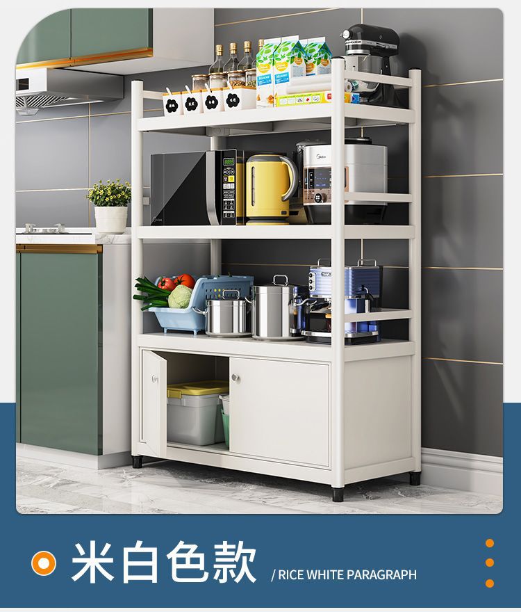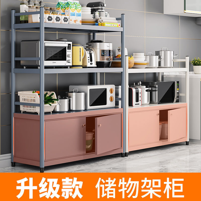두꺼운 주방 스토리지 랙 바닥 형 캐비닛 전자 레인지 스토리지 랙 도어 새 스타일과 다층 스토리지 랙