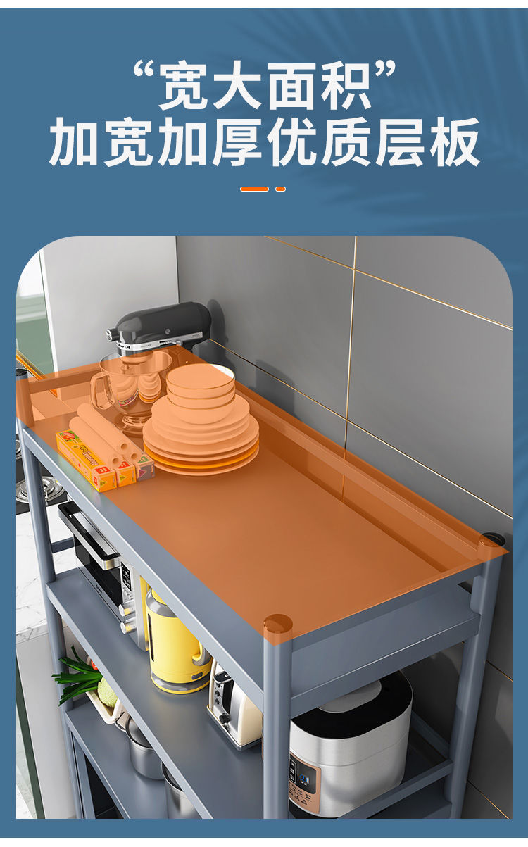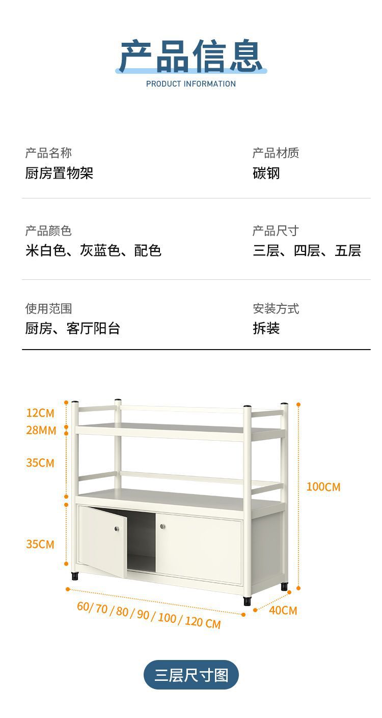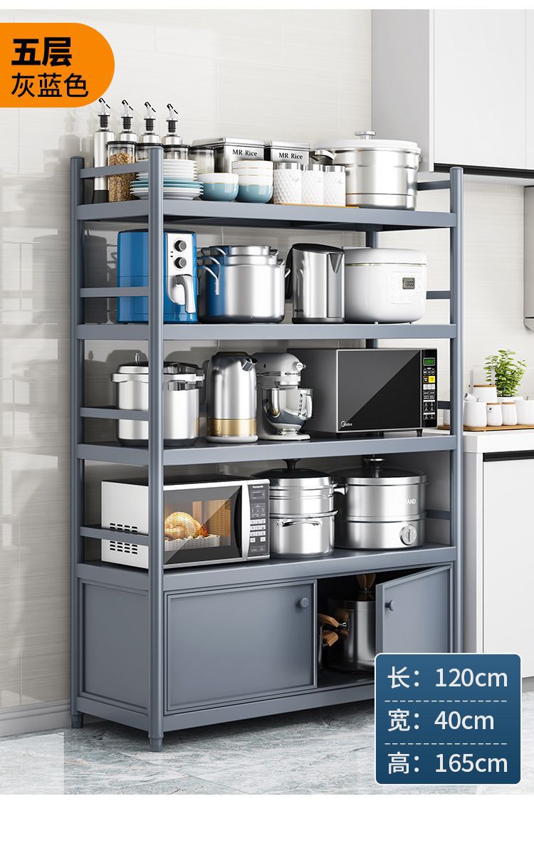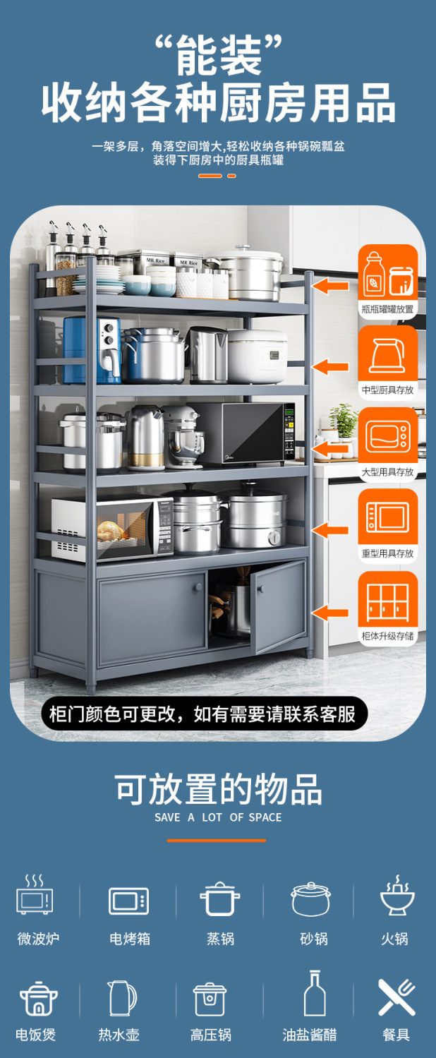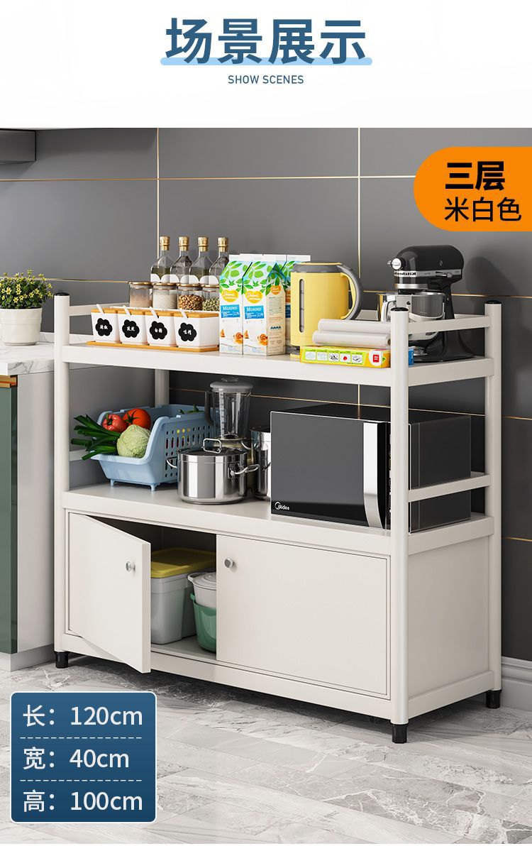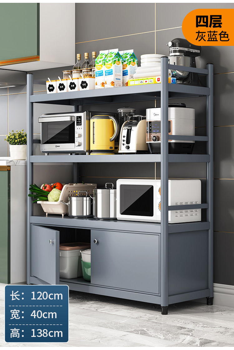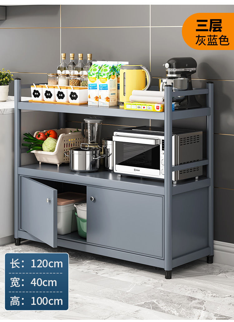 두꺼운 주방 스토리지 랙 바닥 형 캐비닛 전자 레인지 스토리지 랙 도어 새 스타일과 다층 스토리지 랙