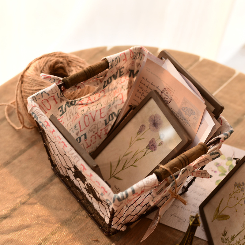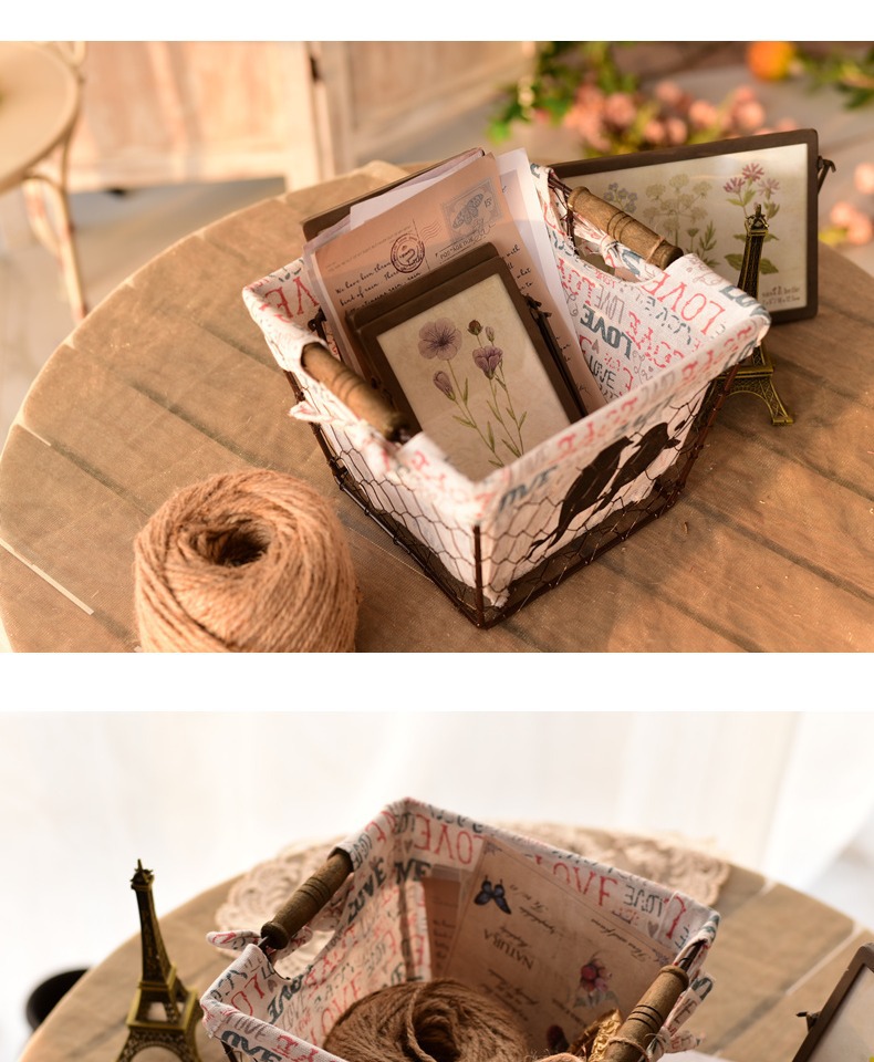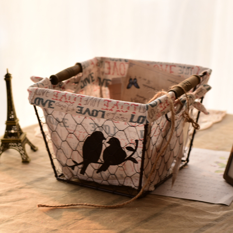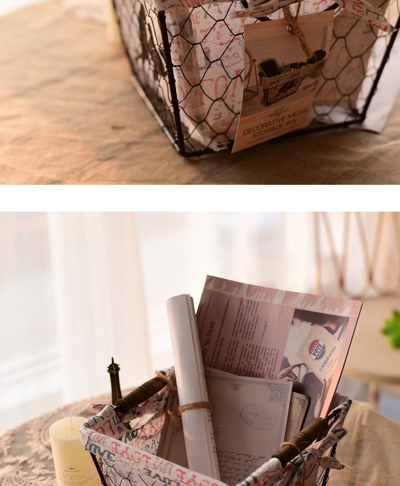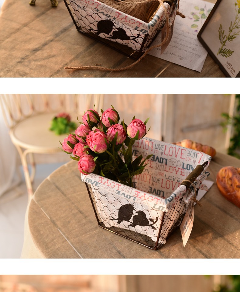 미국 Zakka Grocery 빈티지 아이언 와이어 천 나무 귀 수제 보관 바구니 꽃 냄비 짠 바구니 홈