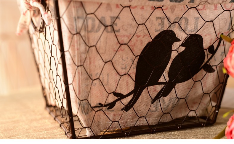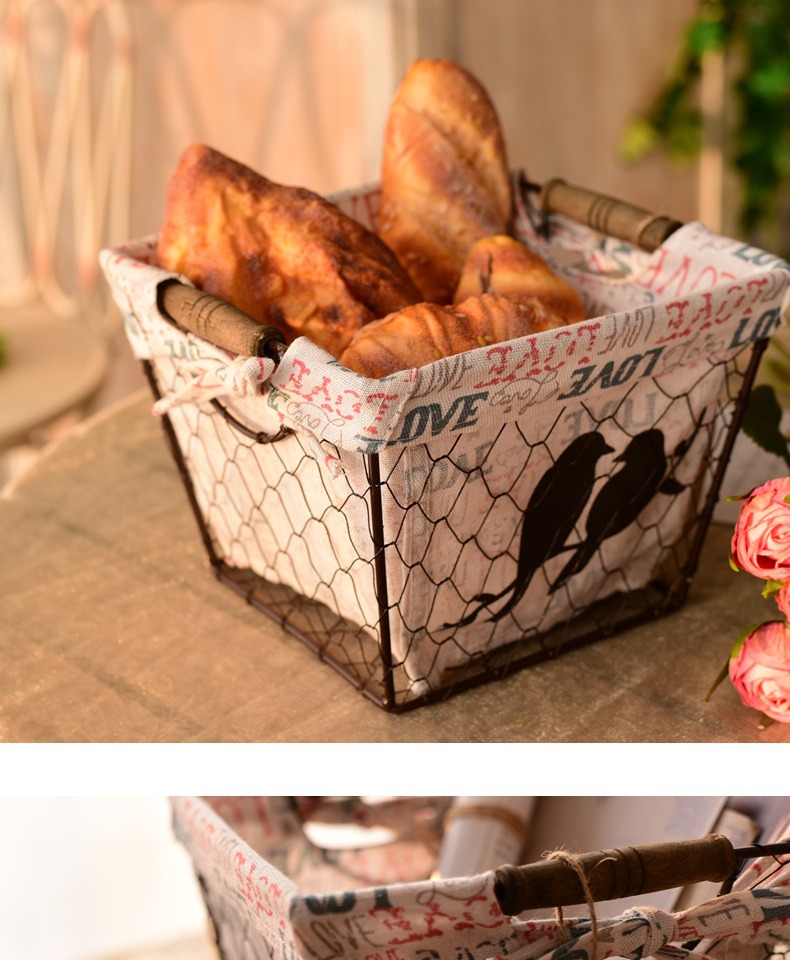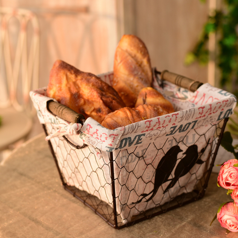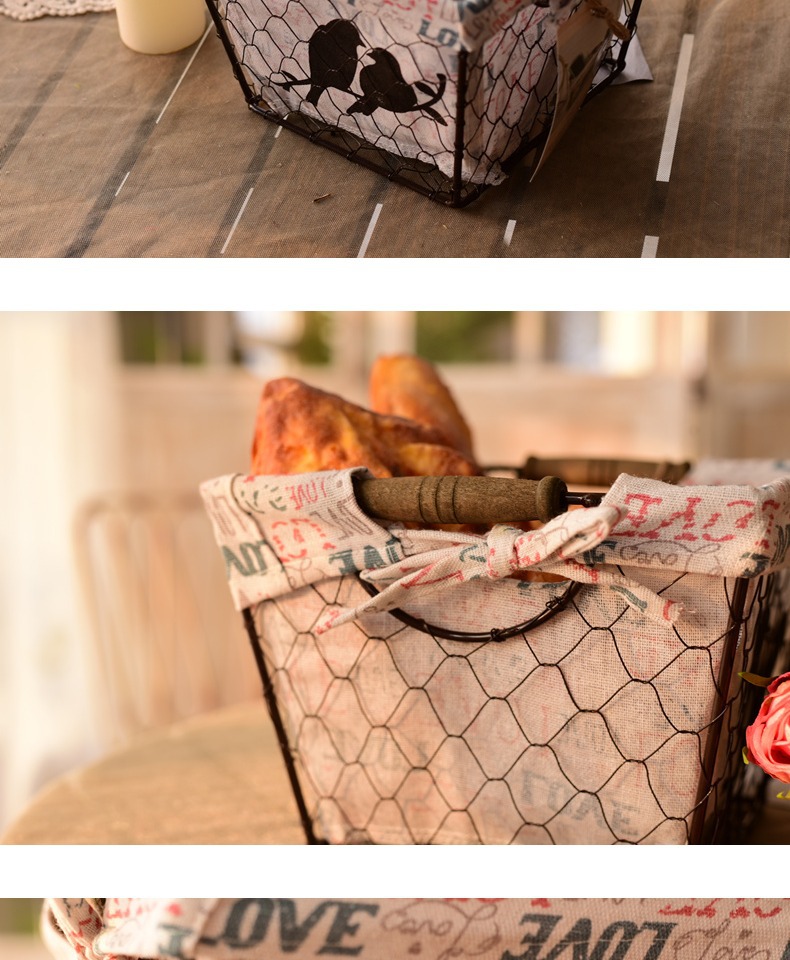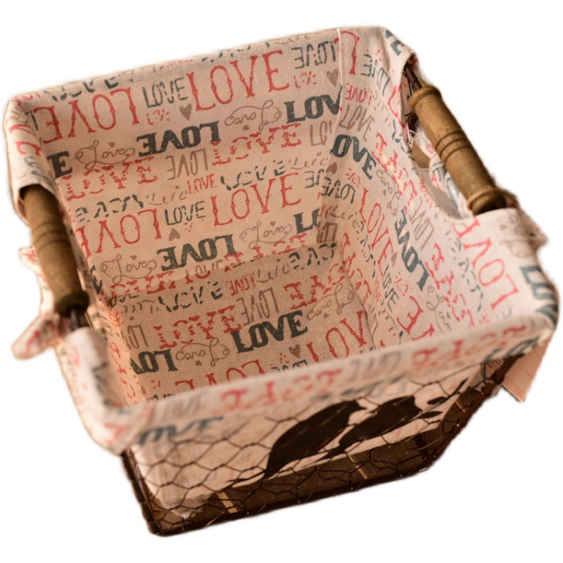 미국 Zakka Grocery 빈티지 아이언 와이어 천 나무 귀 수제 보관 바구니 꽃 냄비 짠 바구니 홈
