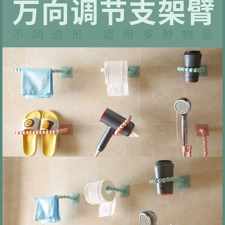 무타공 다용도 스탠드 암, 욕실 샤워기 고정기, 자유롭게 조절 가능한 수납 선반, 수건 걸이