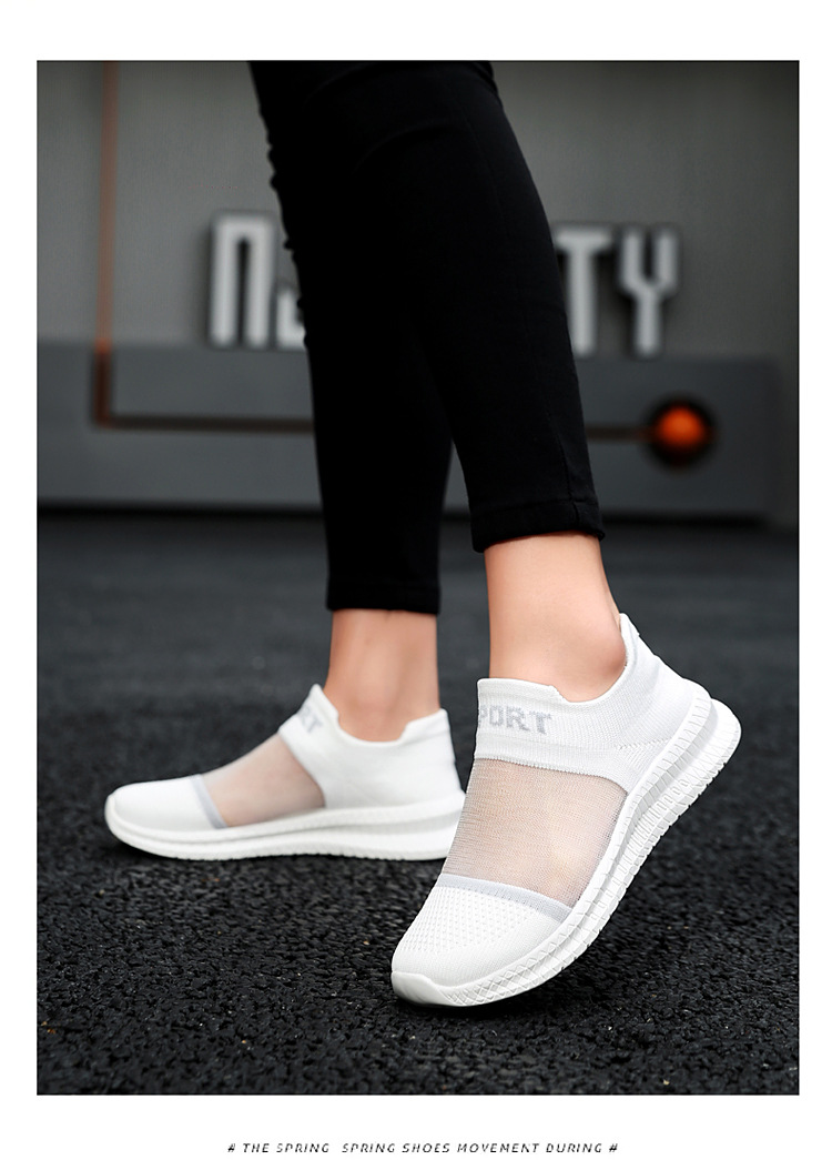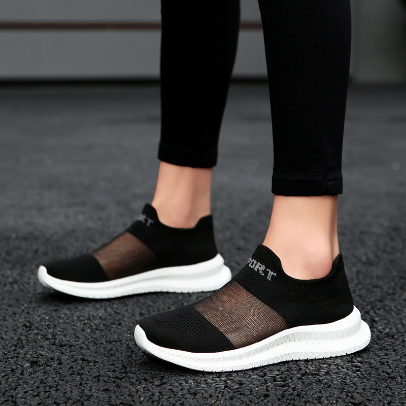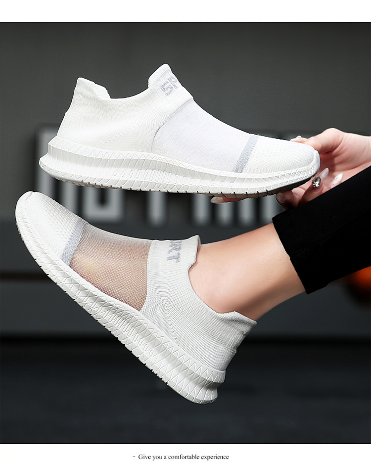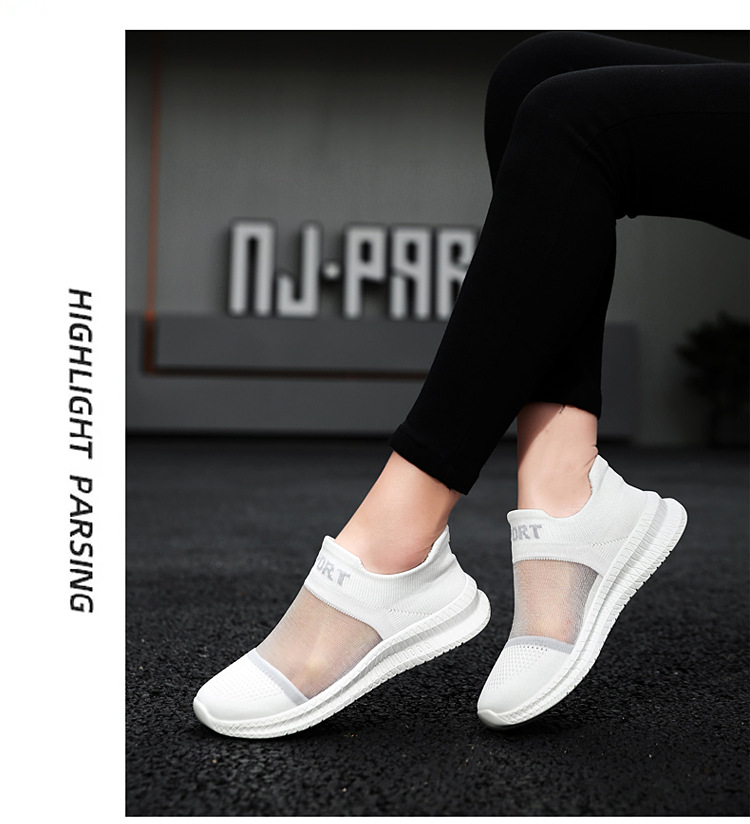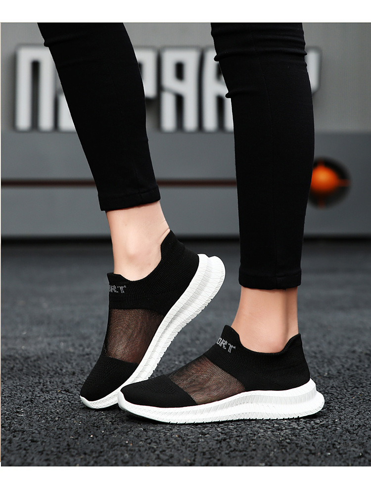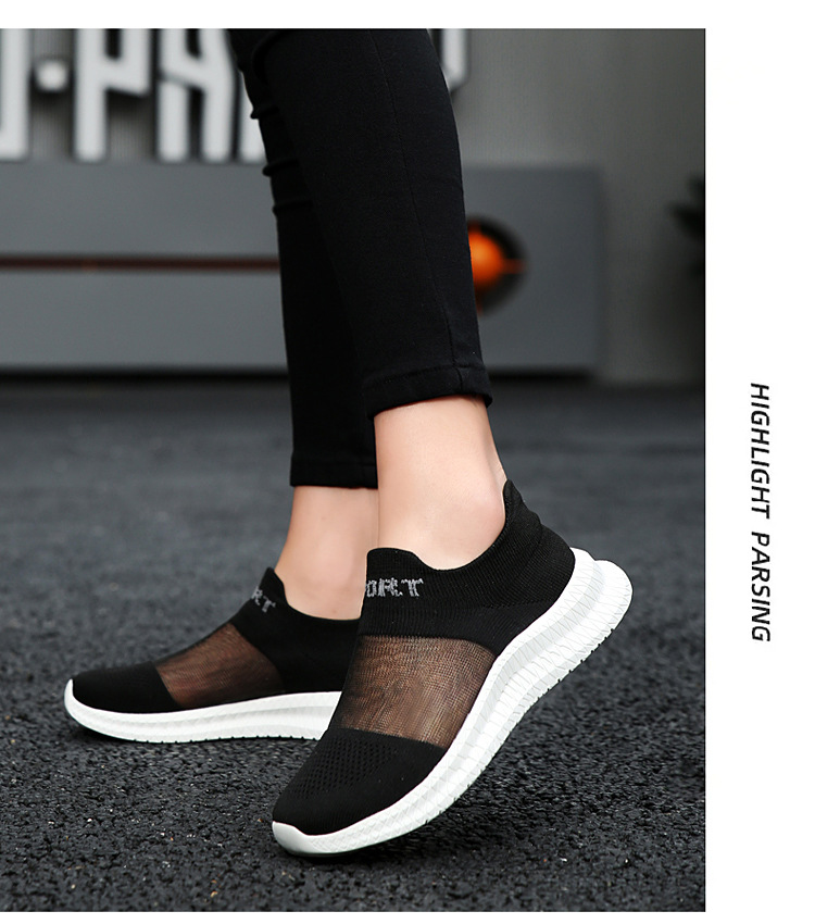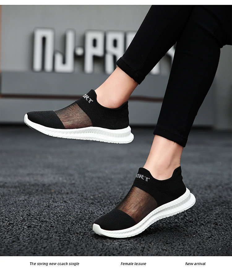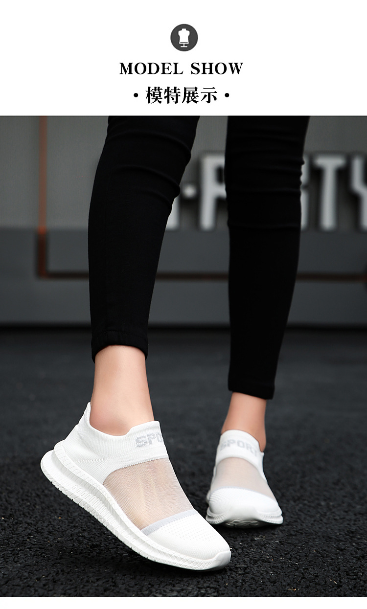 국경 간 플러스 사이즈 슬립 온 여성 신발 여름 플라이 짠 통기성 싱글 레이어 신발 오래된 메쉬 표면 운송을위한 경량 소프트 밑창 신발