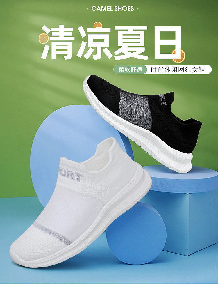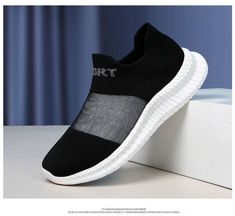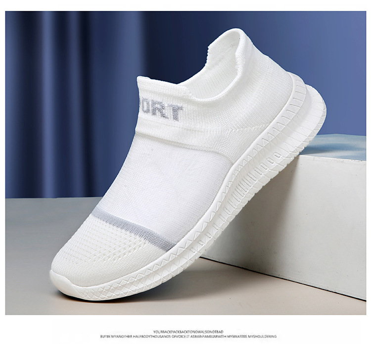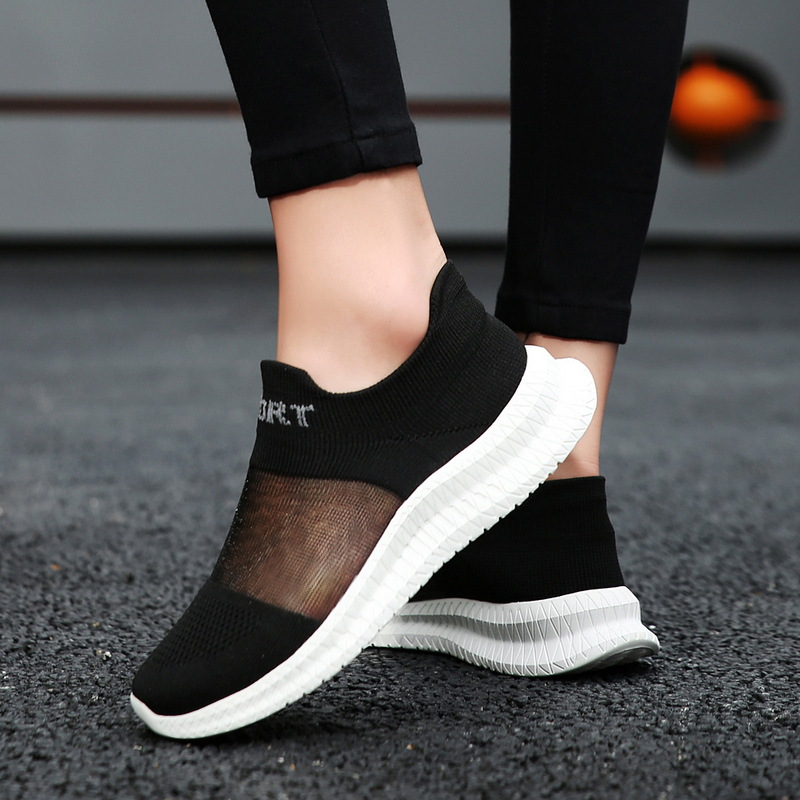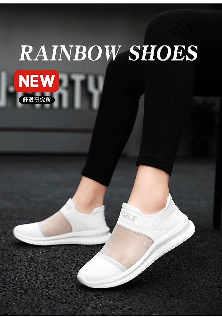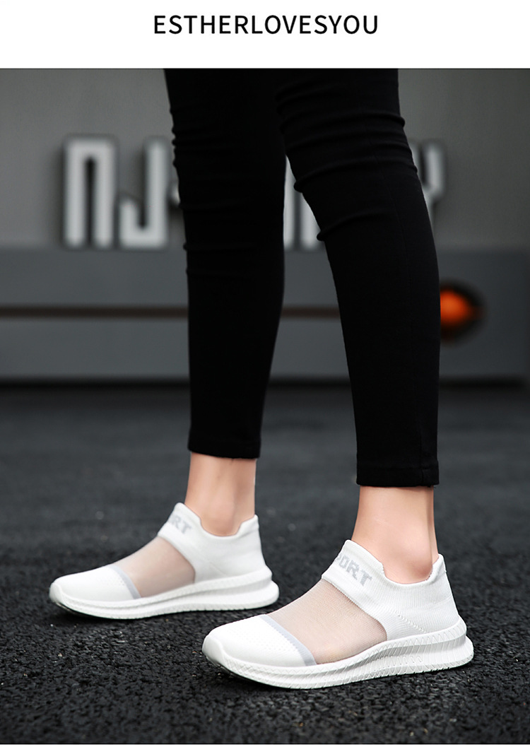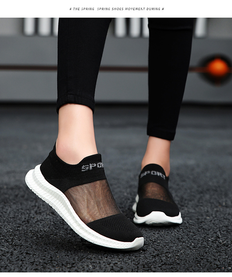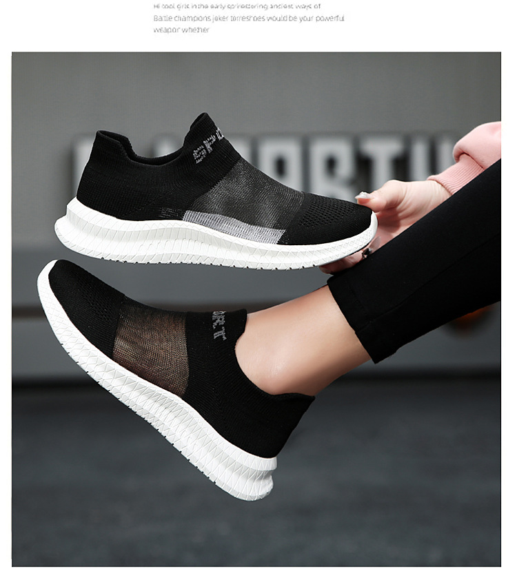 국경 간 플러스 사이즈 슬립 온 여성 신발 여름 플라이 짠 통기성 싱글 레이어 신발 오래된 메쉬 표면 운송을위한 경량 소프트 밑창 신발