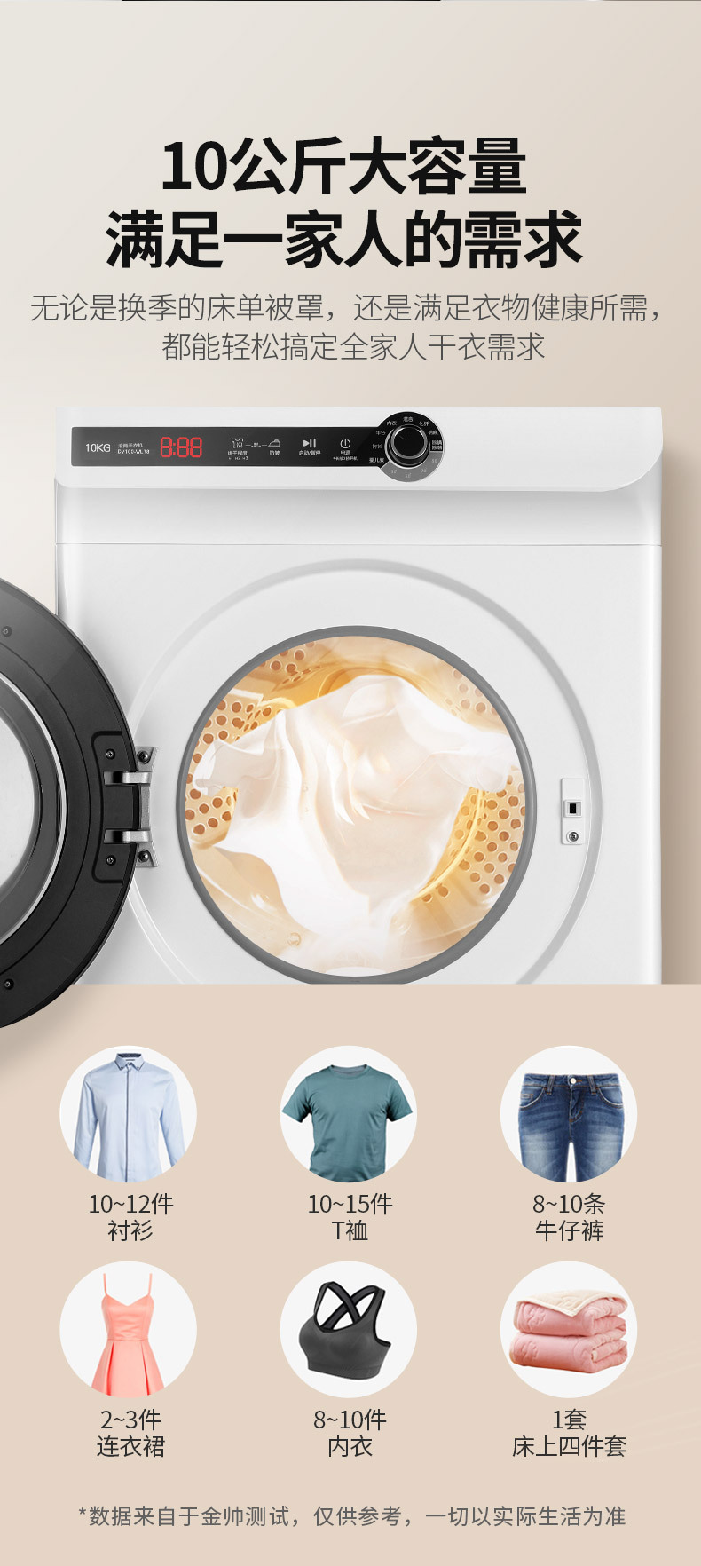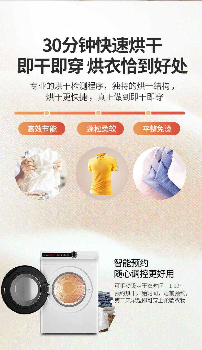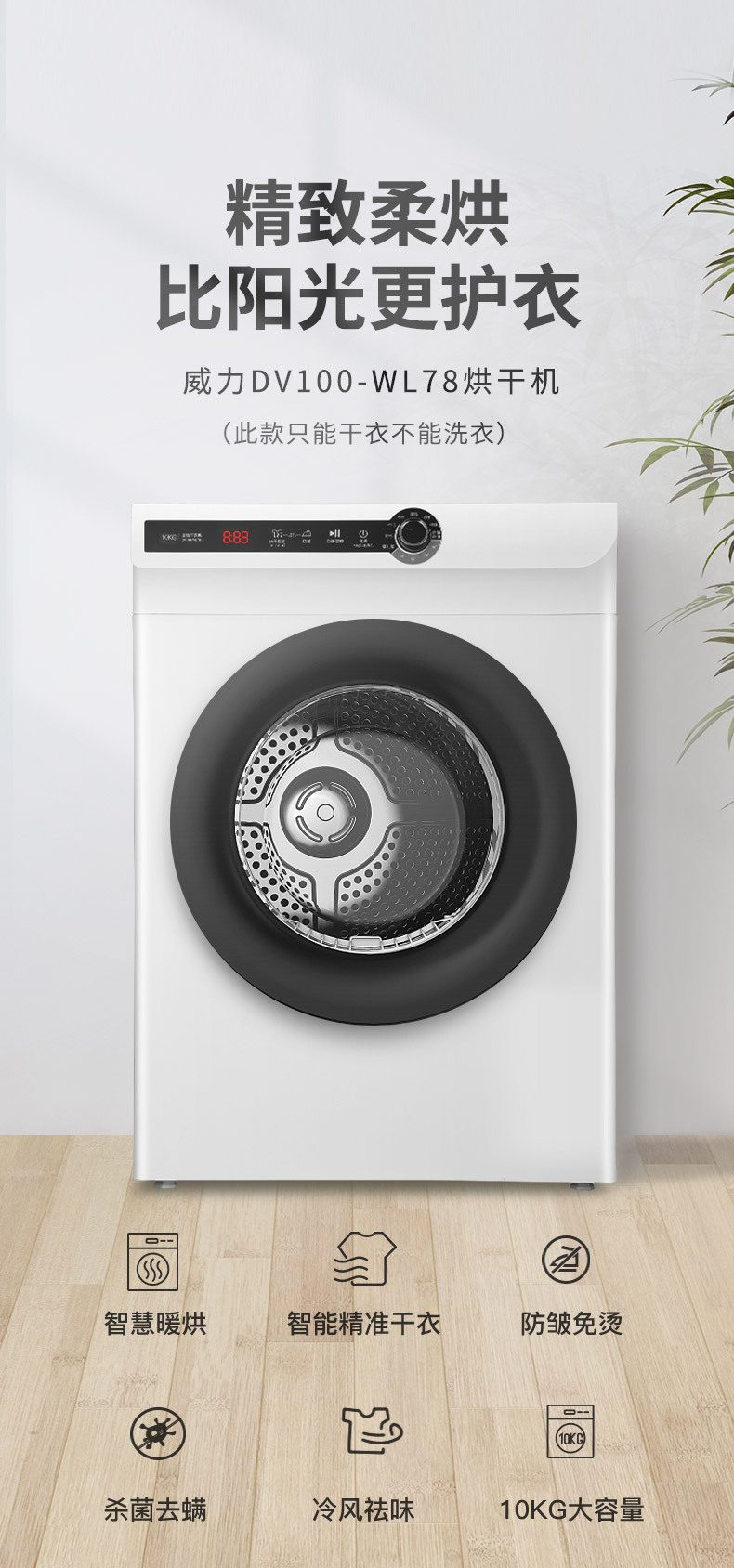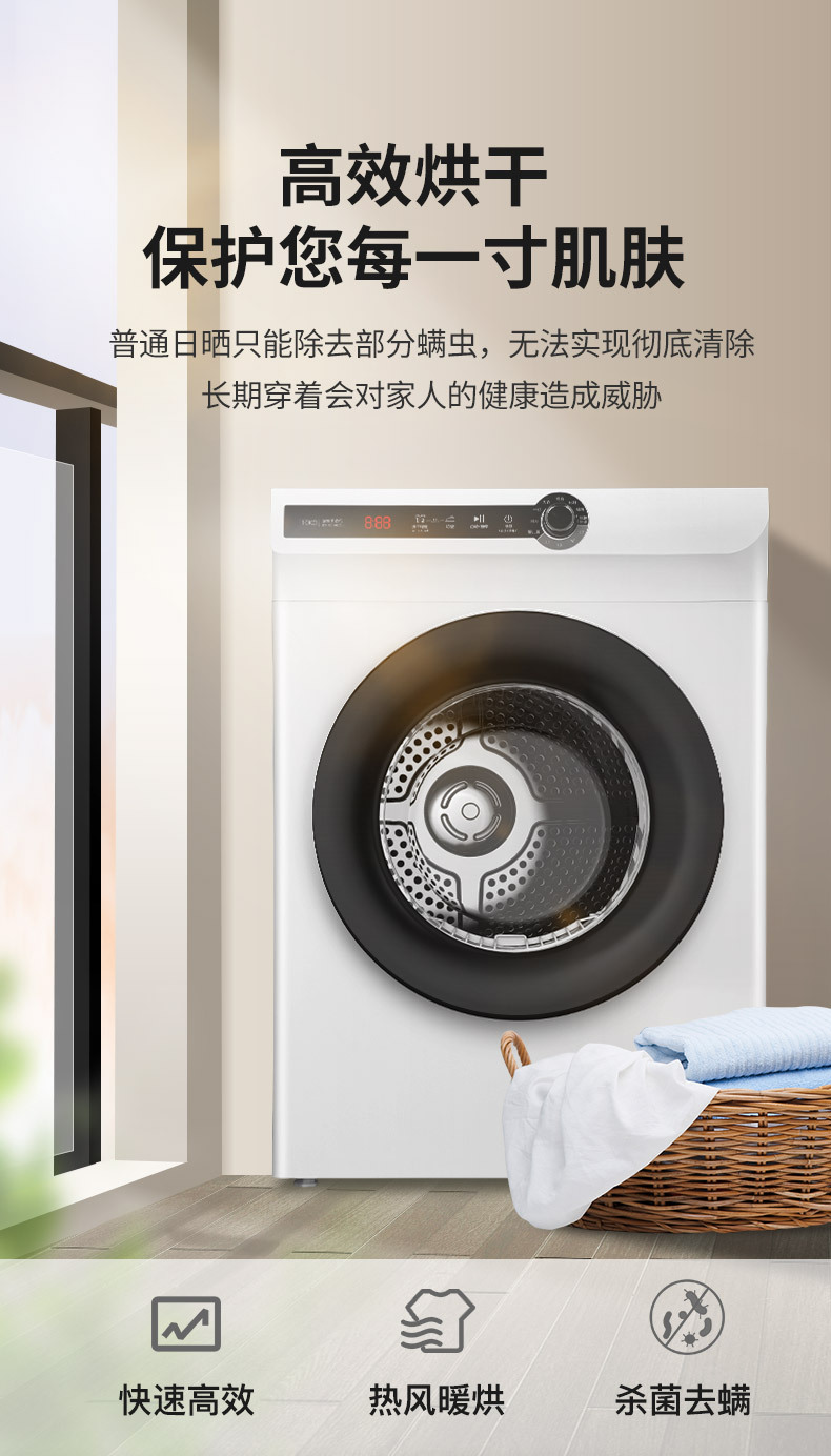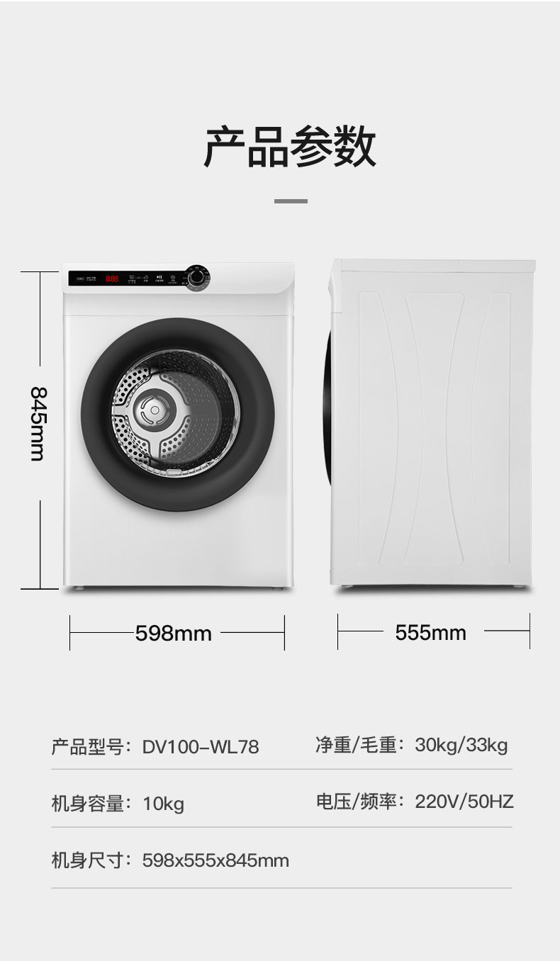 강력한 10kg 완전 자동 드럼 건조기 가정용 빠른 건조 30 분 진드기 제거 DV100-WL78