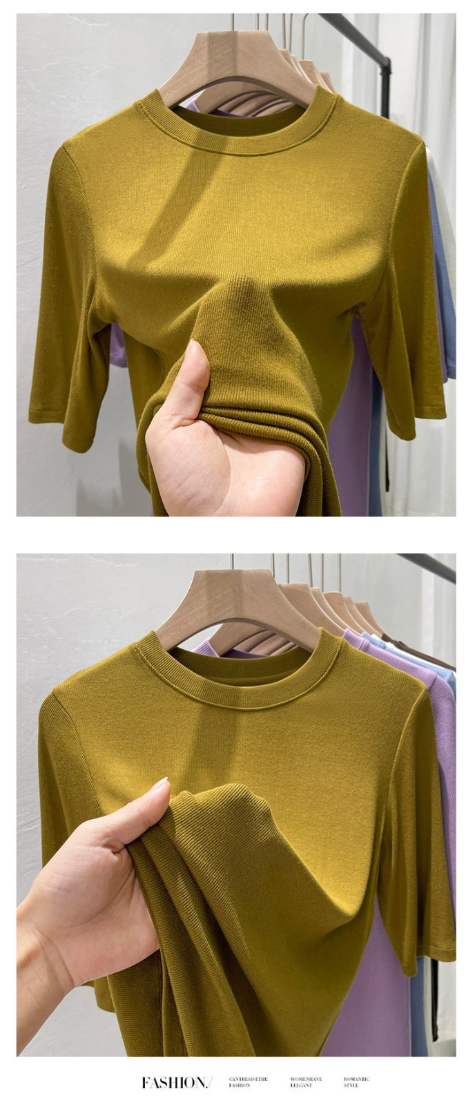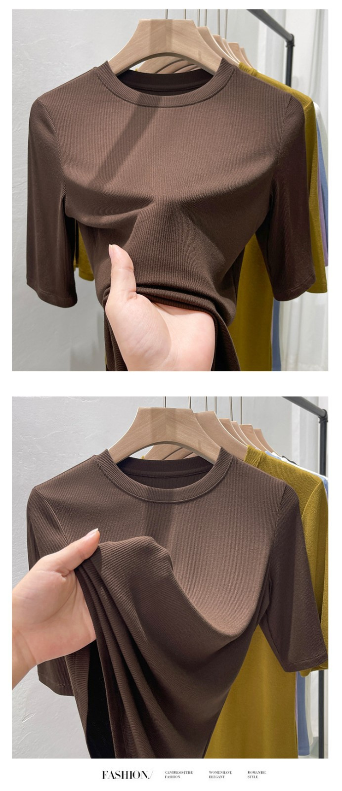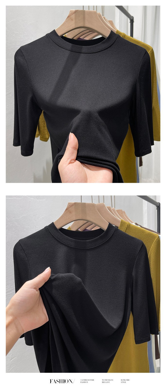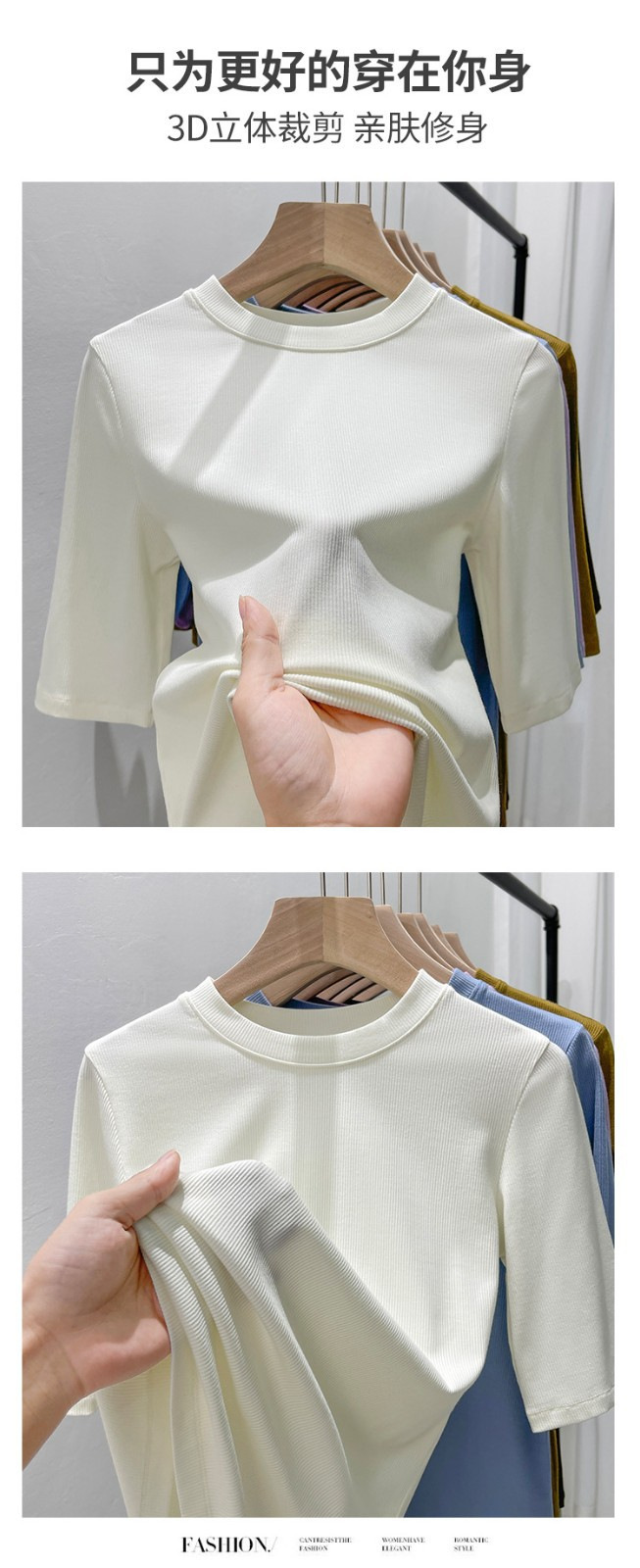 여름 여성 아이스 실크 스레드 패션 슬림 핏 솔리드 컬러 반소매 베이스 셔츠 낮은 라운드 넥 올 매치 탑