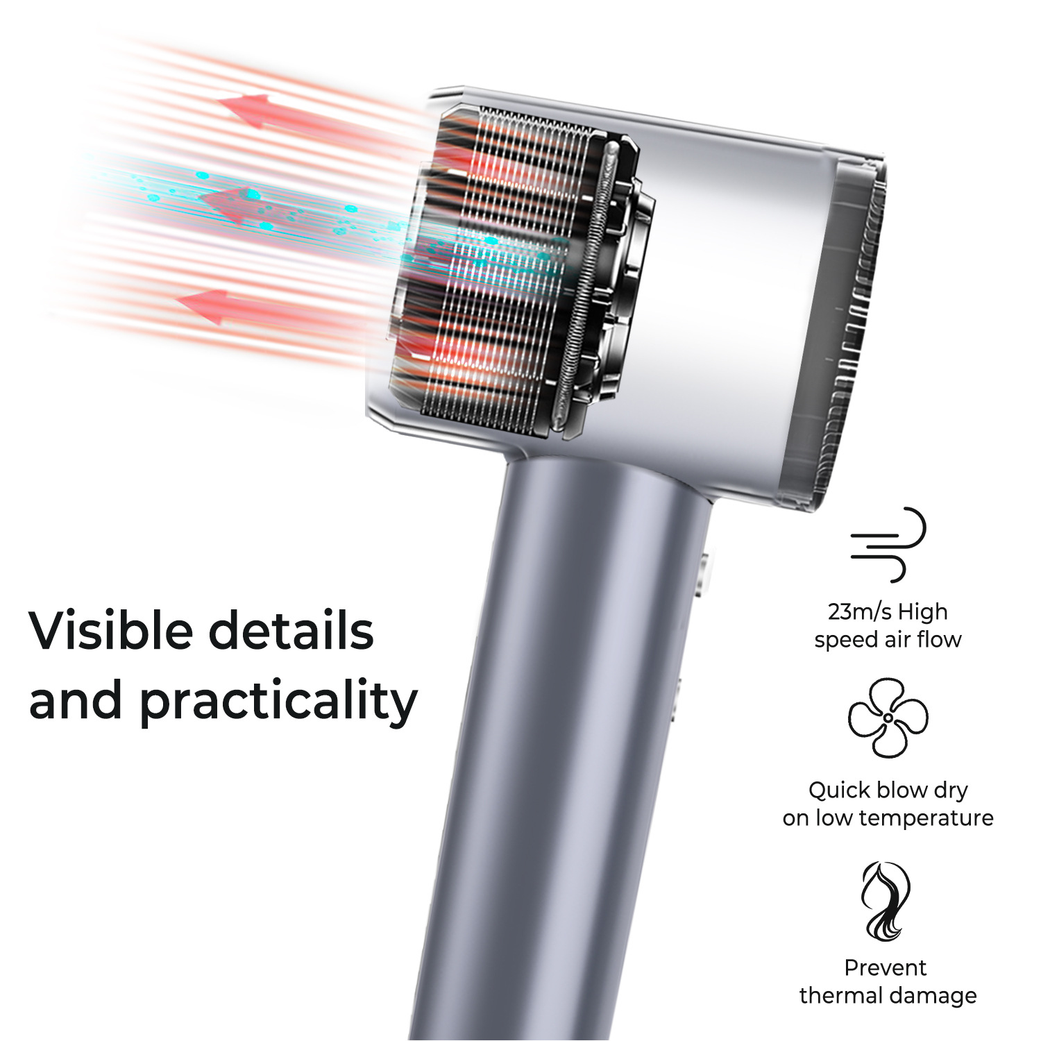 629-1 고속 헤어드라이어 - 영국 표준 - 실버 그레이(중국에서는 사용할 수 없음)