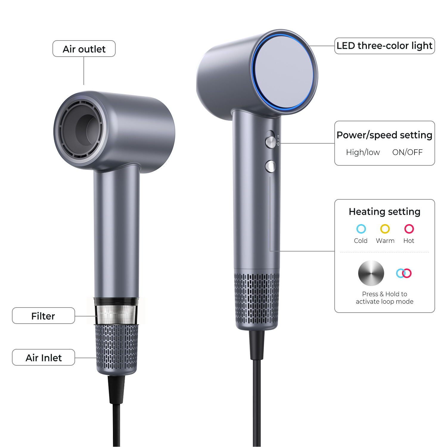 629-1 고속 헤어드라이어 - 미국 표준 - 실버 그레이(중국에서는 사용할 수 없음)