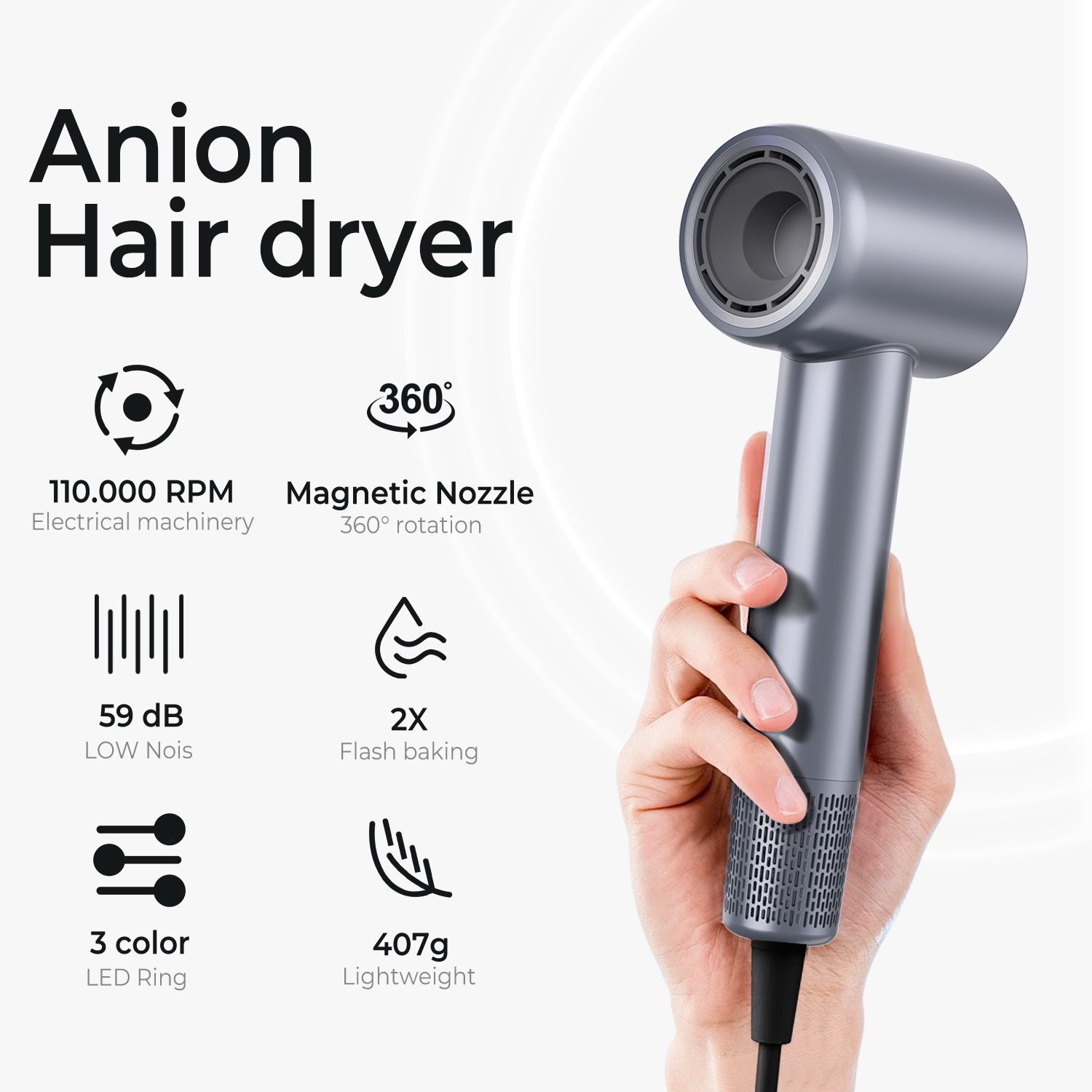 629-1 고속 헤어드라이어 - 유럽 규정 - 실버 그레이(국내 테스트 가능)