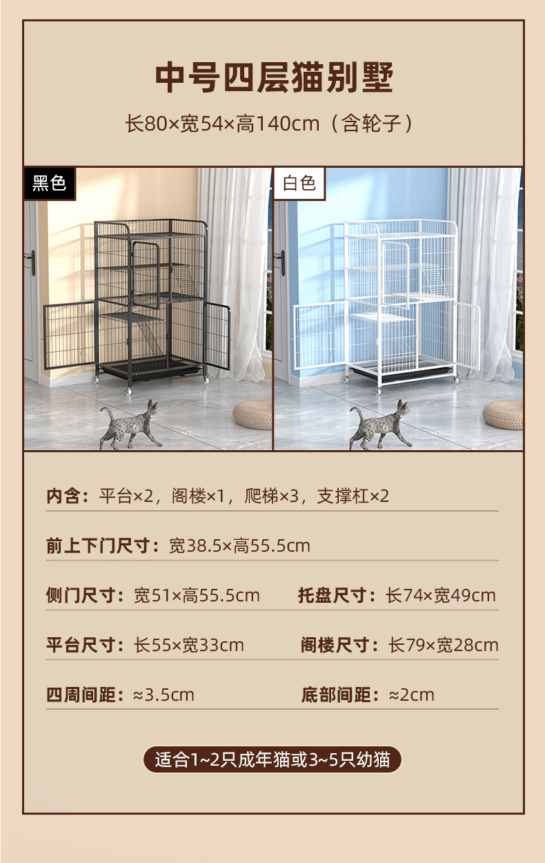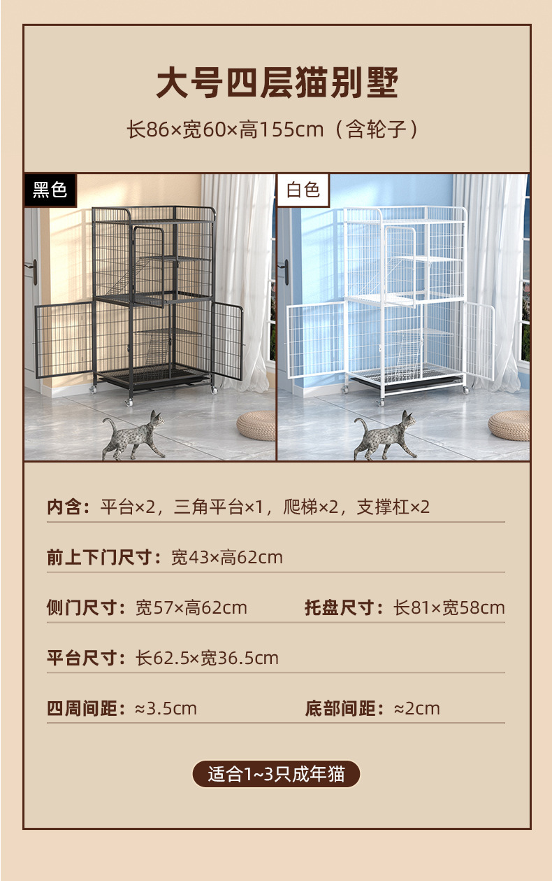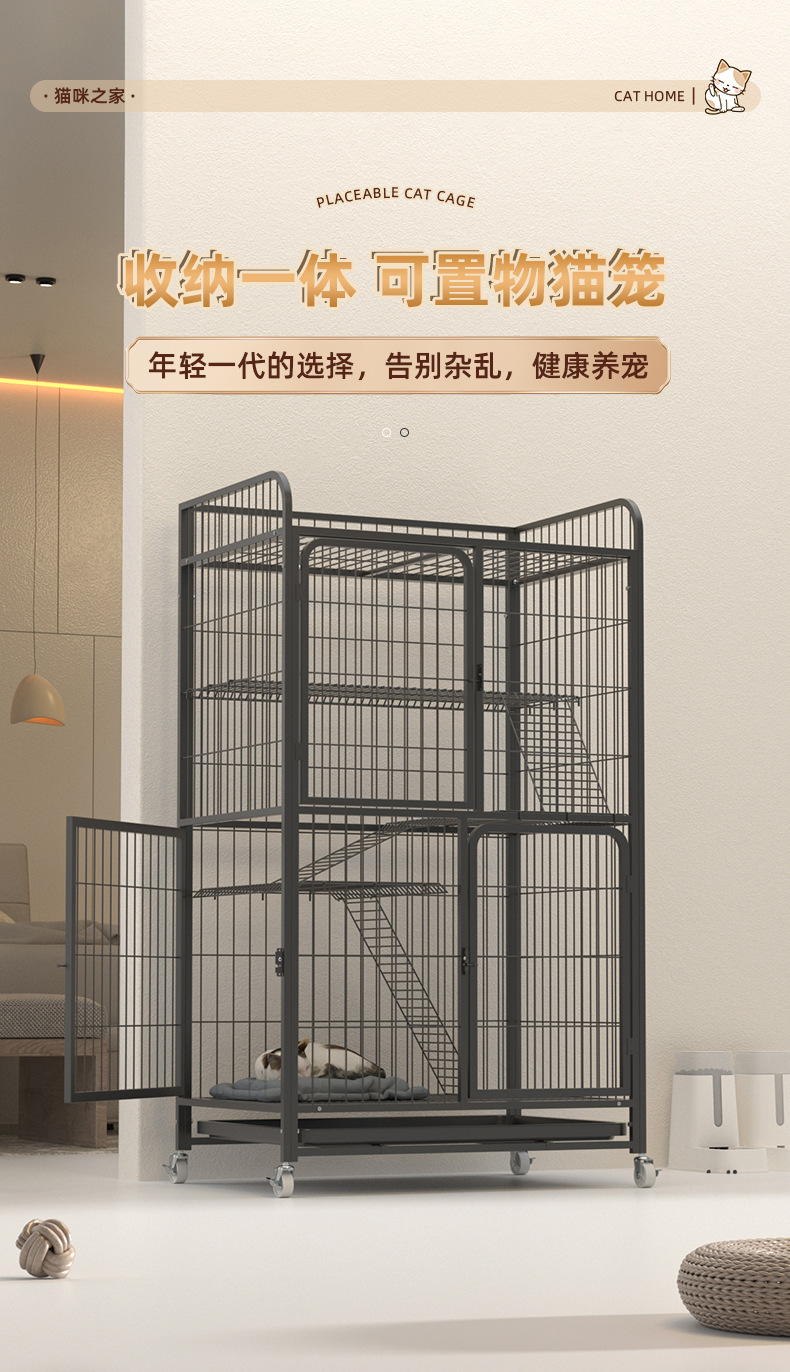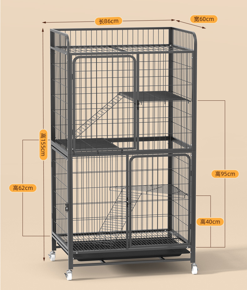 4 층 고양이 케이지-블랙 선반 1.55 m