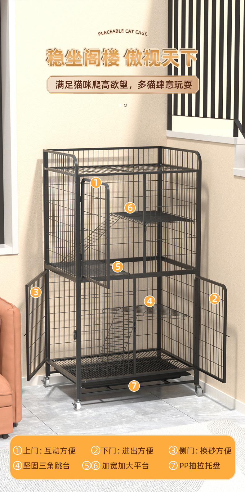 고양이 케이지 고양이 빌라 슈퍼 대형 무료 공간 고양이 케이지 3 층 가정용 고양이 하우스 고양이 집 고양이 캐비닛 고양이 둥지 고양이 등반 랙