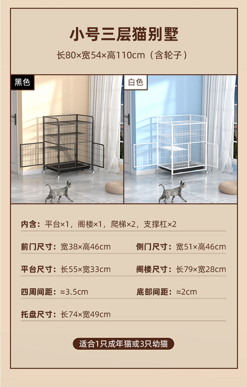 선반 1.1 m 3 층 고양이 케이지-블랙
