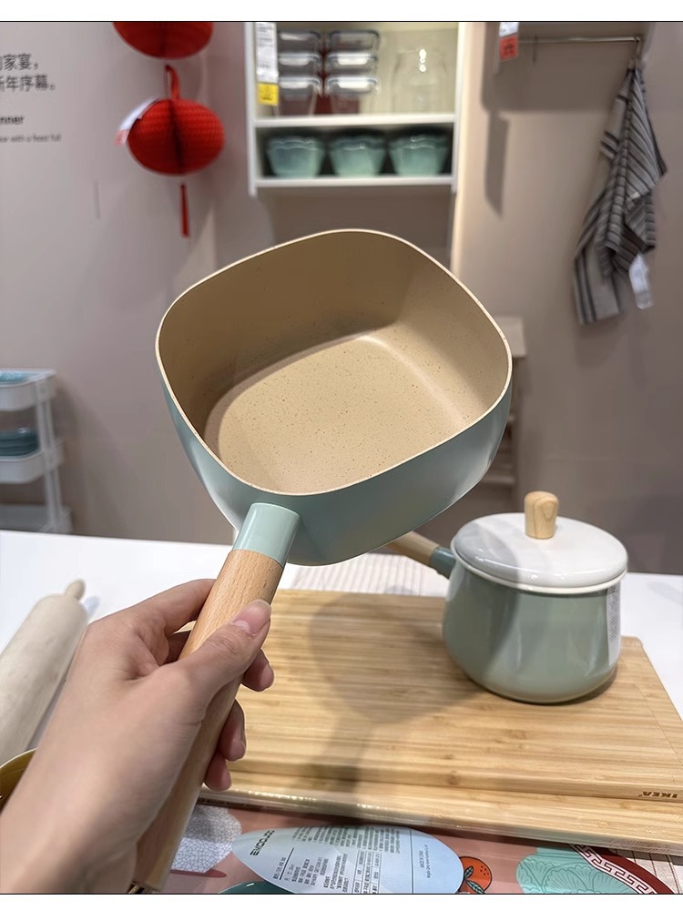 [가게 주인 자신의 실용적인 아내] 사각형 작은 우유 냄비 우유 냄비 비 스틱 팬 달팽이 냄비 인스턴트 국수 냄비
